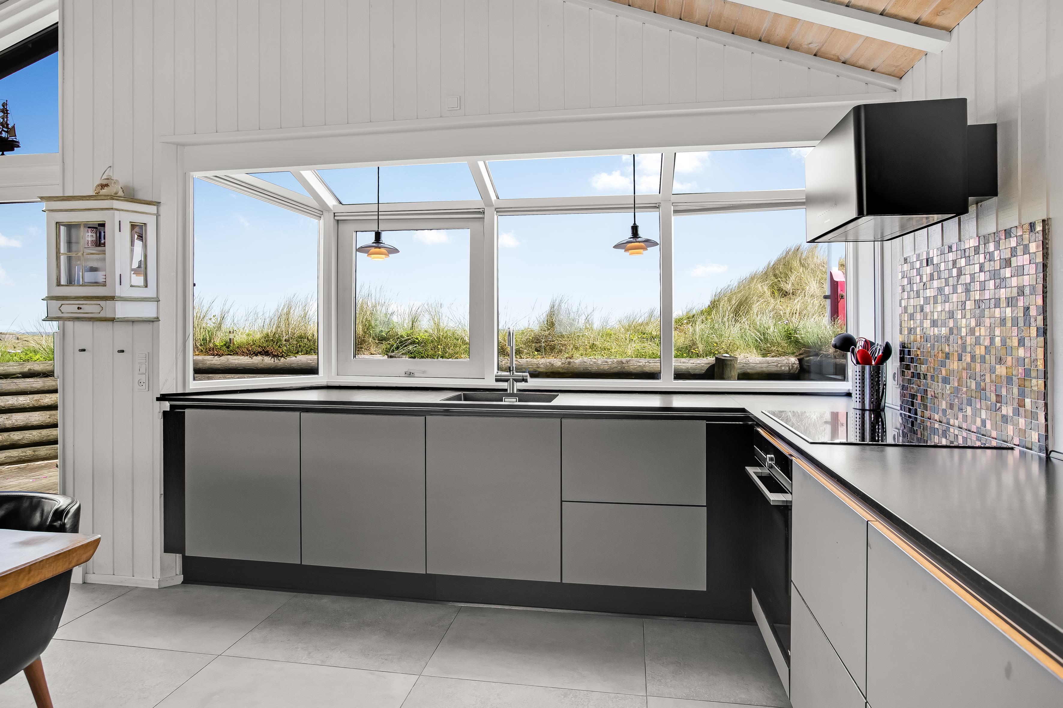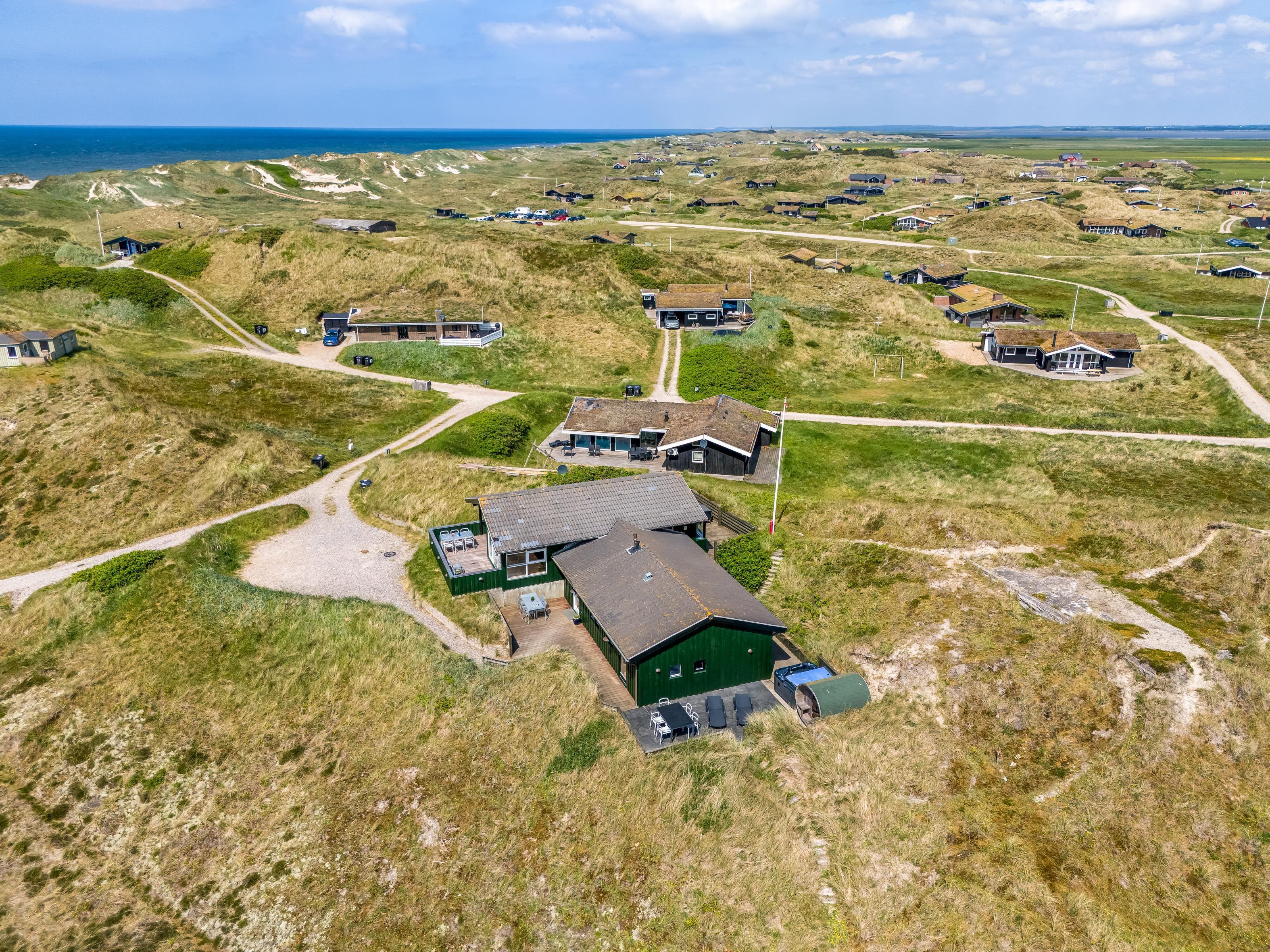 I dette dejlige og perfekt beliggende feriehus finder I alt, hvad I behøver for den ultimative ferieoplevelse. Huset er omkranset af terrasser på forskellige niveauer, hver med en betagende udsigt over landskabet, klitterne, sommerhusområdet og kig til Vesterhavet.