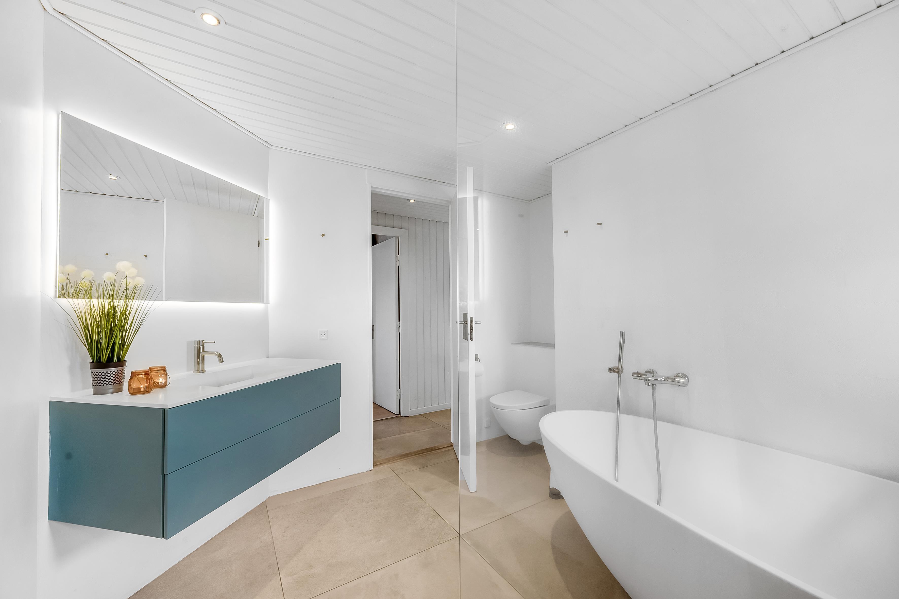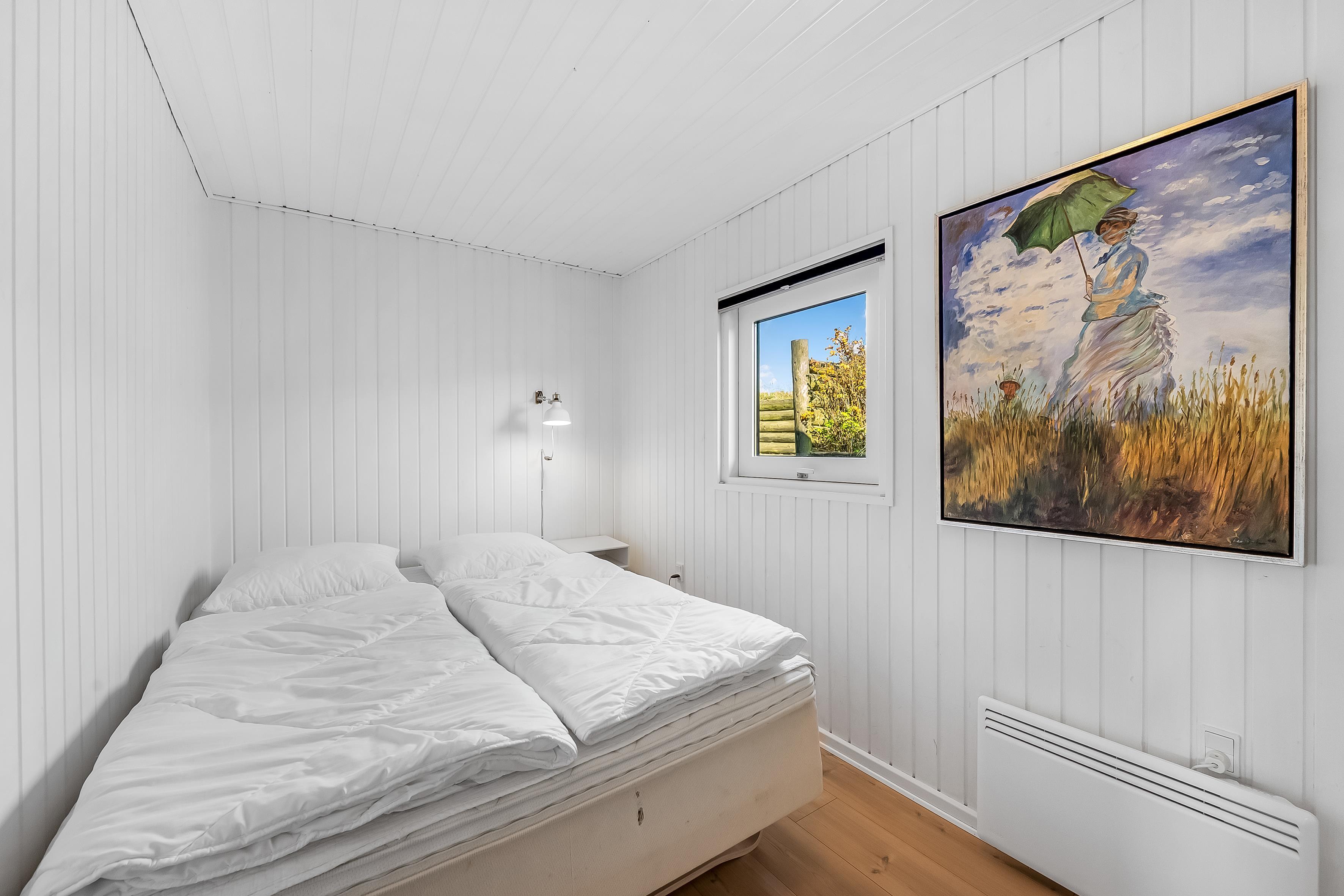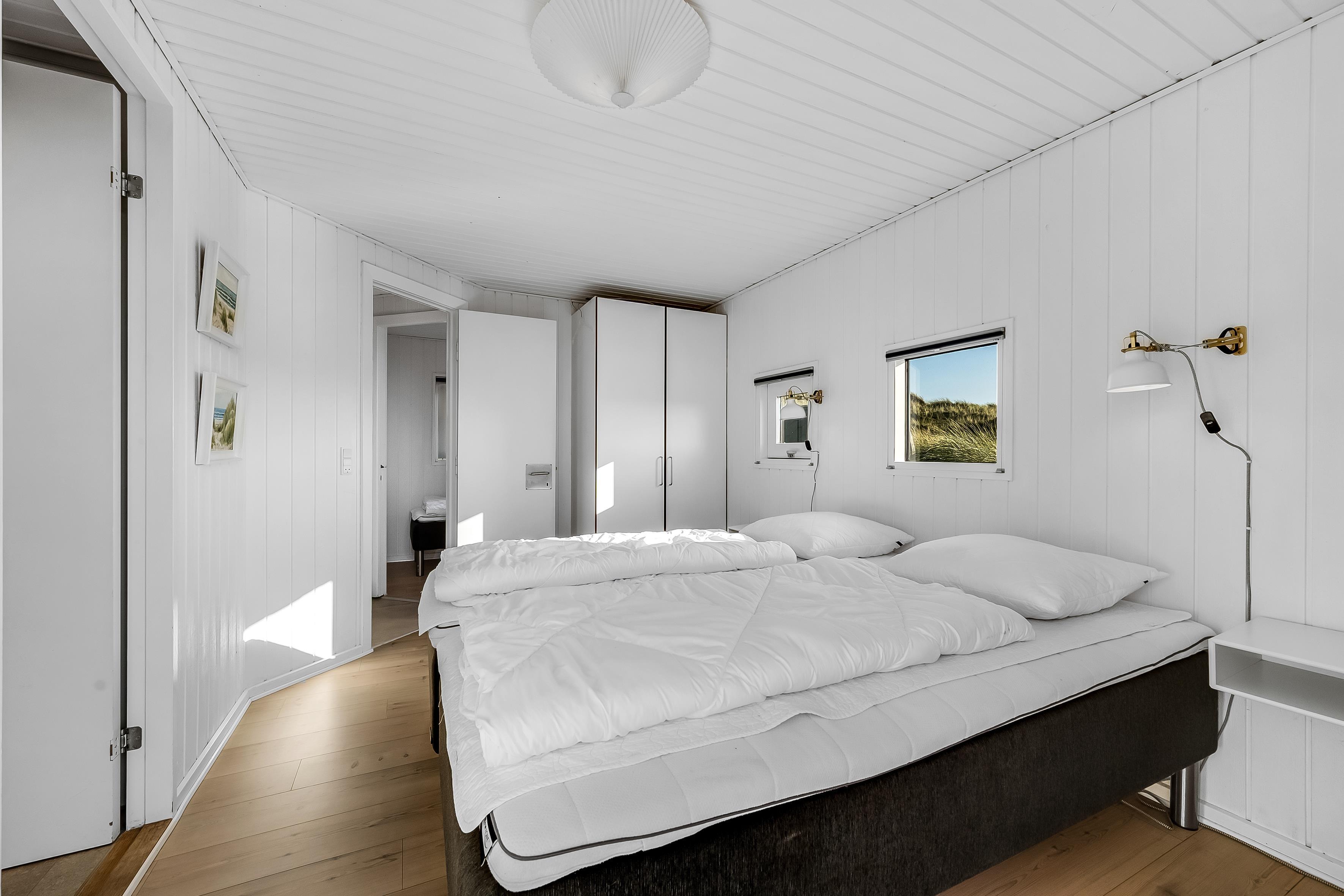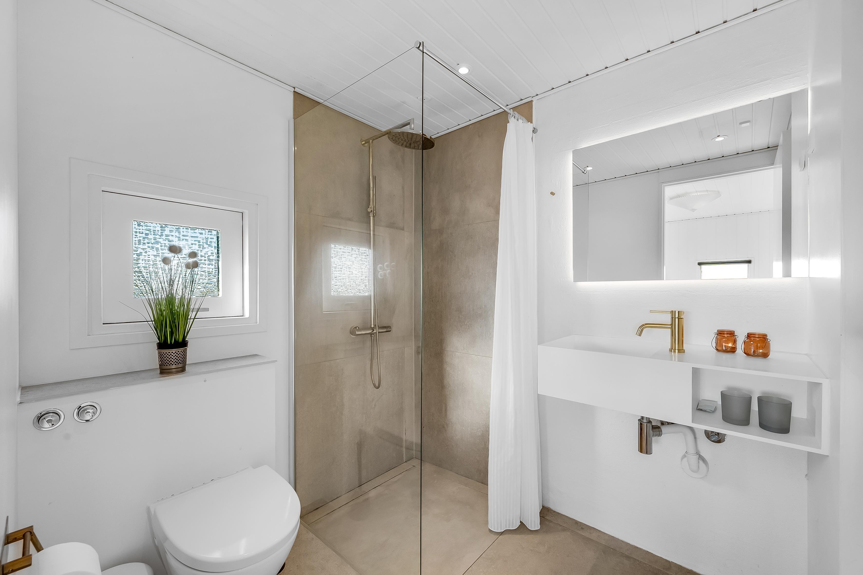 Huset har i alt fire soveværelser, hvilket giver mulighed for en god nats søvn til alle gæster. Soveværelse 1 og 2 har dobbeltsenge, mens soveværelse 3 og 4 er indrettet med enkeltsenge. Med to badeværelser, begge med bruser, toilet og gulvvarme, er der rigeligt med plads til at friske sig op efter en dag ved vandet. Det ene badeværelse har desuden et badekar, hvor du kan forkæle dig selv med et afslappende bad.