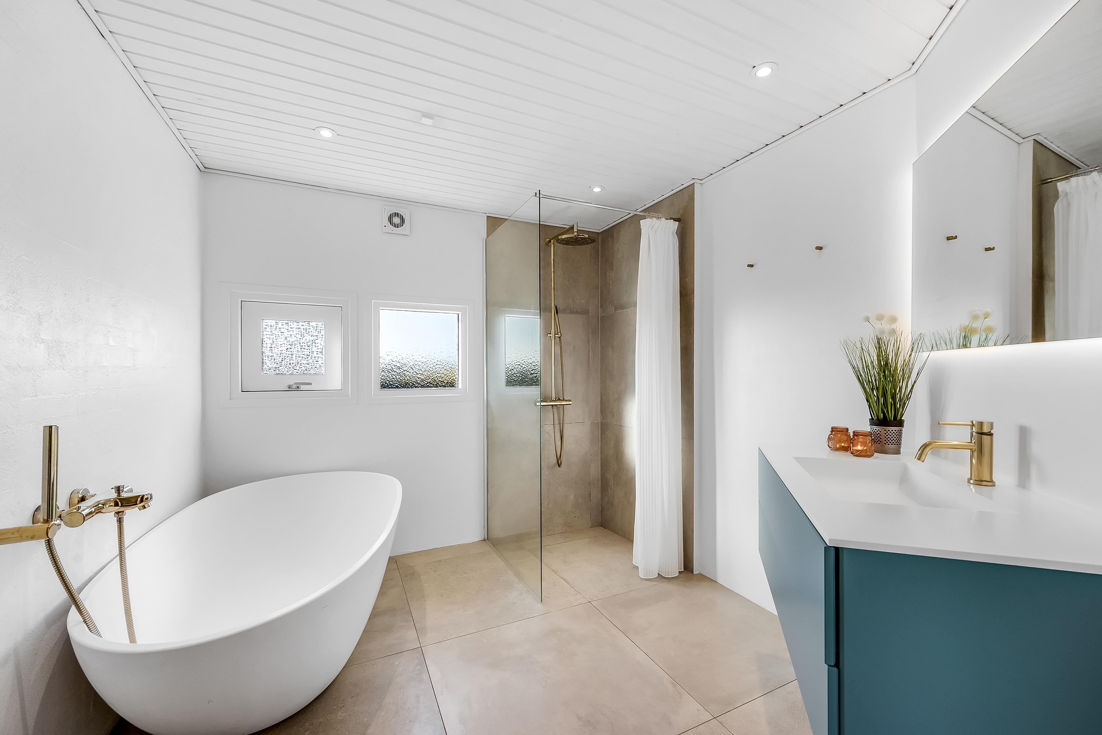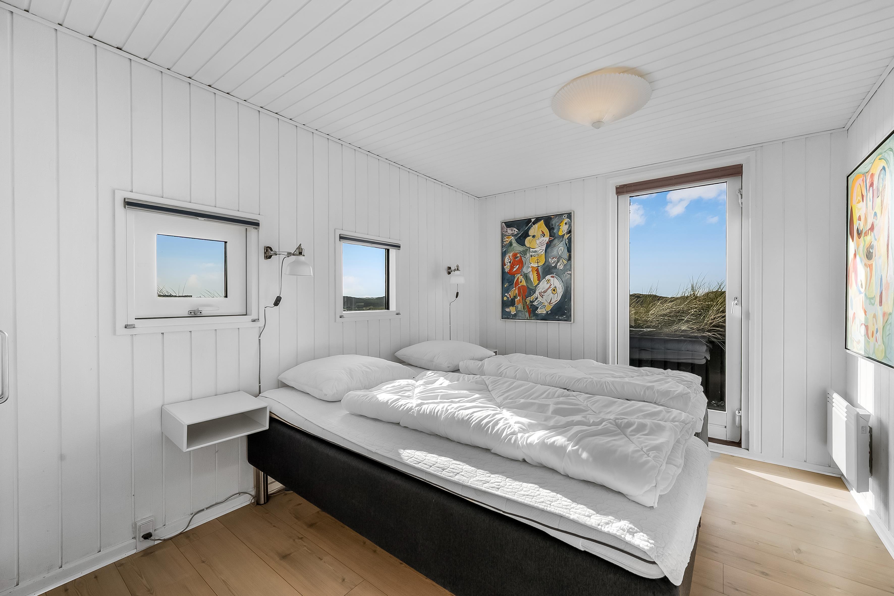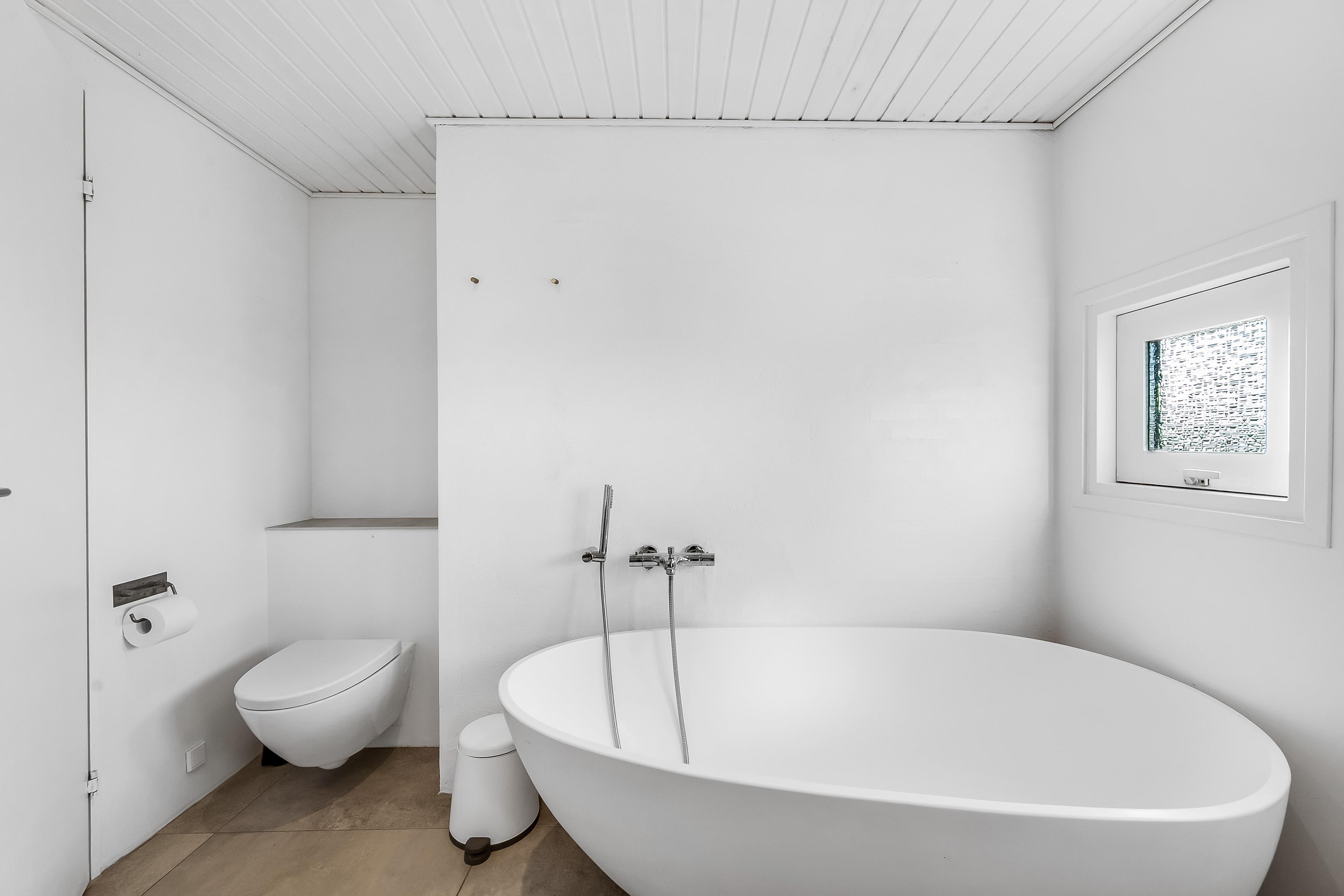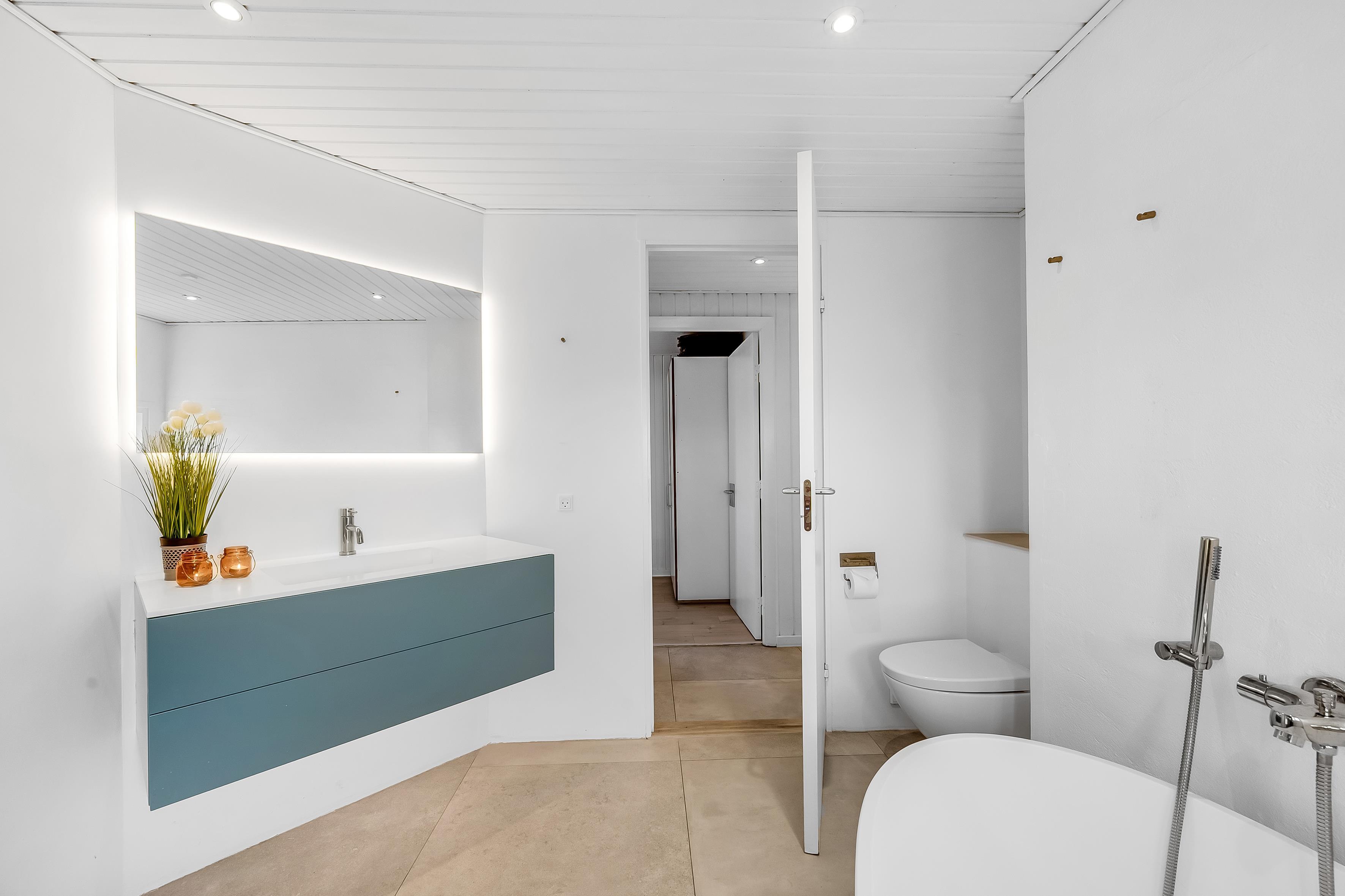 Huset har i alt fire soveværelser, hvilket giver mulighed for en god nats søvn til alle gæster. Soveværelse 1 og 2 har dobbeltsenge, mens soveværelse 3 og 4 er indrettet med enkeltsenge. Med to badeværelser, begge med bruser, toilet og gulvvarme, er der rigeligt med plads til at friske sig op efter en dag ved vandet. Det ene badeværelse har desuden et badekar, hvor du kan forkæle dig selv med et afslappende bad.