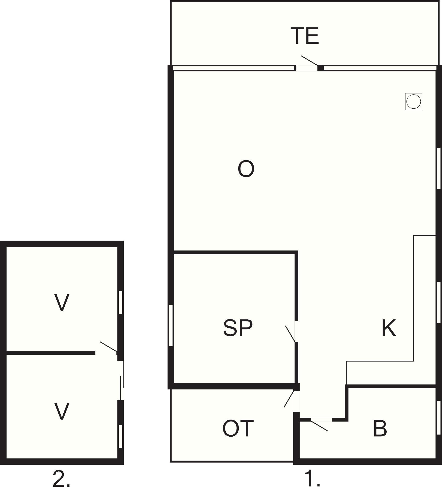 1 Opholdsstue: (1O), brændeovn, radio, tv, parabol