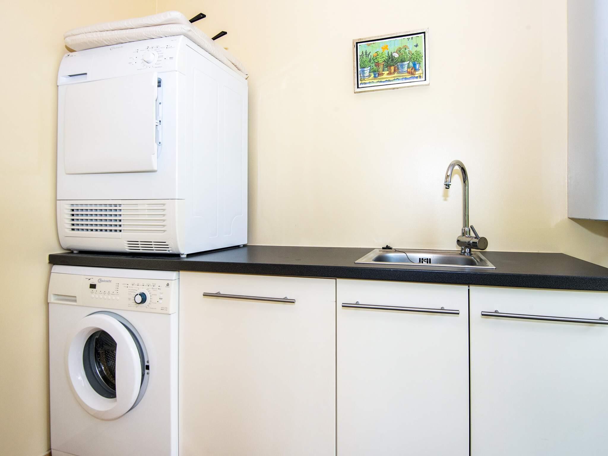 Køkkenafd.: El-komfur, køle-frys, mikroovn, emhætte, kaffemaskine, opvaskemask., vaskemask., tørretumbler