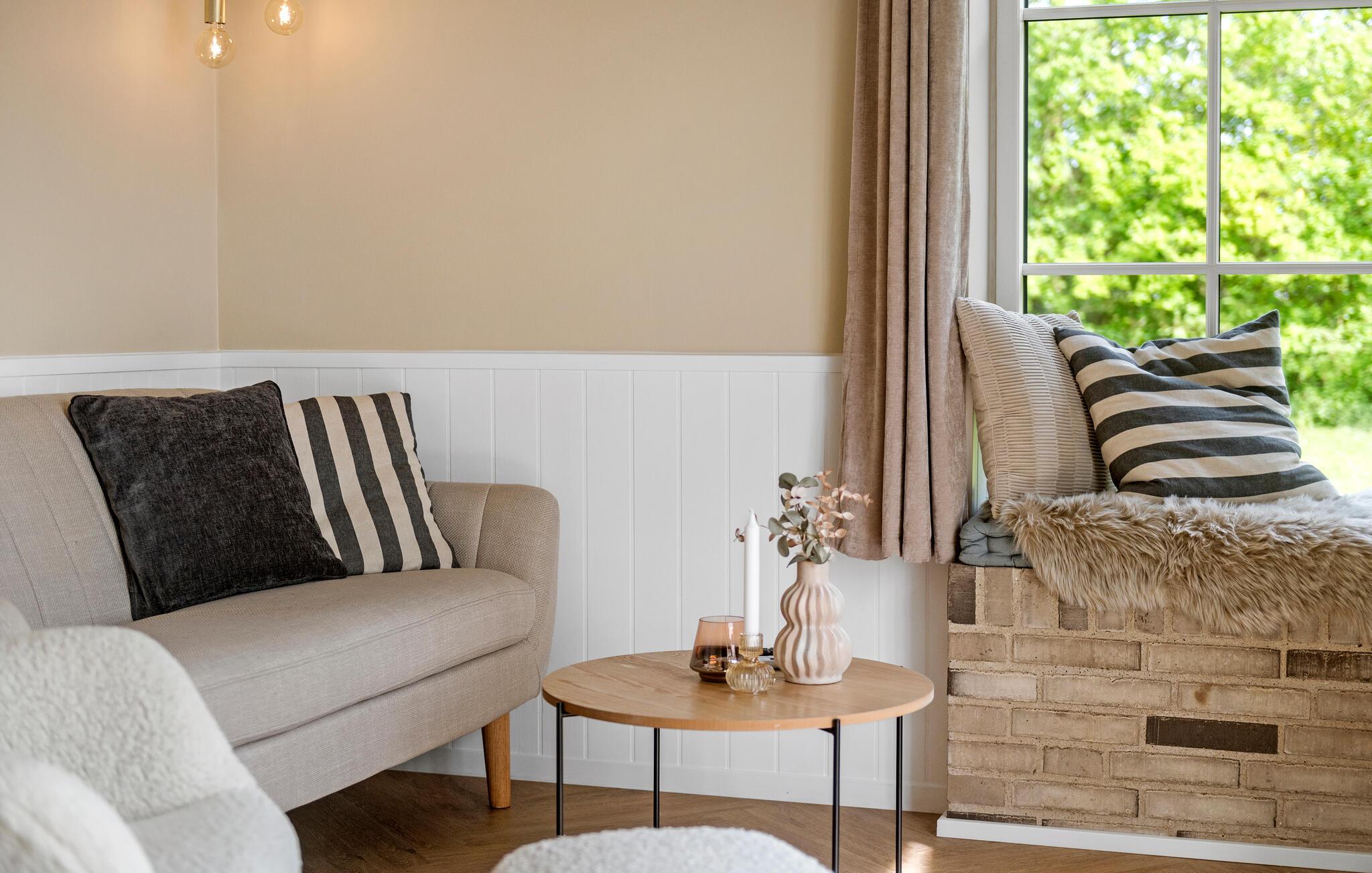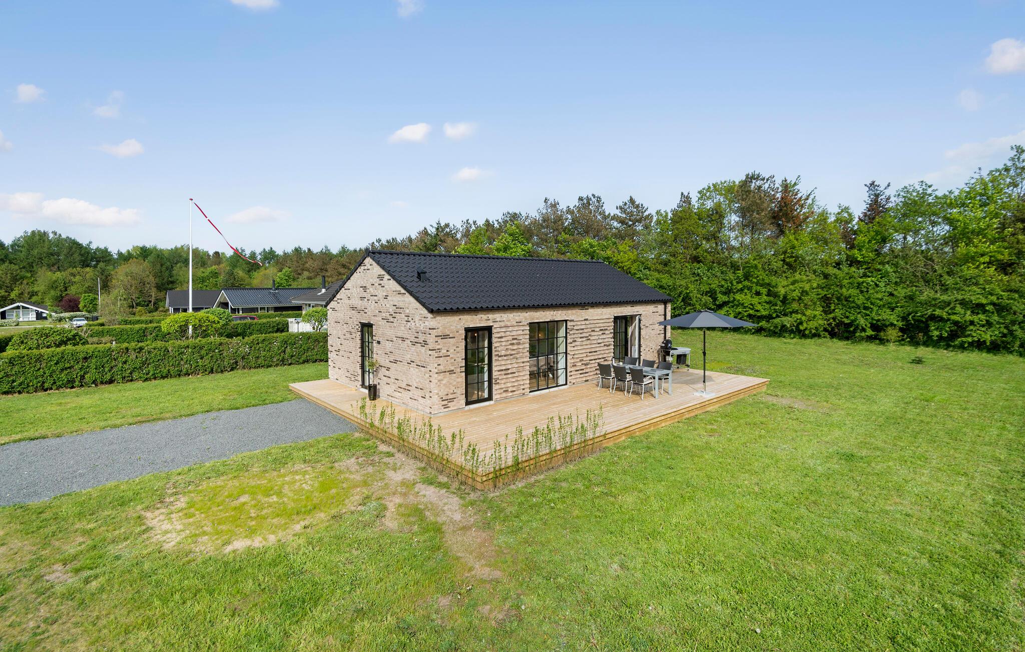 Moderne og komfortabelt fritidshus i Hovborg, ideelt til familieferie med kvalitetsmaterialer og dejlig terrasse.