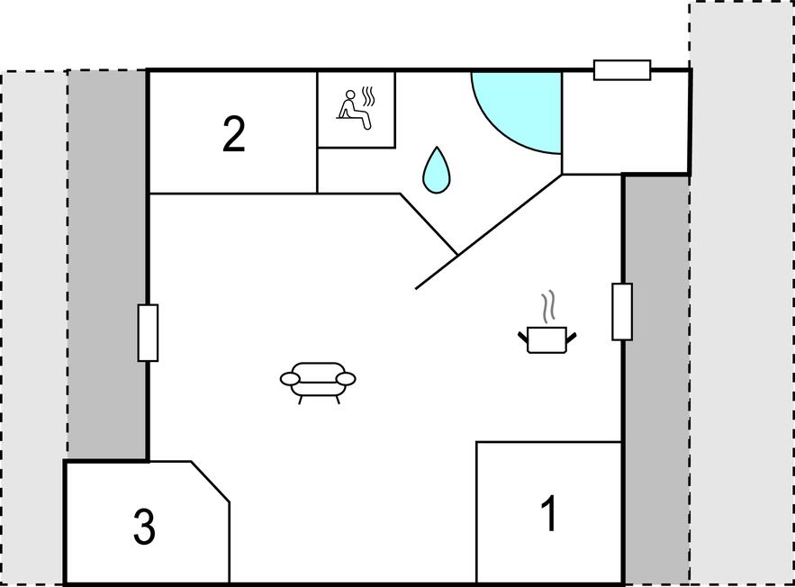 Badeværelse 8m2 (nr. 1) - WC. Varmt og koldt vand. Bruser