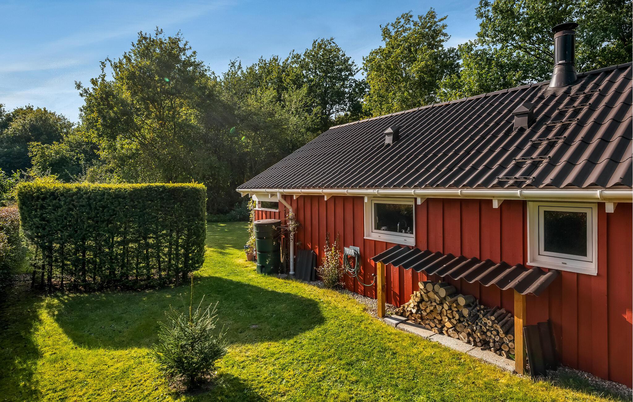 Velkommen i den grønne have, som hører til et klassisk, indbydende feriehus. Her kan I samles om dagens måltider og brætspil efter feriens udflugter og eventyr. Få varmen med lidt ild i brændeovnen, læg planer for morgendagen og læn jer tilbage i sofaen med en god bog eller en spændende film.