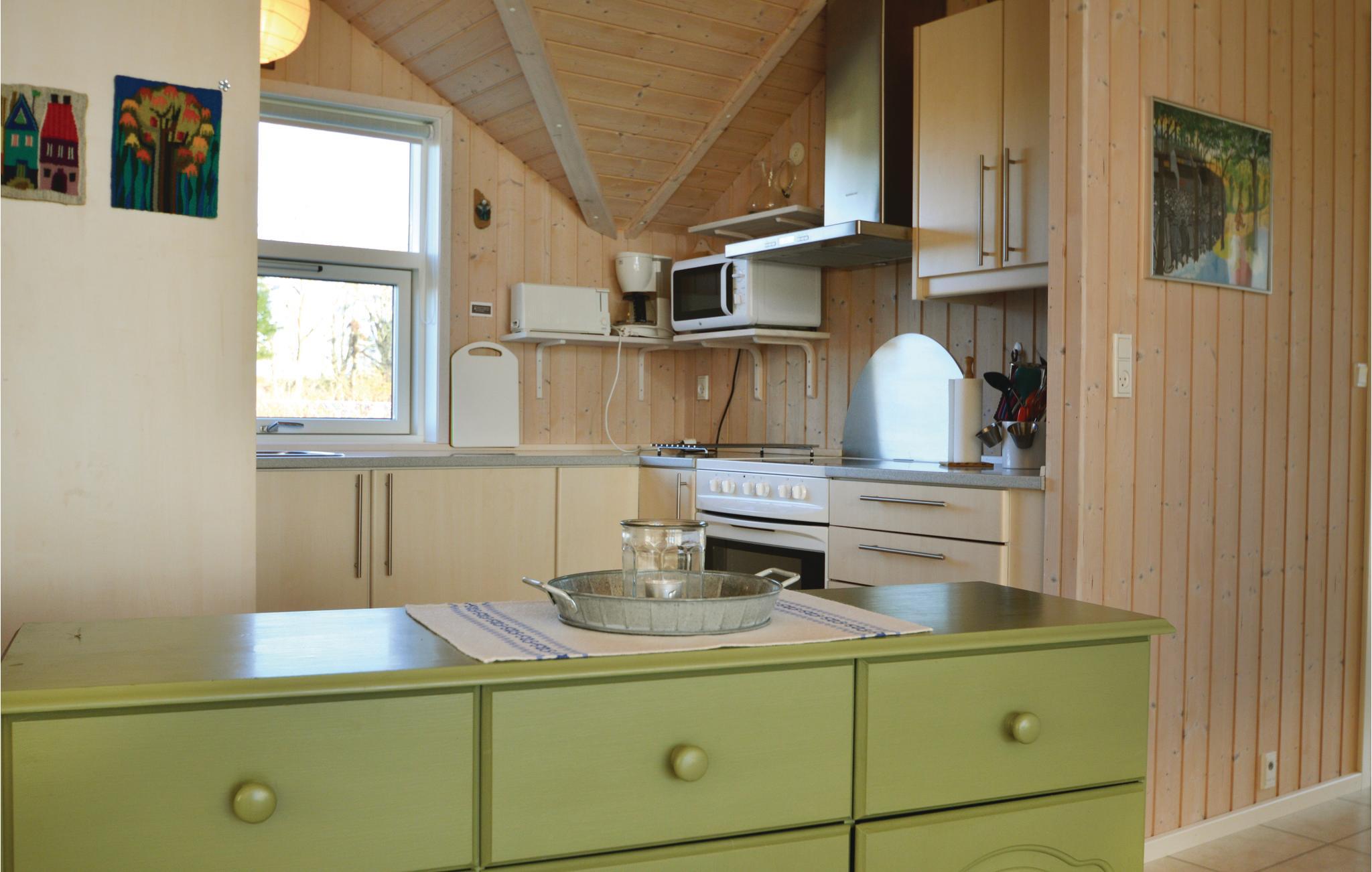 Huset fremstår lyst og venligt, og i det gode og praktisk indrettede køkken/alrum er der opført en lille alkove. Yderligere to gode soveværelser samt et dejligt badeværelse. Nyd den dejlige stemning i huset, sid ude på terrassen på lune sommerdage og -aftener. Fang jeres aftensmad i fiskesøen, der ligger ca. 500 m fra huset, tænd op i grillen på terrassen og nyd et glas vin imens.