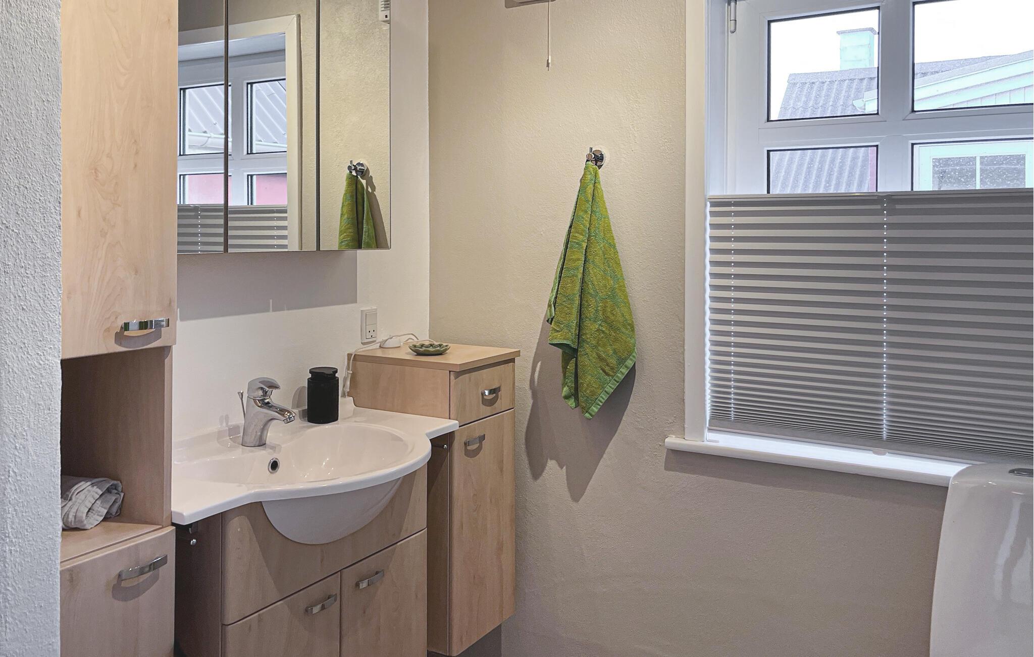 Dette hus byder jer velkommen med en lys og venlig atmosfære, hvor I hurtigt vil føle jer hjemme. En komfortabel sofa indbyder til hyggelige samtaler over en kop kaffe, og ved det rustikke spisebord kan I tilbringe fornøjelige spilleeftermiddage. Tilbered lækre måltider sammen i det veludstyrede køkken, og nyd dem med et glas vin.