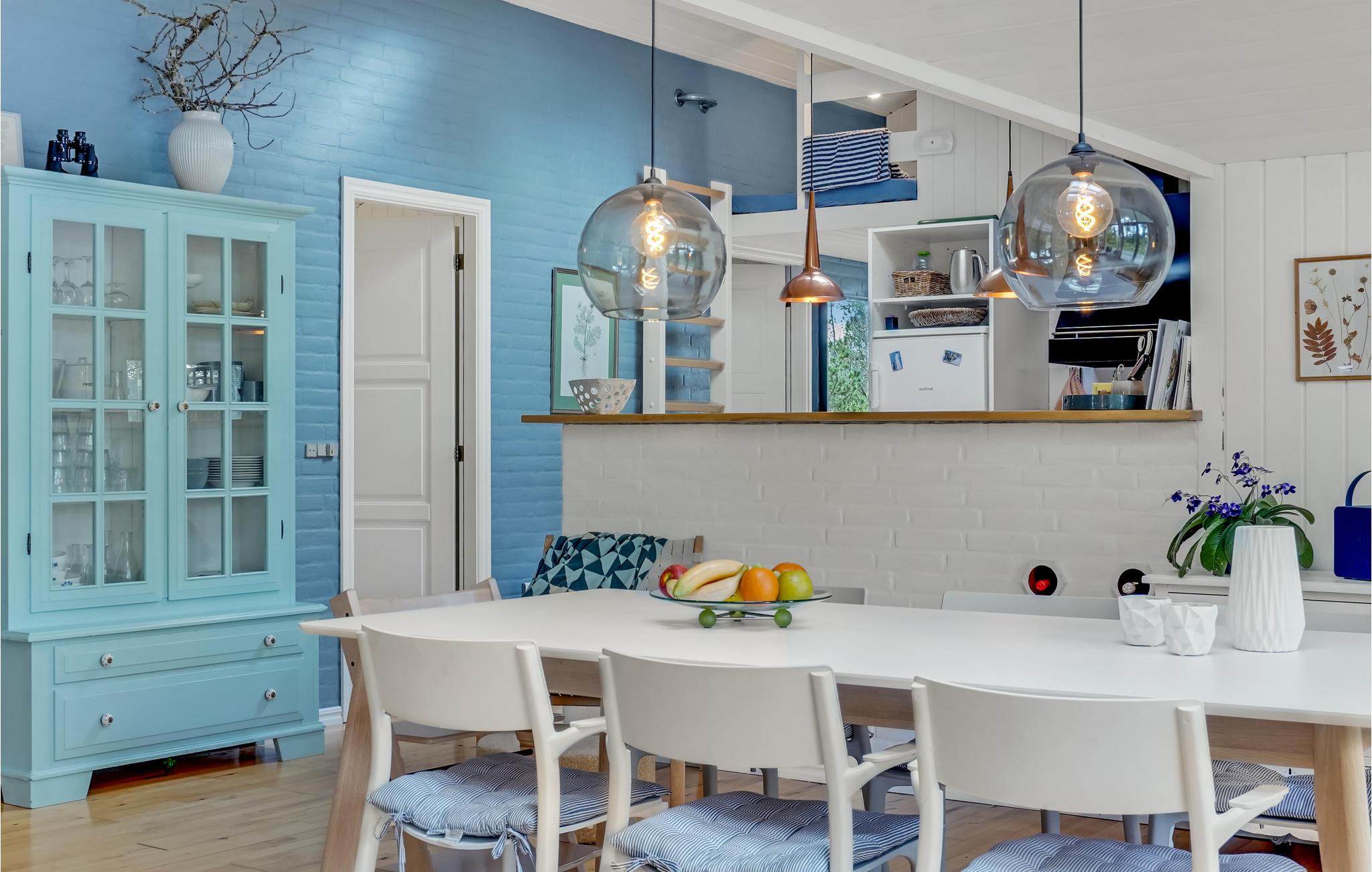 Dette smukke feriehus ligger i en rolig beliggenhed og byder hele familien velkommen med en særlig hyggelig atmosfære. Huset er omhyggeligt indrettet i en lys og maritim stil, og I vil nyde at tilbringe jeres tid her. Den store åbne stue vil være jeres naturlige mødested i huset, da I kan lave mad, lege, spise og slappe af sammen her. Jeres børn vil blive begejstrede over legetøjet, der kan holde dem beskæftiget i mange timer.