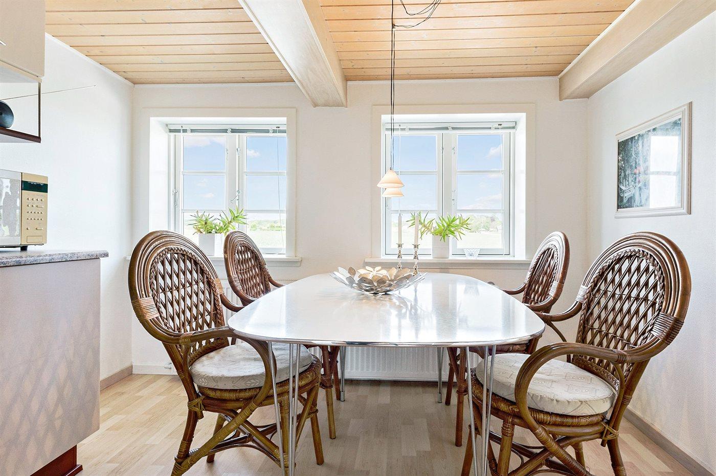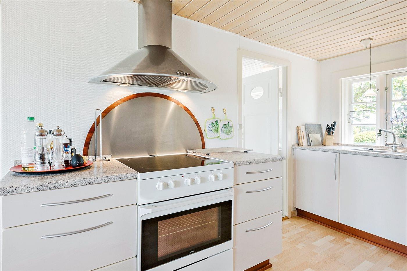 Køkkenet er udstyret med 1 køleskab. Der er 4 keramiske kogeplader, varmluftovn, mikrobølgeovn samt opvaskemaskine.