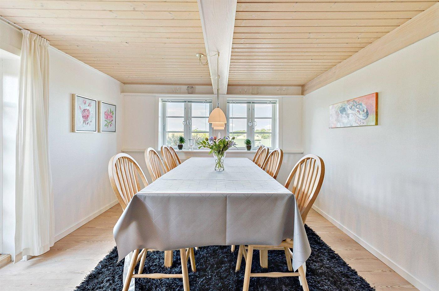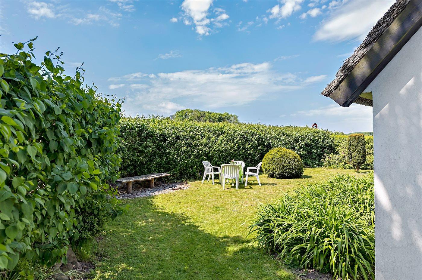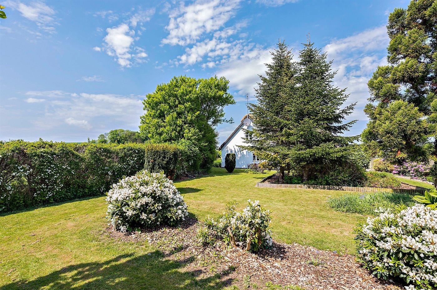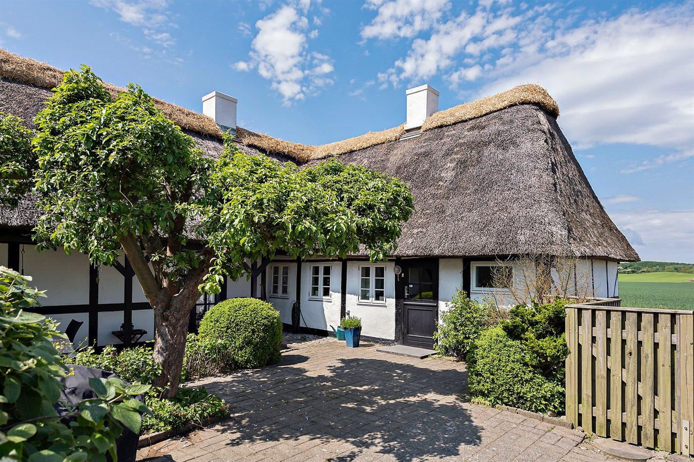 Bindingsværkshus med stråtag beliggende på landet. Til huset hører en dejlig havegrund med havepavillon. Det ene badeværelse har badekar. Huset er indrettet med 2 stuer. Huset ligger 1 km fra en golfbane, og i området er der gode fiskemuligheder.