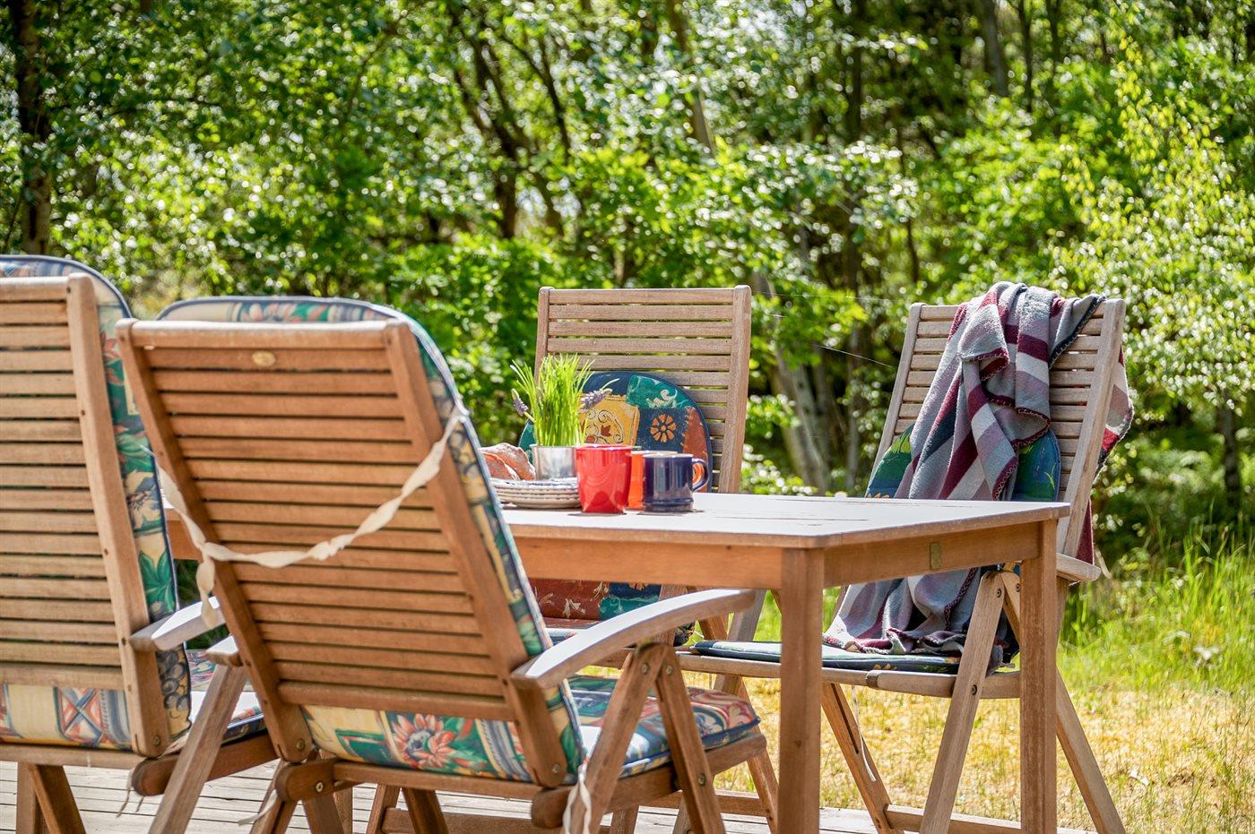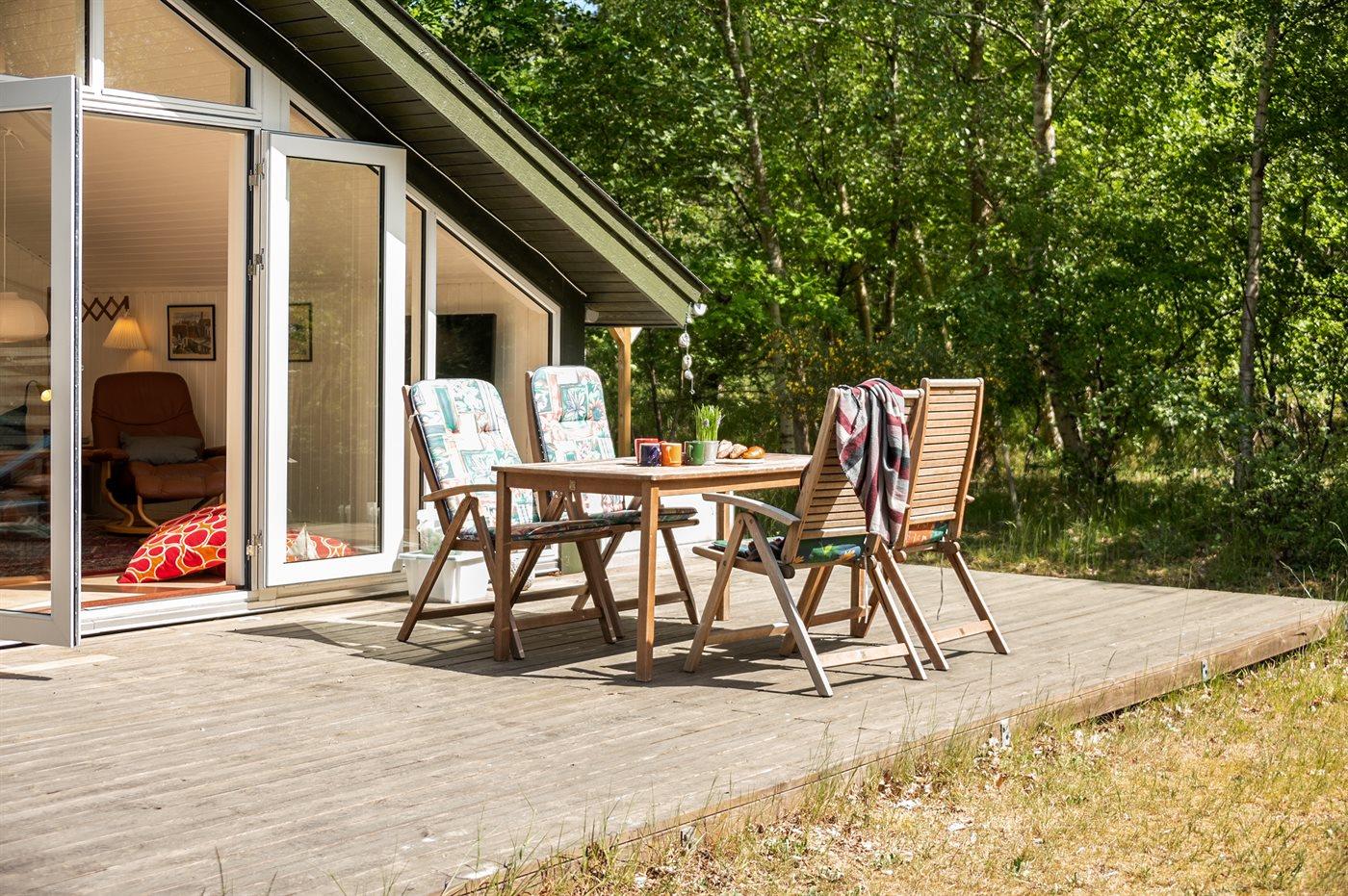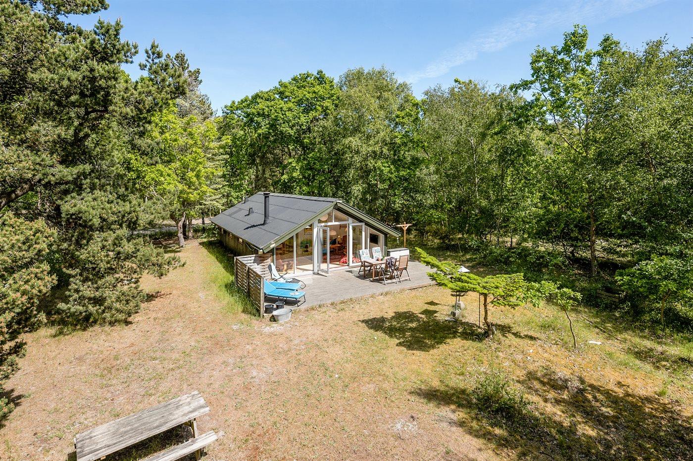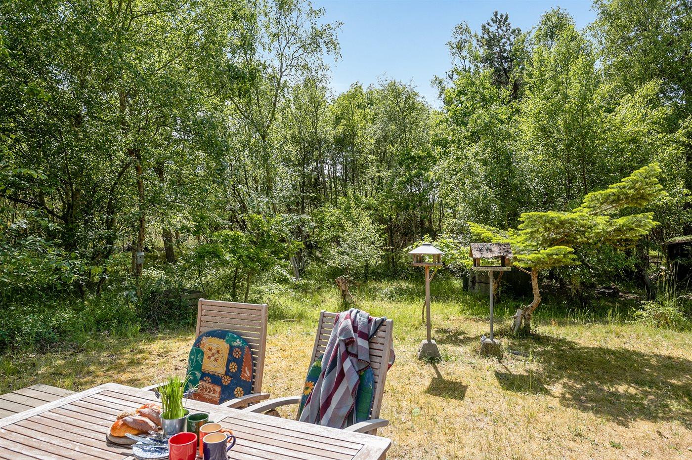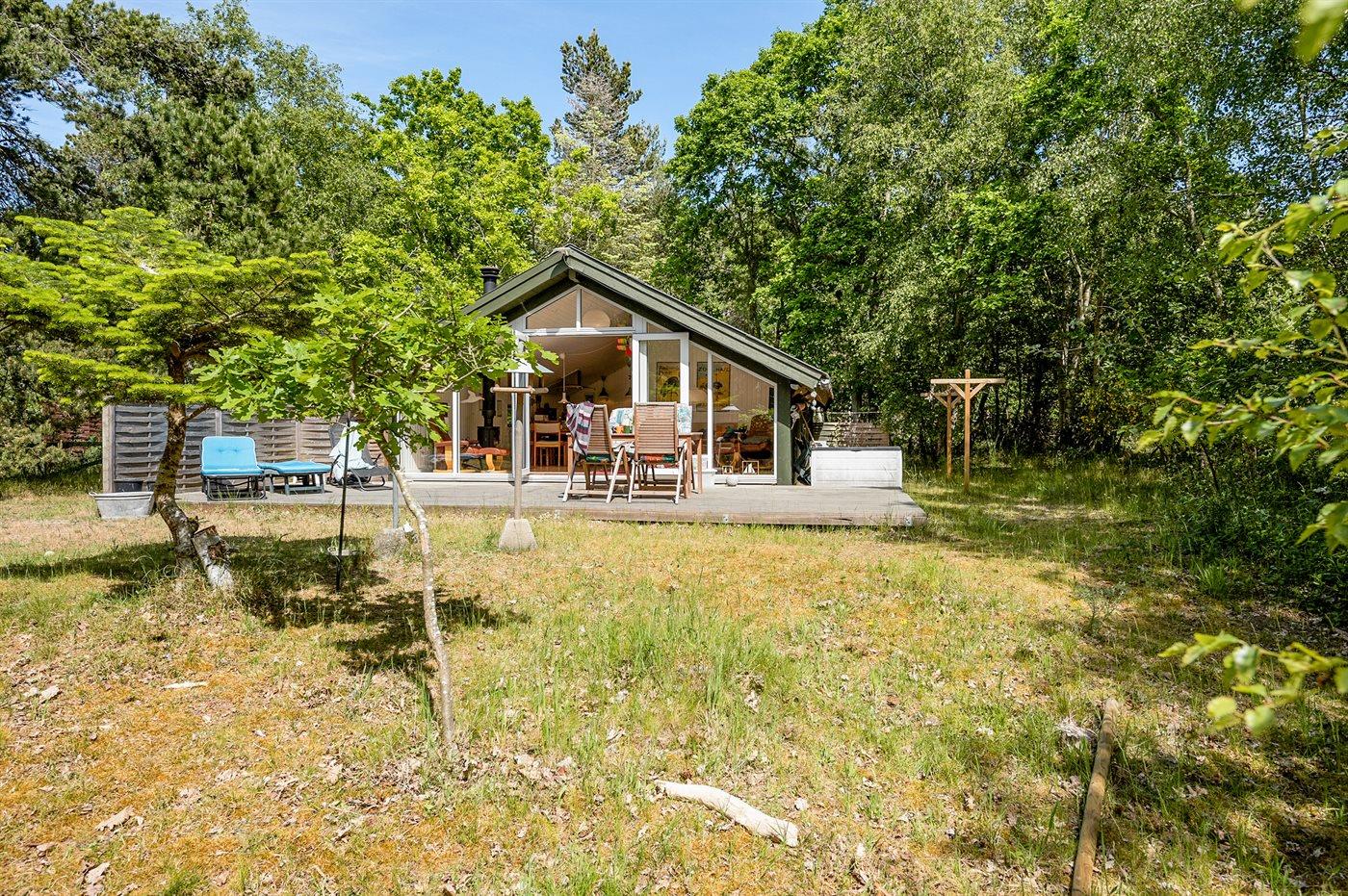 Ferieboligen er beliggende på en 1200 m² stor naturgrund. Der er 150 m til havet. Nærmeste forretning er beliggende i en afstand af 4000 m. Til ferieboligen hører 25 m² terrasseareal. Grill til rådighed. Parkering ved ferieboligen.