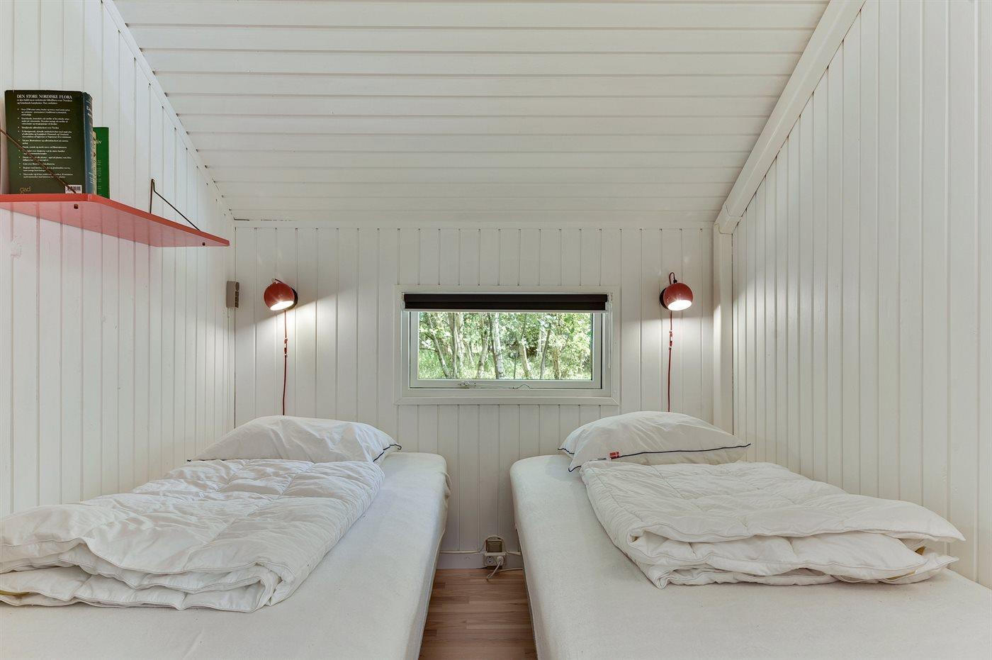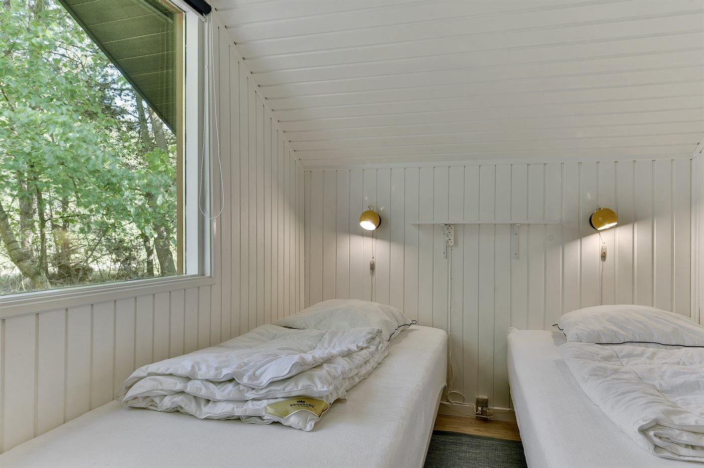 Der er i alt 3 soveværelser. Sovepladserne fordeler sig på: 2 sovepladser i dobbeltseng. 4 sovepladser i enkeltsenge. Derudover er der 1 stk. barneseng.