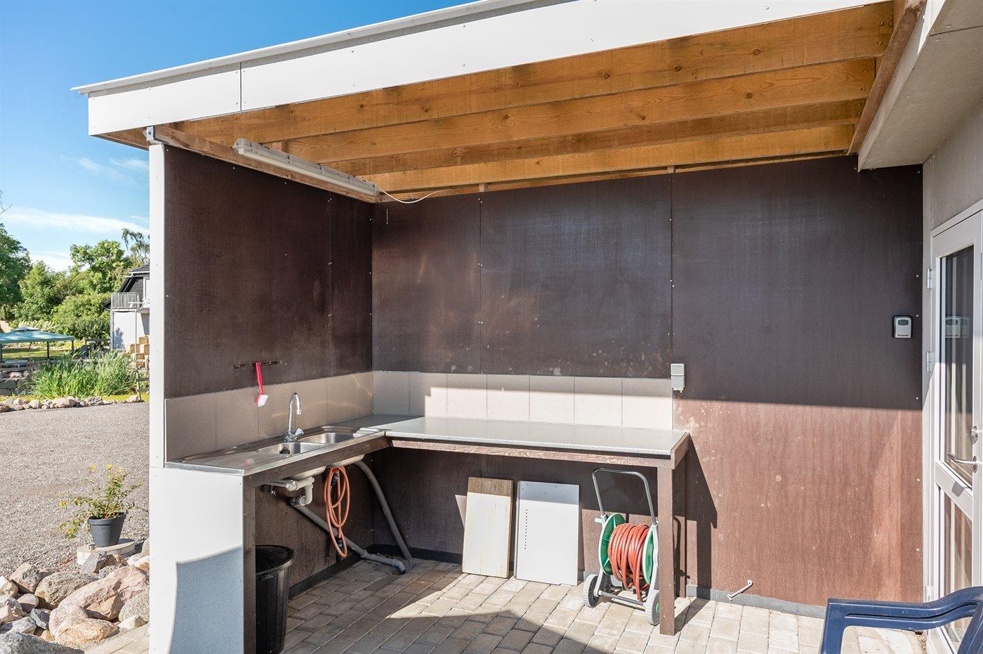 Ferieboligen er beliggende på en 2500 m² stor havegrund. naturgrund. Der er 2500 m til havet. Nærmeste forretning er beliggende i en afstand af 5000 m. Til ferieboligen hører 50 m² terrasseareal. Grill til rådighed. Parkering ved ferieboligen.