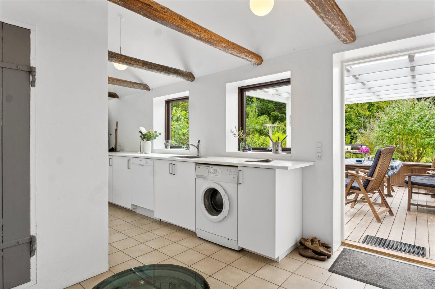 Køkkenet er udstyret med 1 køleskab. Der er 4 keramiske kogeplader, varmluftovn samt opvaskemaskine.