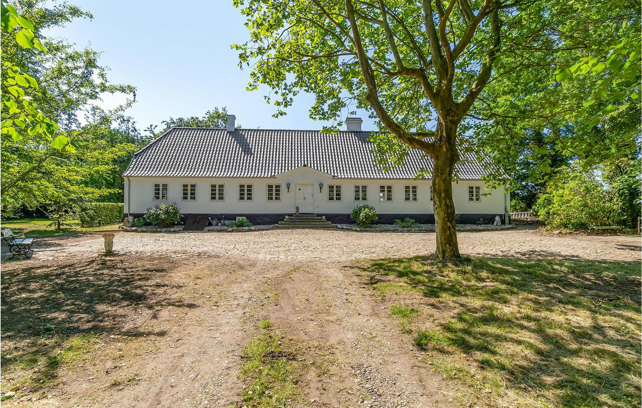 Oplev det romantiske Drostgaarden i Humble med charme, store terrasser og udsigt til marker på Sydlangeland.