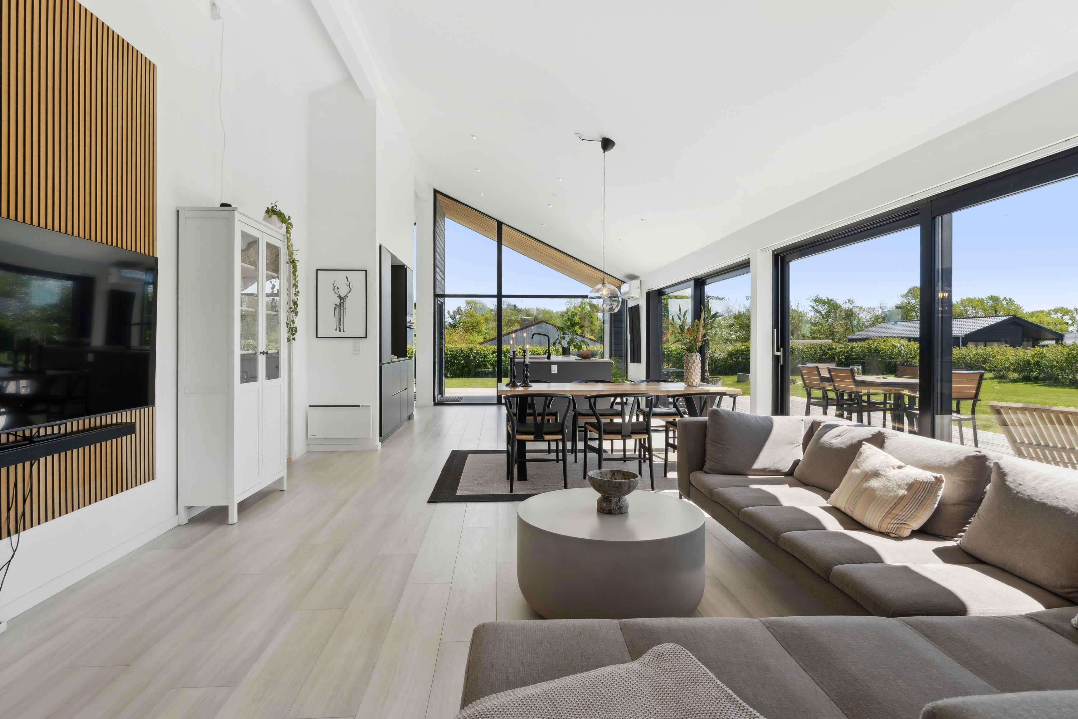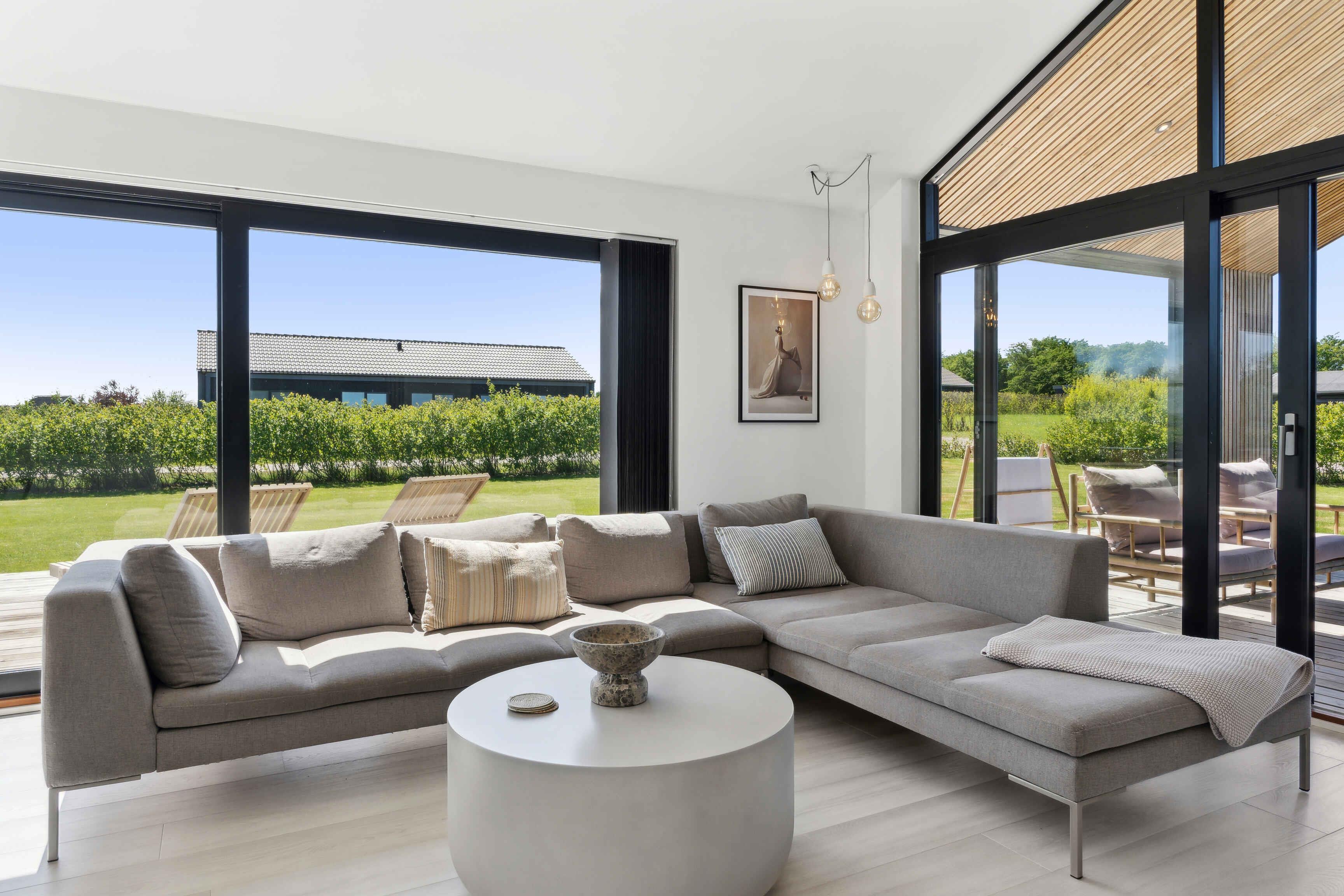 Moderne sommerhus på Langeland med privat strand, golf, fiskeri og spa, perfekt til både afslapning og aktivitet.