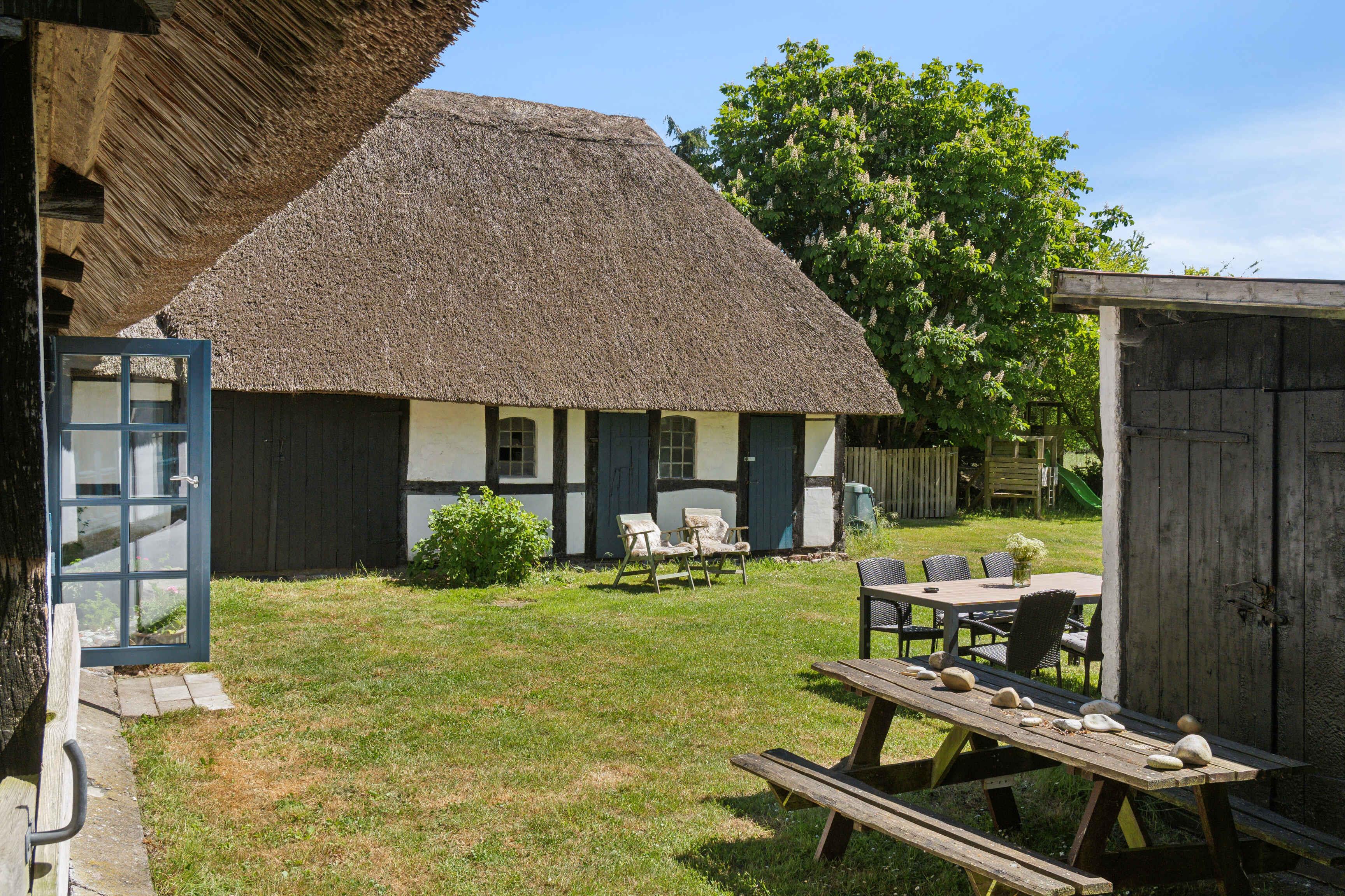 Charmerende stråtækt sommerhus nær Langelands Golfklub og strand, perfekt til golfferien med familie og venner.