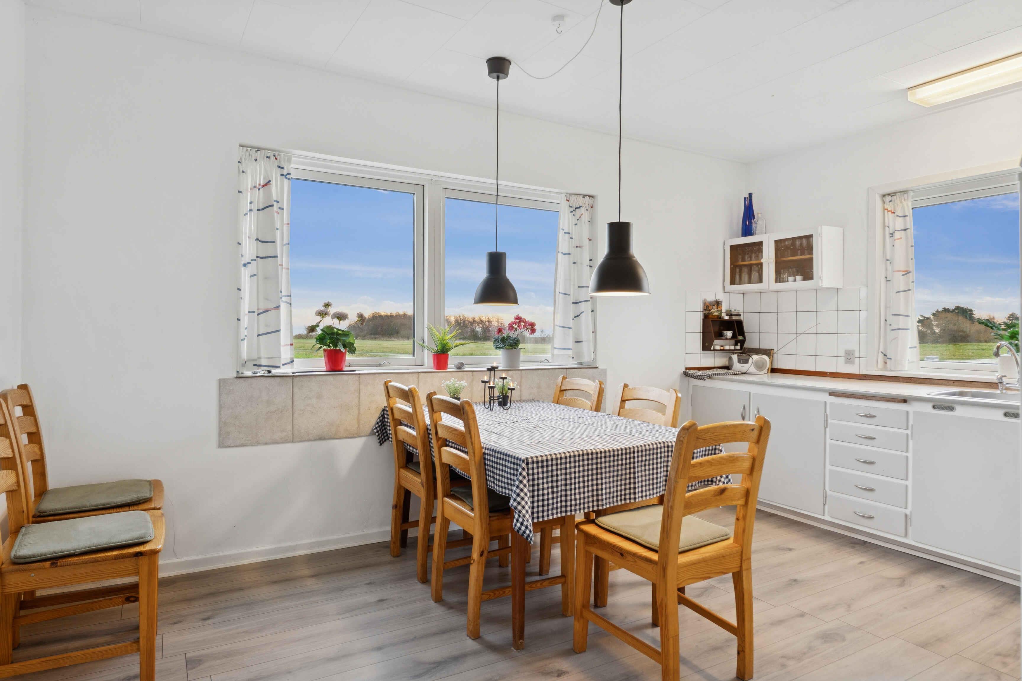Uovertruffen god udsigt følger dig gennem dette sommerhus, hvor 120 m² er indrettet med fokus på funktion og ferieliv. Det lyse spisekøkken har opvaskemaskine, mikrobølgeovn og god plads til fælles madlavning. Opholdsstuen har TV med satellit og store vinduer, der åbner rummet mod landskabet. Fire soveværelser rummer hver to senge, så op til otte gæster kan sove komfortabelt. De to badeværelser har brusebad og toilet samt vaskemaskine og tørretumbler. Et praktisk depotrum indeholder dybfryser og fiskerenseplads – ideelt for gæster, der nyder kystlivet. Den 1.200 m² store grund giver plads til udendørs ophold, og vandet nås på få minutter: 150 meter fra huset og 250 meter til den smukke kystlinje. Området er oplagt til en ferie med både ro og aktiviteter. Den korte afstand til stranden gør det nemt at bade, fiske og gå ture langs vandet. Landskabet indbyder til cykelture og naturoplevelser, og øens rolige tempo skaber en afslappet feriestemning. Langeland er kendt for sit rige dyreliv, gode strande og små havne med sommerliv. Her finder du vandreruter, udsigtspunkter og hyggelige spisesteder. Området byder også på gode forhold for lystfiskere og nærhed til gallerier og historiske seværdigheder. Dette sommerhus er et oplagt valg for gæster, der ønsker natur, plads og en ferie omgivet af hav og horisont.