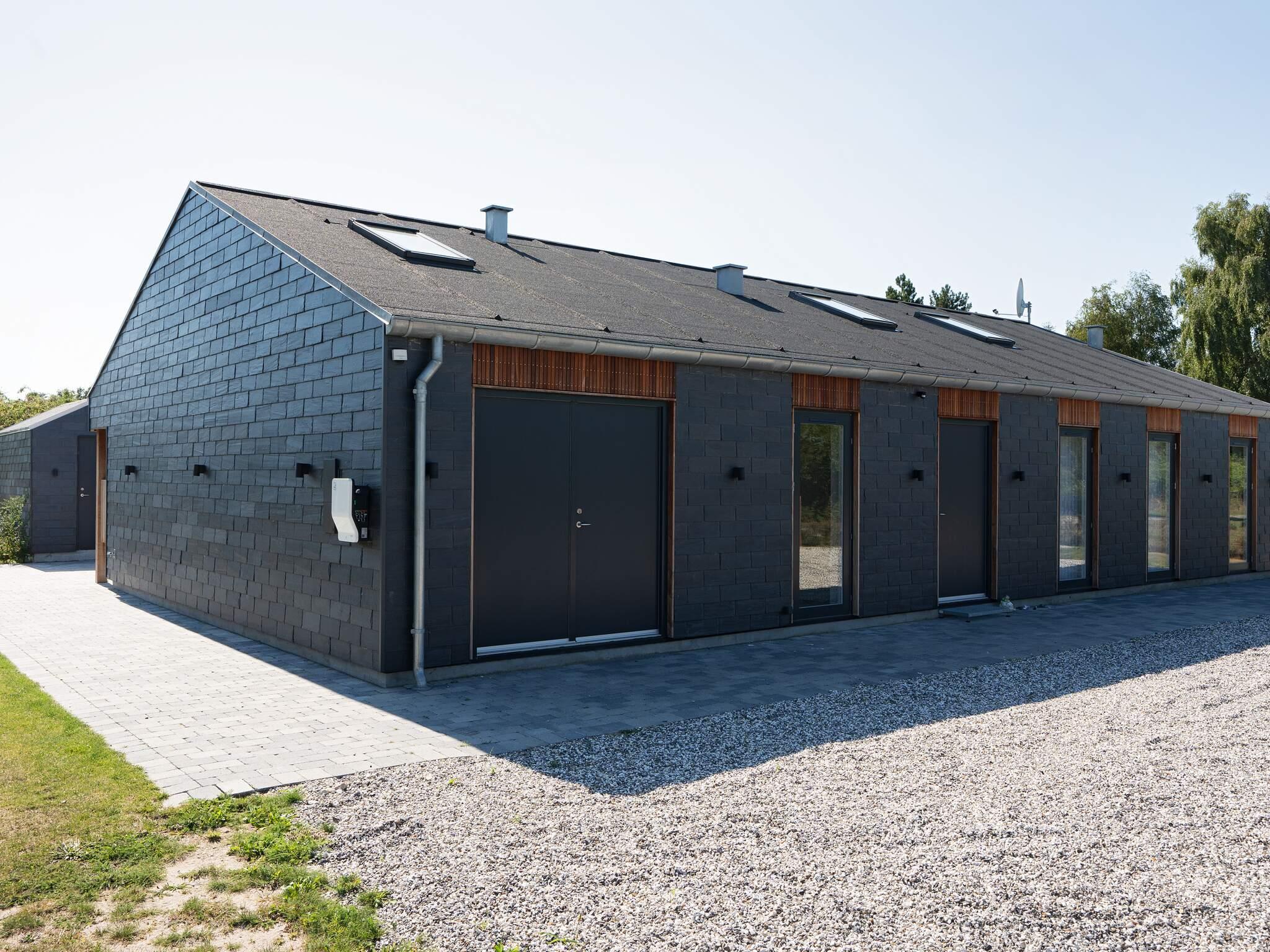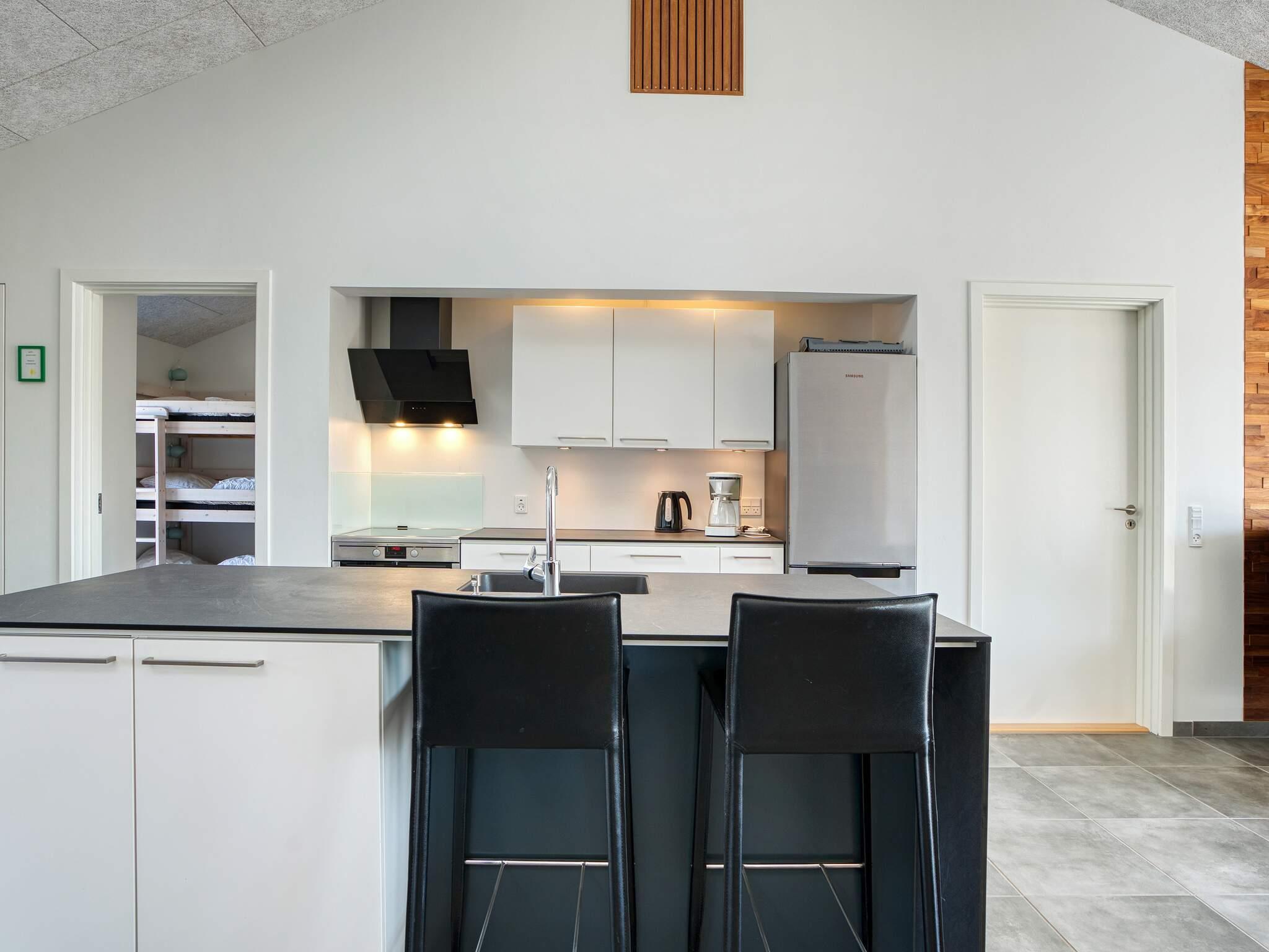 Stor terrasse på ca. 100 m2, som omkranser hele huset. Her er der gode havemøbler, udebruser til efter en tur ved stranden samt udekøkken (grill + bord) som kan benyttes hele året.