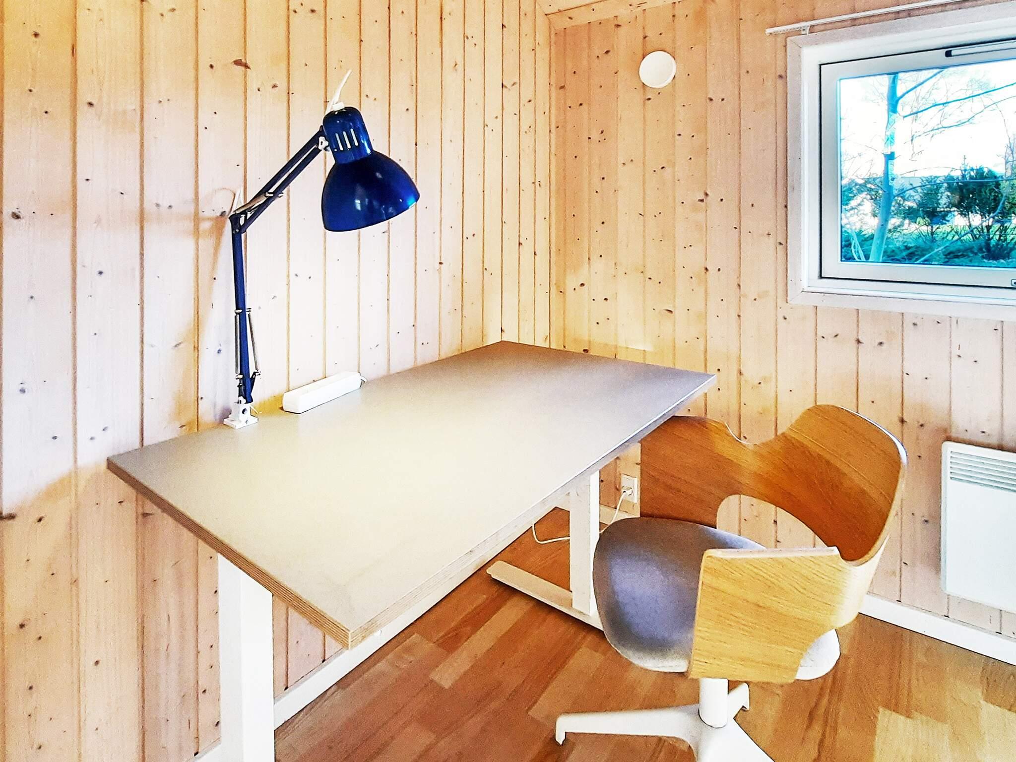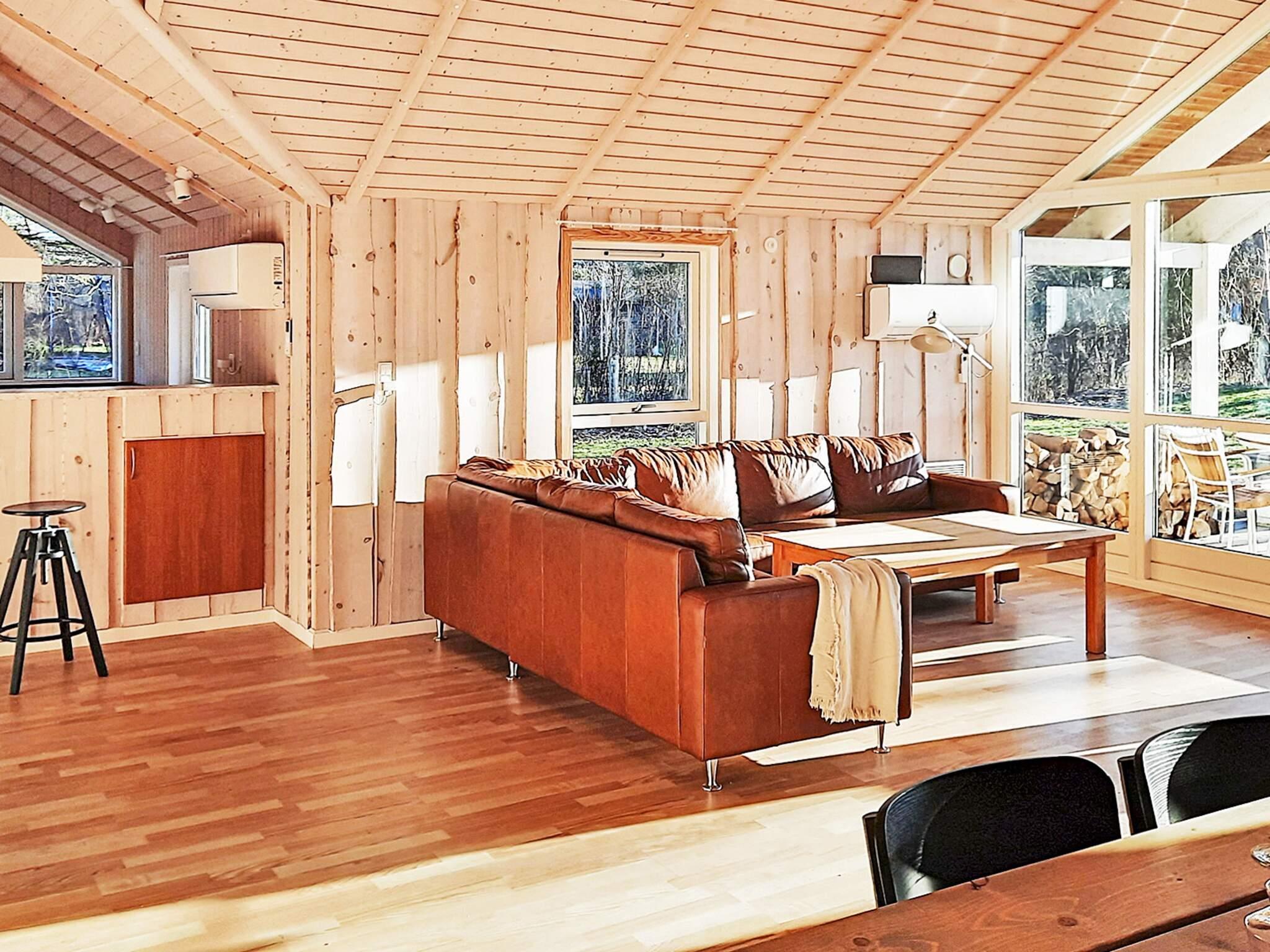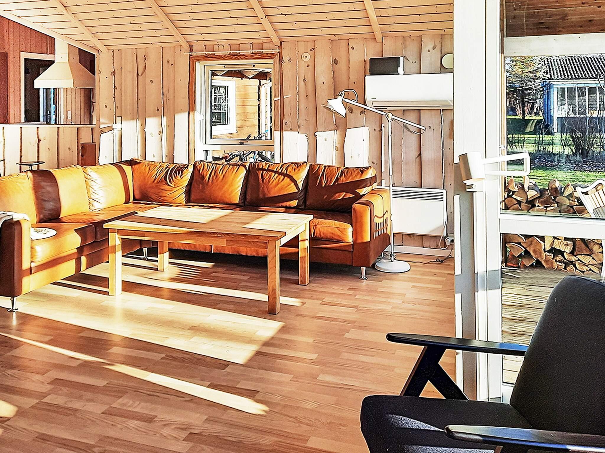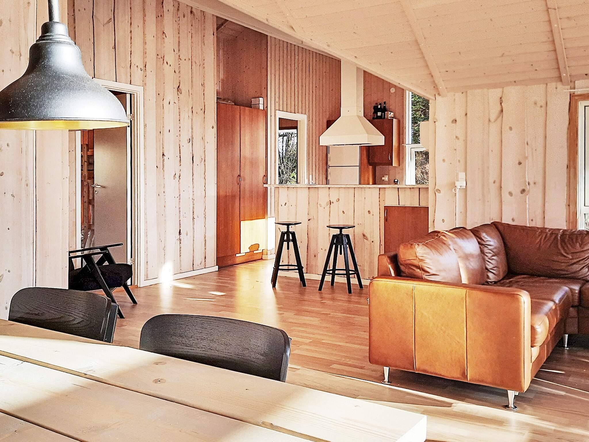 Sommerhuset indeholder stort åbent køkken forsynet med et almindeligt bredt udvalg af køkkenredskaber til brug for madlavning og bagning. En stor opholds- og spisestue med god brændeovn. I stuen er der smart-TV med airplay, som er tilsluttet chromecast med mulighed for at streame tv, film eller musik. Der er danske og tyske luftkanaler. Musik kan afspilles til en transportabel bluetooth højttaler. Badeværelset har gulvvarme, og der er adgang til spabad og sauna. 2 værelser identisk indrettet med brede dobbeltsenge og skabsplads. Et værelse med køjeseng, og mulighed for hjemmearbejdsplads, hvor der kan bruges hævesænke bord samt indstillelig konferencestol. Der er et udvalg af forskellige spil, bl.a. bræt - og puslespil til både voksne og børn. Husets indretning er moderne.