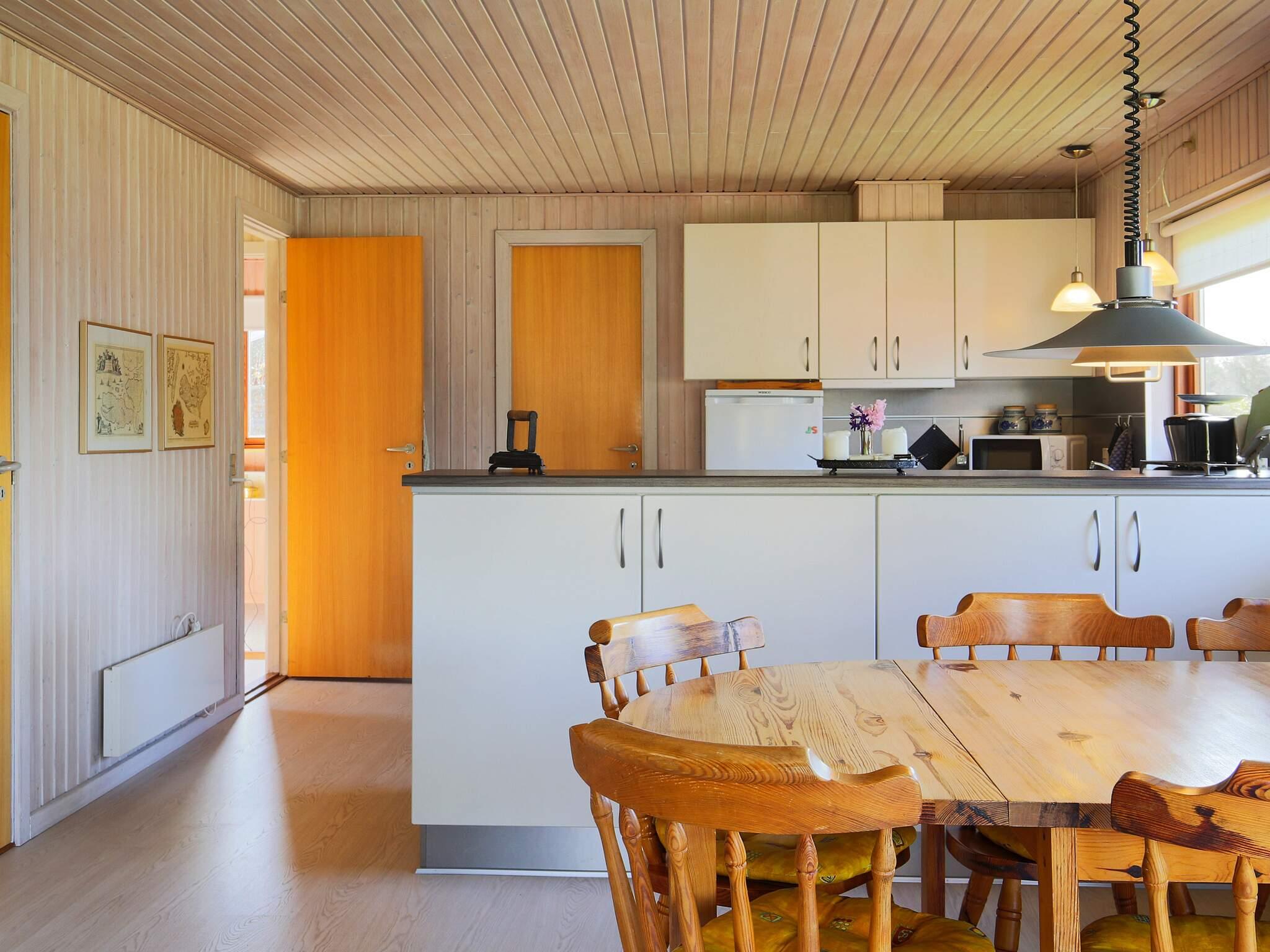 Indenfor finder du et indbydende opholdsrum med åbent køkken og spiseplads, perfekt til at lave mad sammen og samles efter en dag på stranden. Fra stuen kan du træde direkte ud på en solrig terrasse, der fanger solen fra middag til aften, et fantastisk sted at grille eller slappe af med et glas vin. Bag huset byder en anden terrasse badet i morgensol de perfekte rammer for en stille morgenmad udendørs.