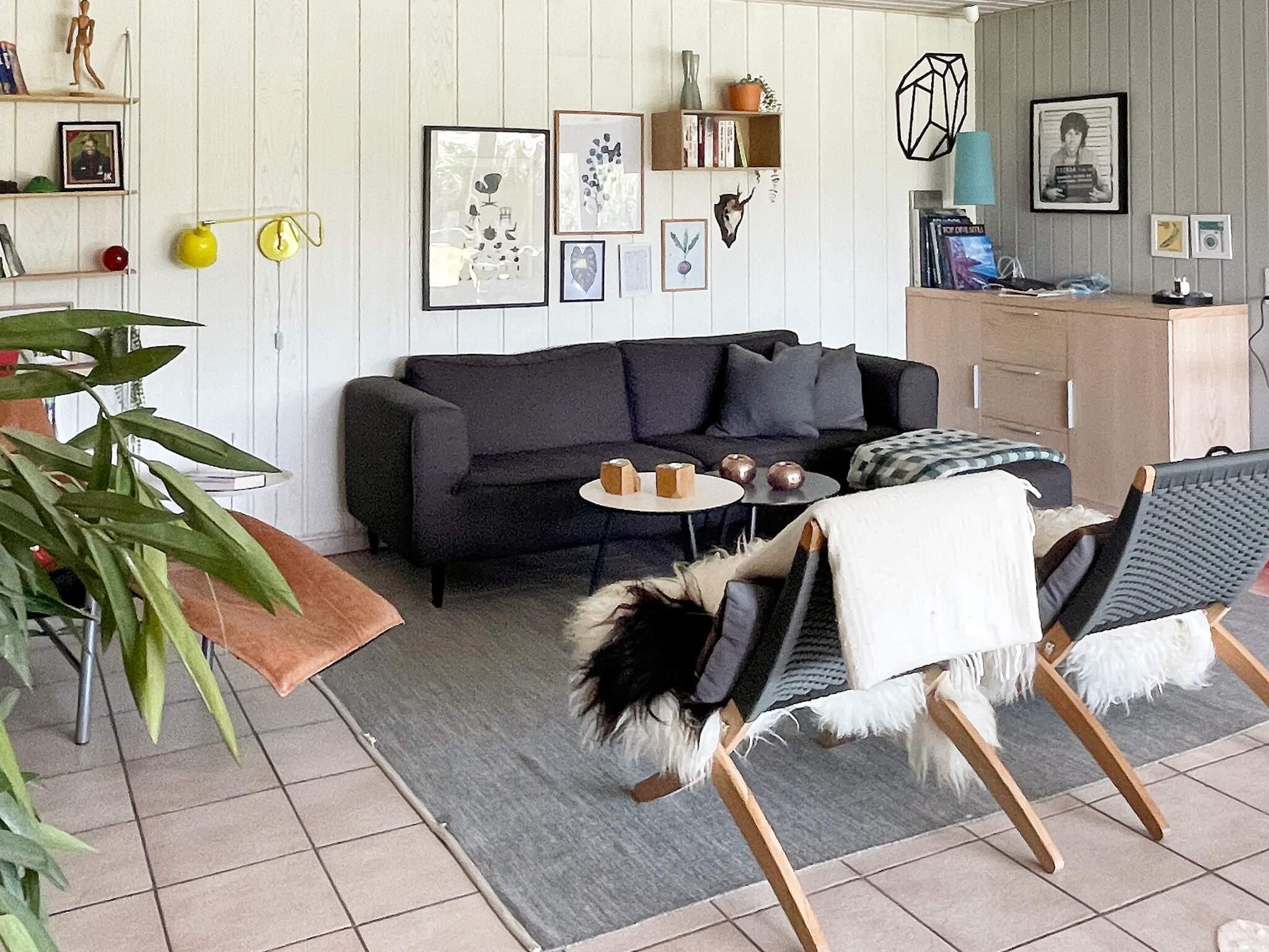 1 Opholdsstue: Brændeovn, stereoanlæg med cd, dvd-afspiller, tv, høj stol