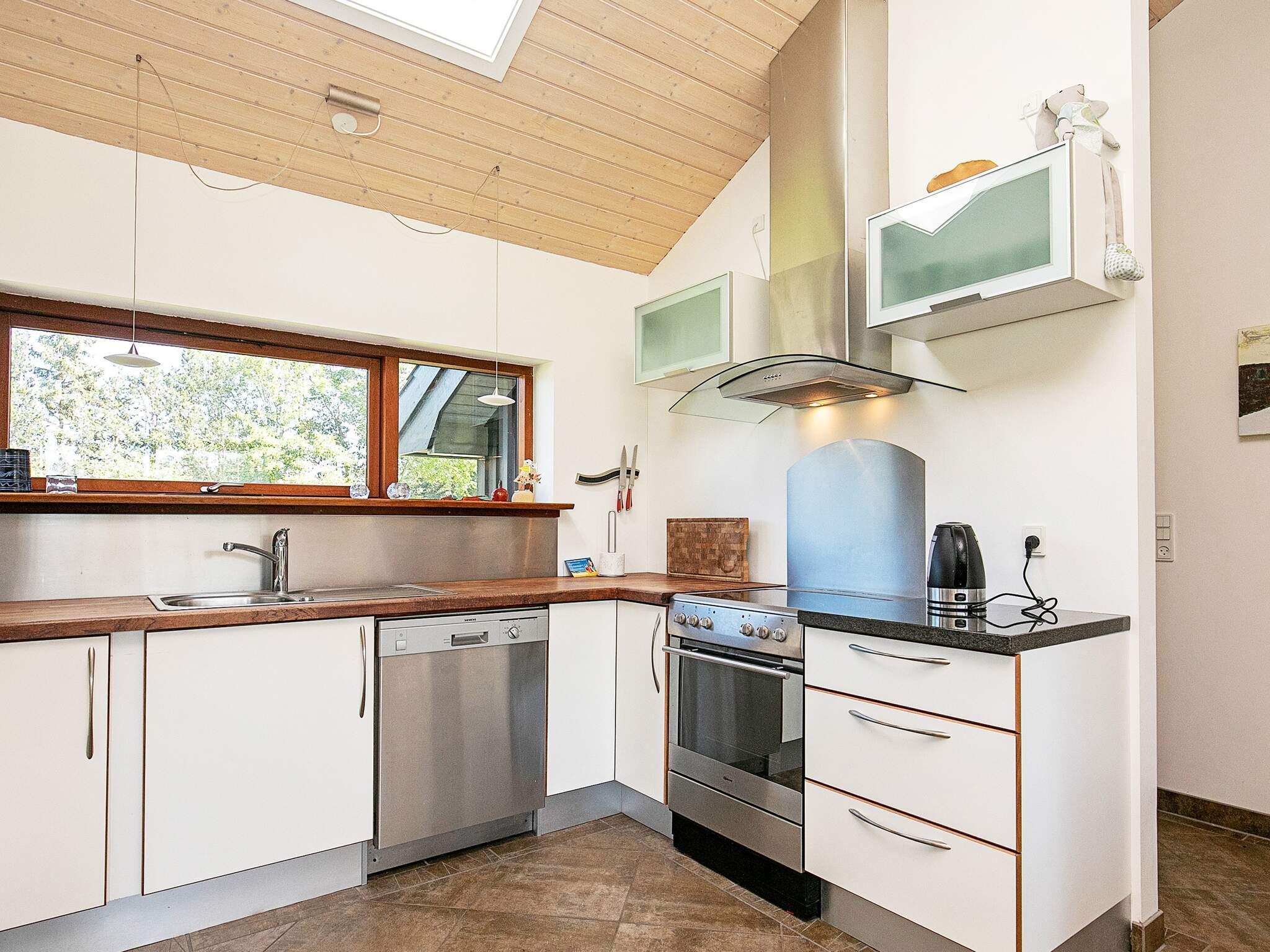 Huset er opført med fokus på kvalitet og komfort og byder på både spabad og sauna, så I kan forkæle jer selv efter en dag i naturen eller ved vandet. Det elegante køkken er udstyret med lækre materialer og ligger i åben forbindelse med den lyse og rummelige stue – her kan madlavningen nydes som en fælles oplevelse i samvær med familien.