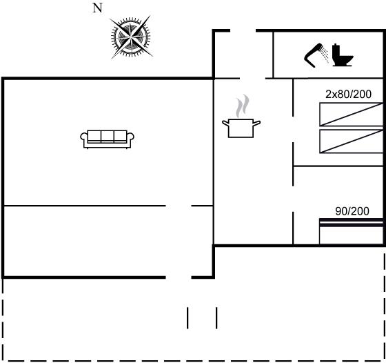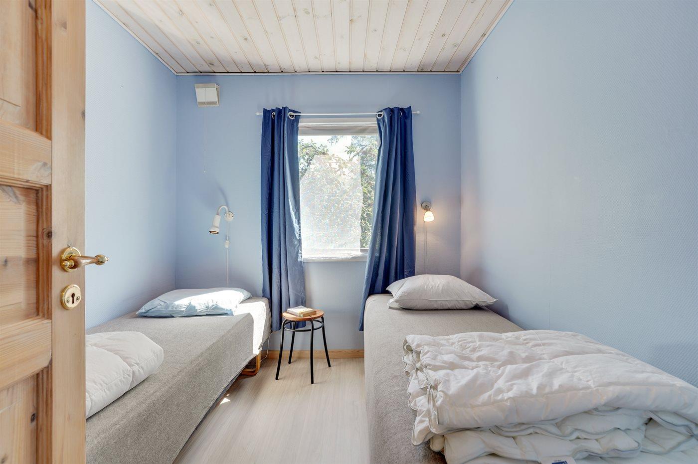 Der er i alt 1 soveværelse. Sovepladserne fordeler sig på: 2 sovepladser i enkeltsenge. 2 sovepladser i sovesofa (dobbelt). 2 af disse sovepladser befinder sig i stuen.