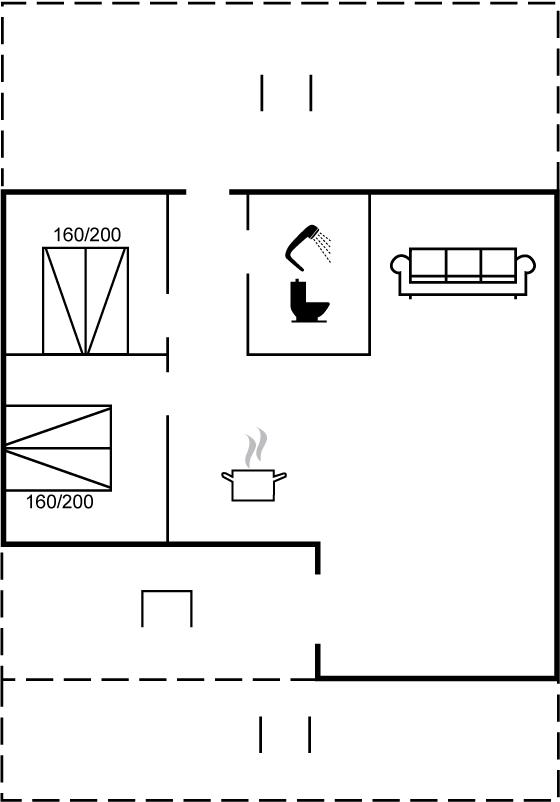 Der er i alt 2 soveværelser. Sovepladserne fordeler sig på: 4 sovepladser i dobbeltsenge. 2 sovepladser på madrasser. 2 af disse sovepladser befinder sig på husets hems.