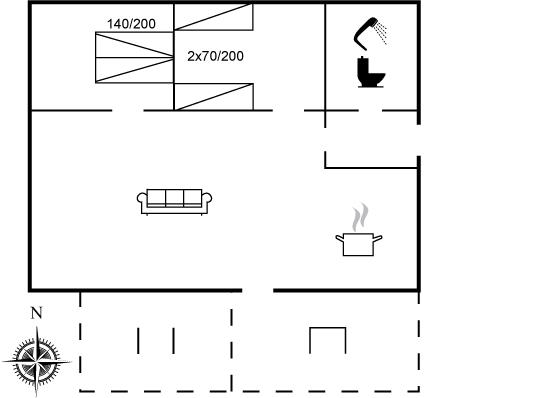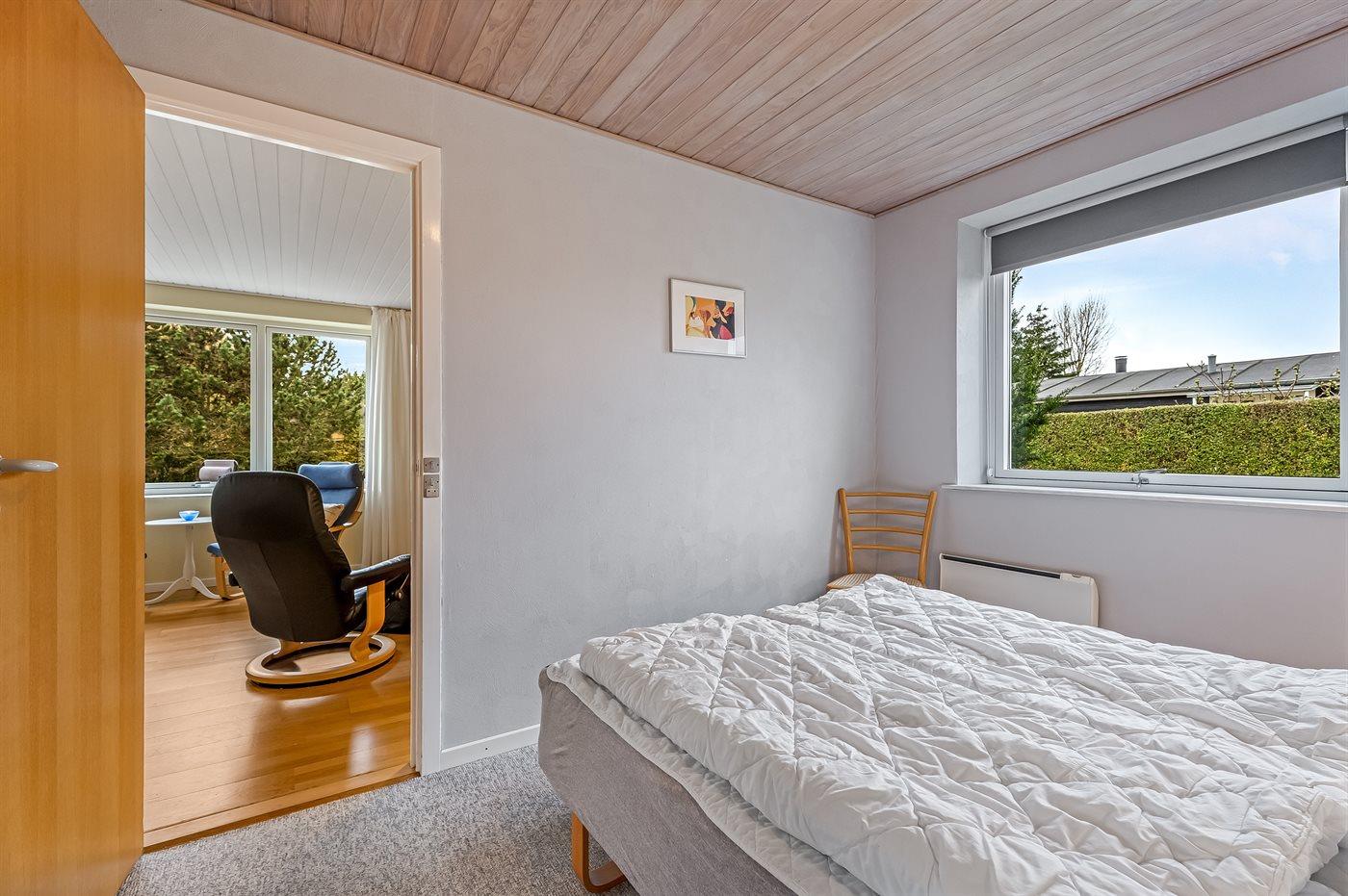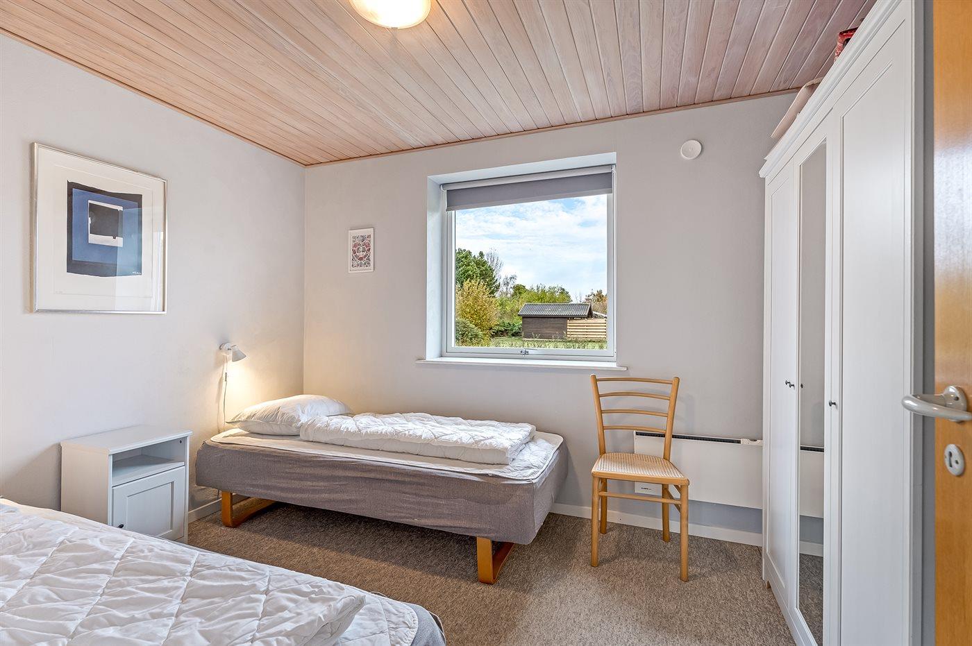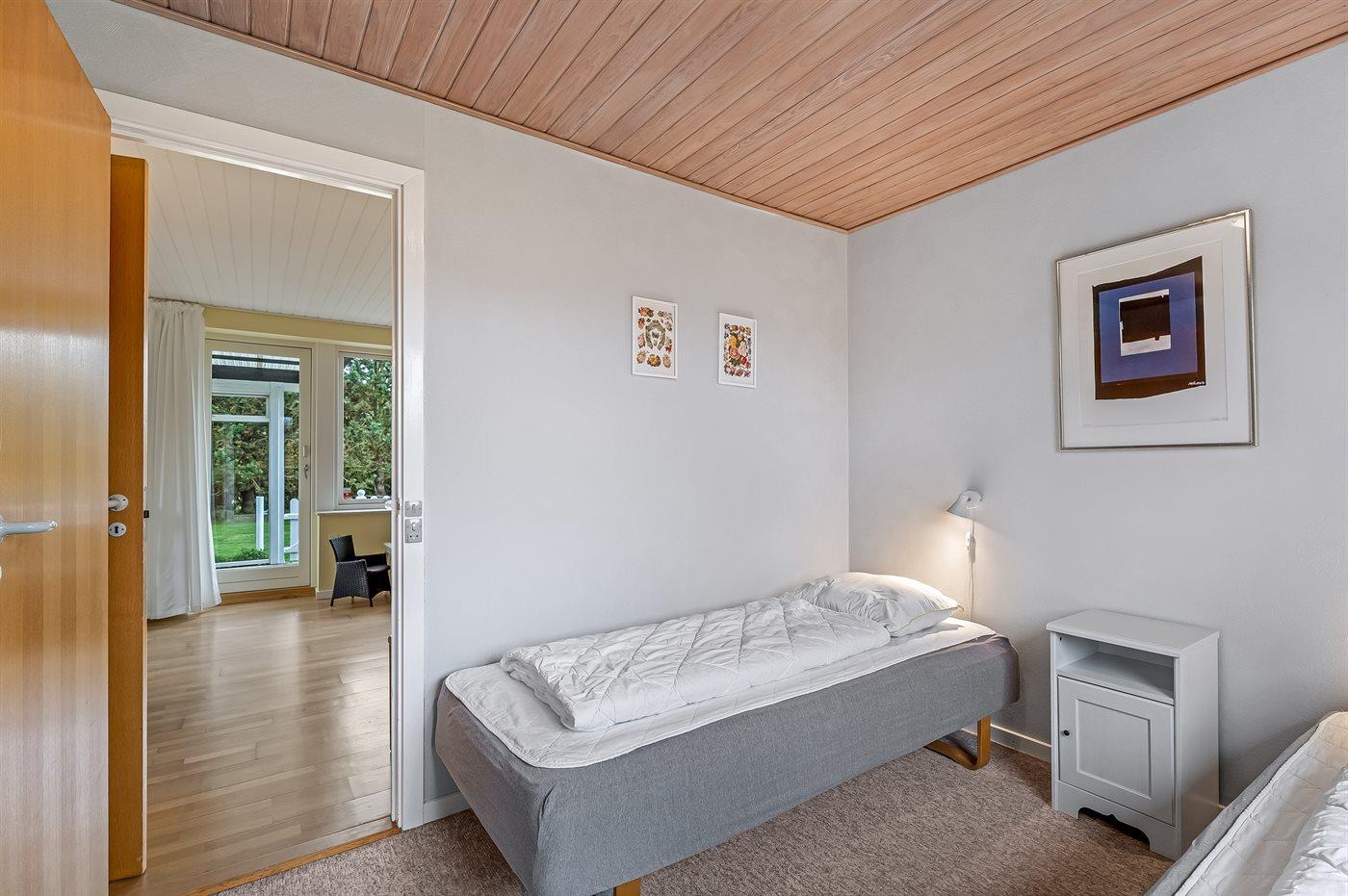 Der er i alt 2 soveværelser. Sovepladserne fordeler sig på: 2 sovepladser i dobbeltseng. 2 sovepladser i enkeltsenge. Derudover er der 1 stk. barneseng.