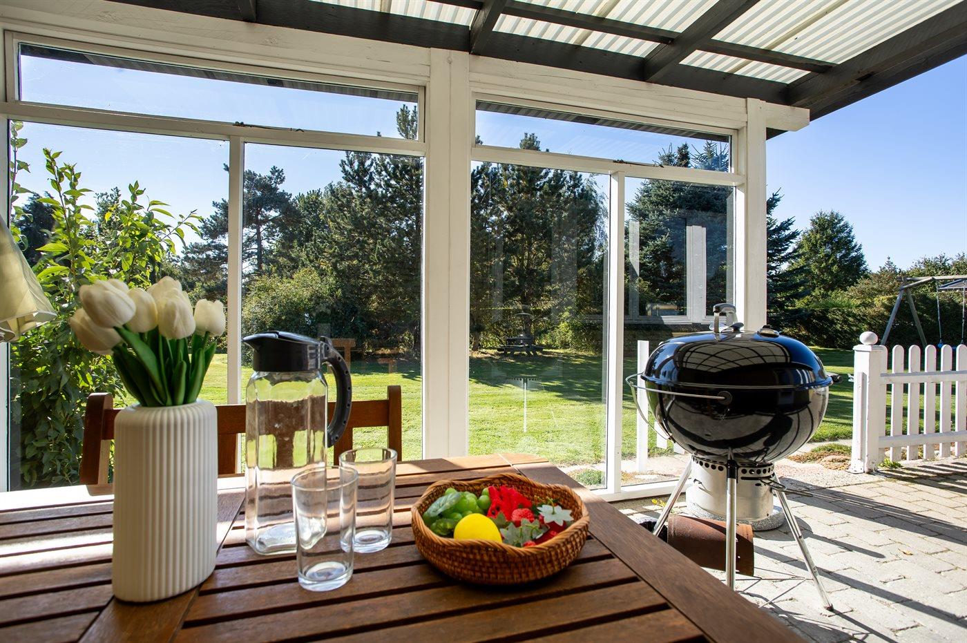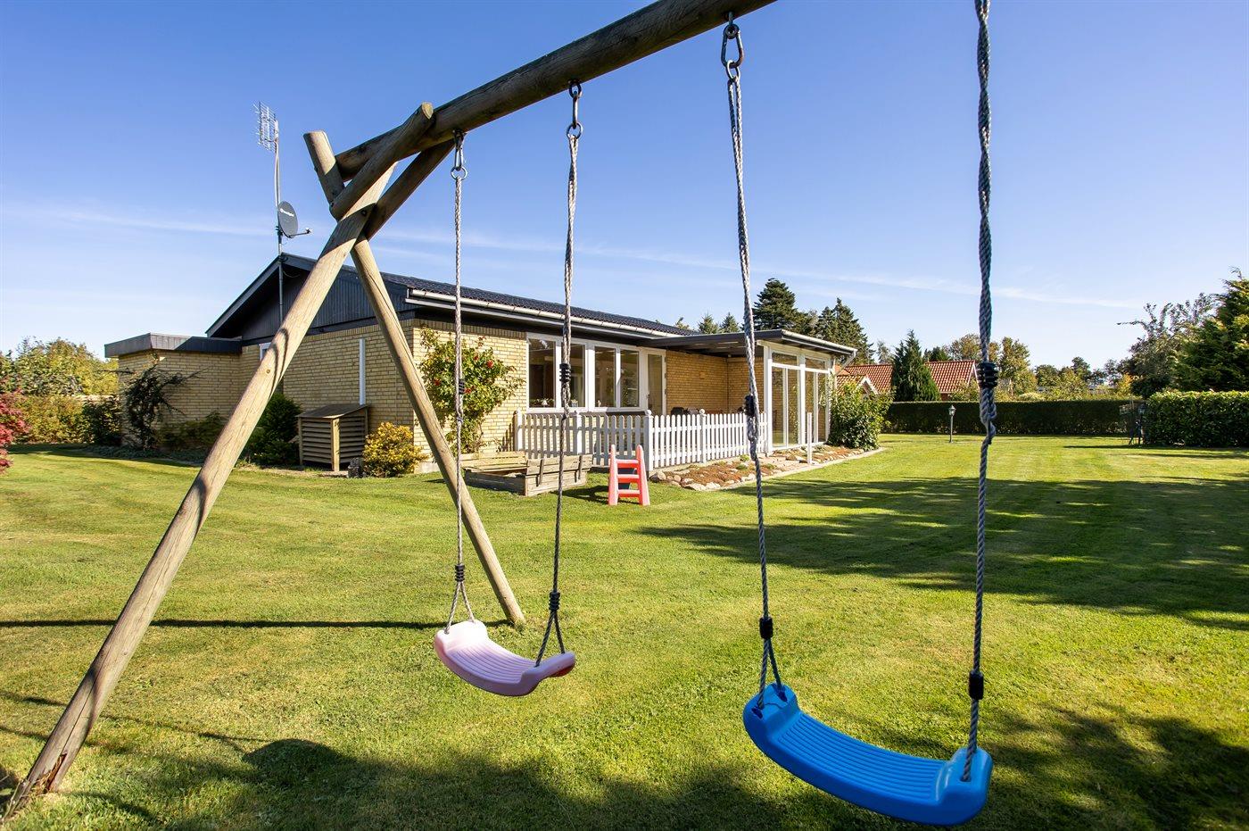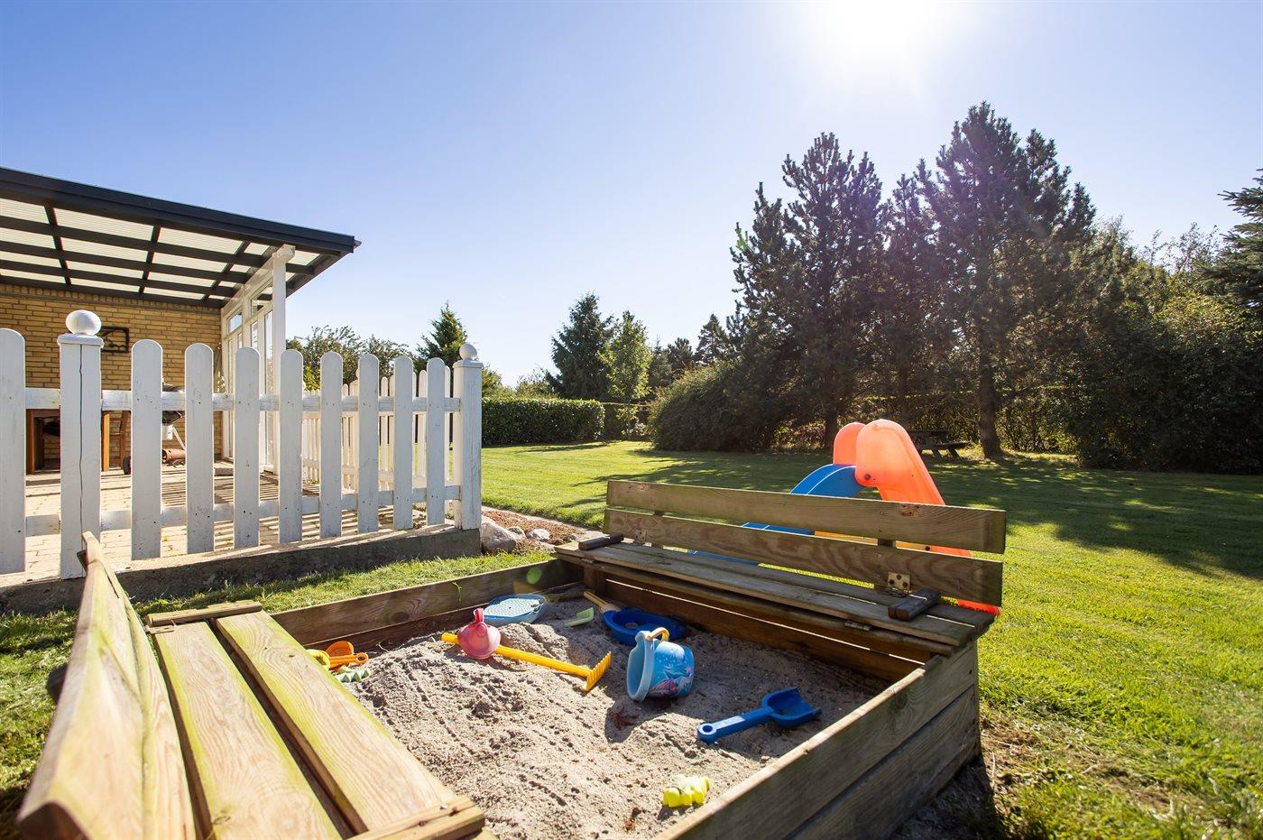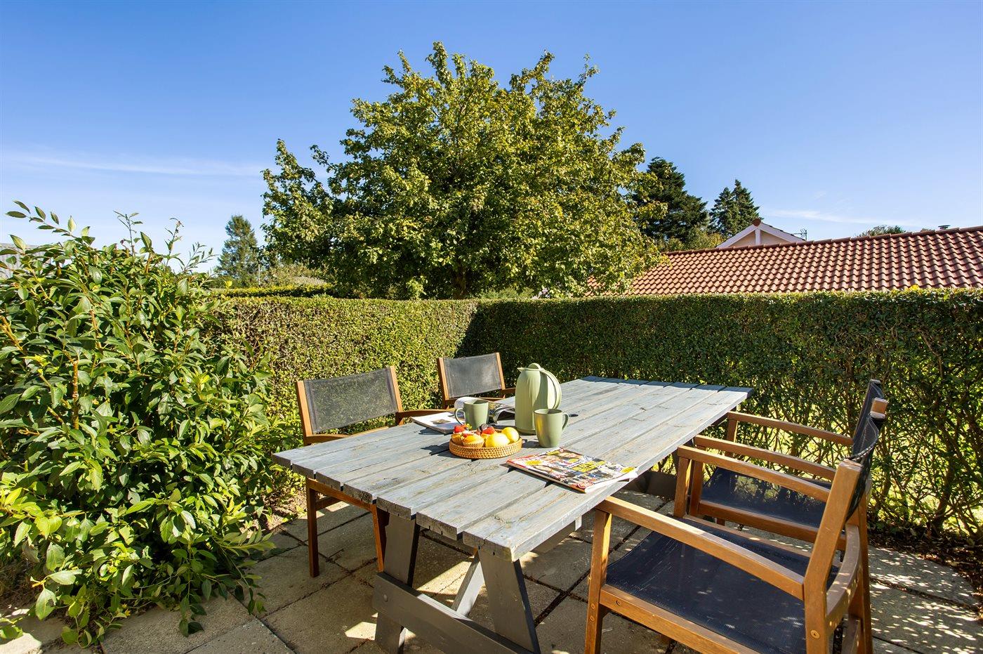 I haven er der lagt op til hygge! På den store terrasse kan I ugenert nyde solen og alle dagens måltider. Lad børnene lege i haven, mens I griller maden færdig på terrassen. Gå til den dejlige strand, som er en fryd på alle tider af året.