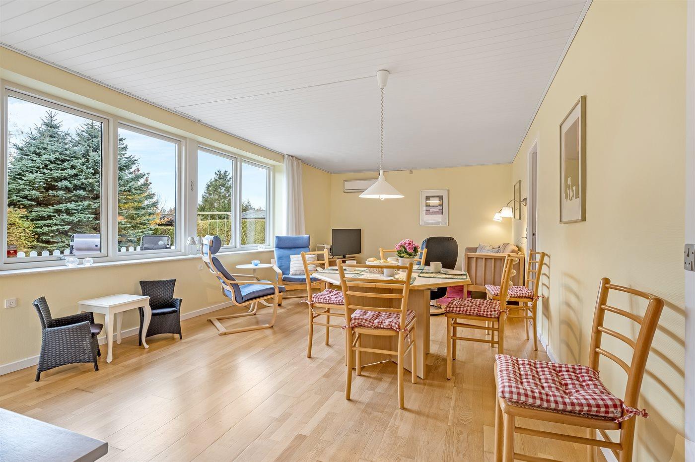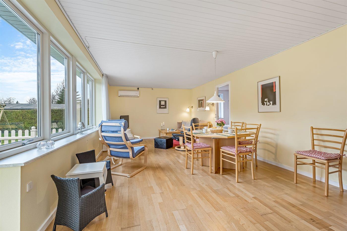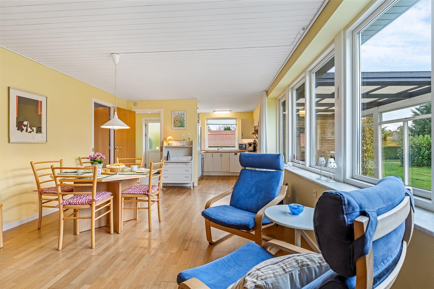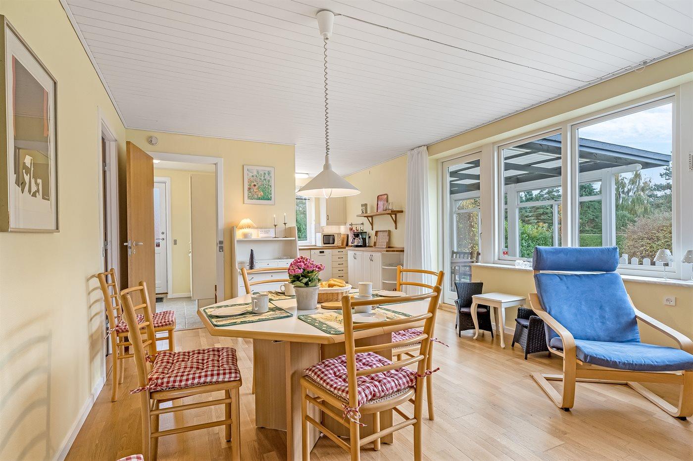 I haven er der lagt op til hygge! På den store terrasse kan I ugenert nyde solen og alle dagens måltider. Lad børnene lege i haven, mens I griller maden færdig på terrassen. Gå til den dejlige strand, som er en fryd på alle tider af året.