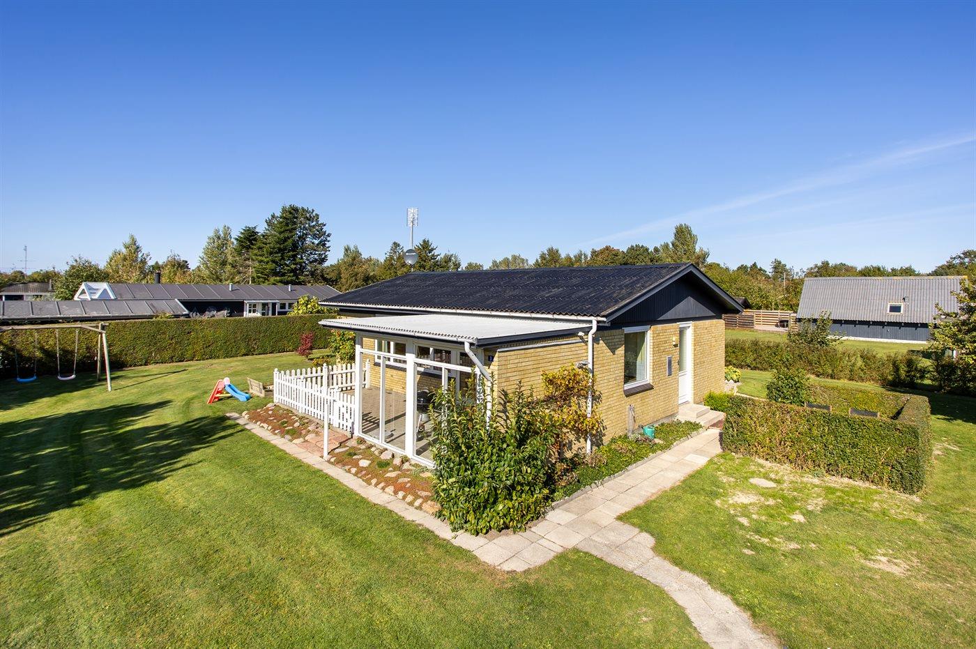 Ferieboligen er beliggende på en 884 m² stor havegrund. Der er 400 m til havet. Nærmeste forretning er beliggende i en afstand af 2000 m. Til ferieboligen hører åbent terrasseareal. Desuden er der overdækket terrasse. Gynge. Sandkasse. Der ligger en legeplads i en afstand af 2000 m. Grill til rådighed. Parkering ved ferieboligen.