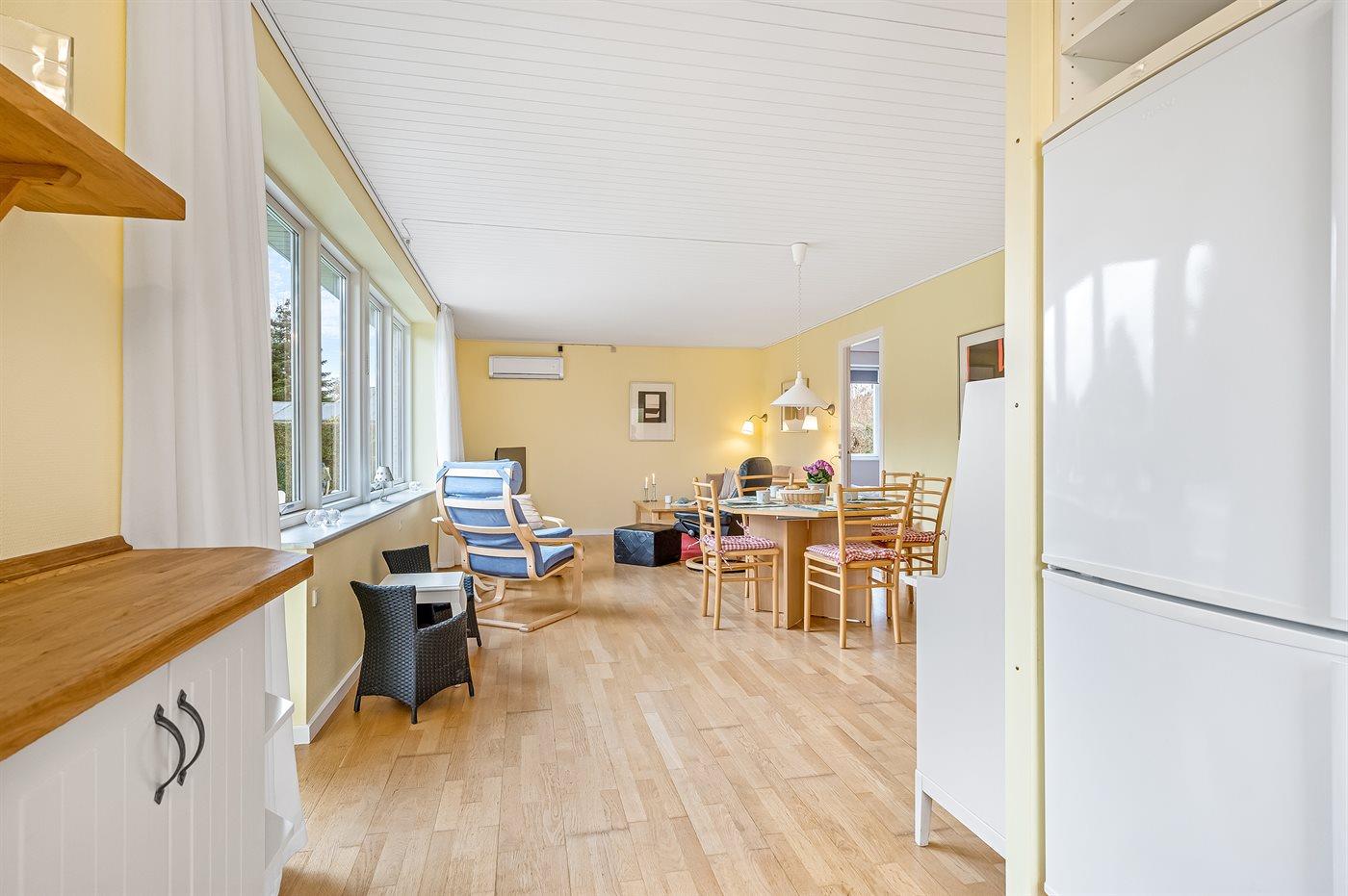 Køkkenet er udstyret med 1 køleskab. Der er 4 keramiske kogeplader, varmluftovn, mikrobølgeovn samt opvaskemaskine.
