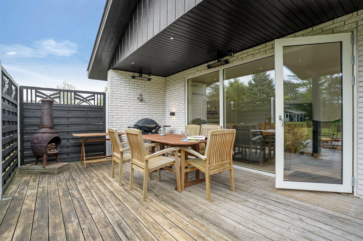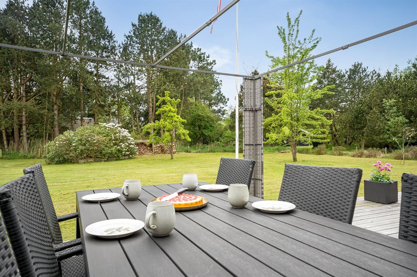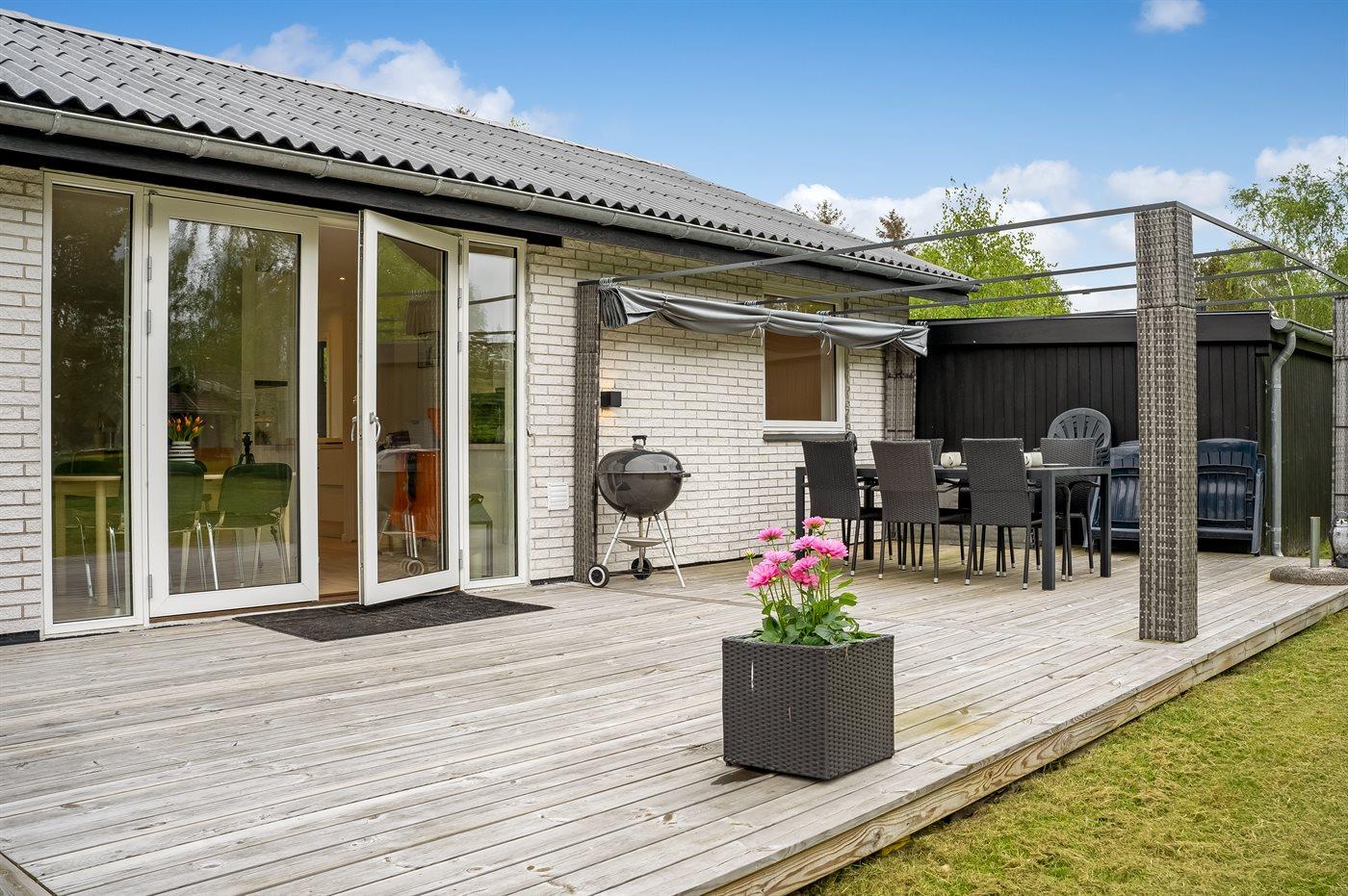 I haven er der lagt op til hygge! På den store terrasse kan I ugenert nyde solen og alle dagens måltider. Lad børnene lege i haven, mens I griller maden færdig på terrassen. Gå til den dejlige strand, som er en fryd på alle tider af året.