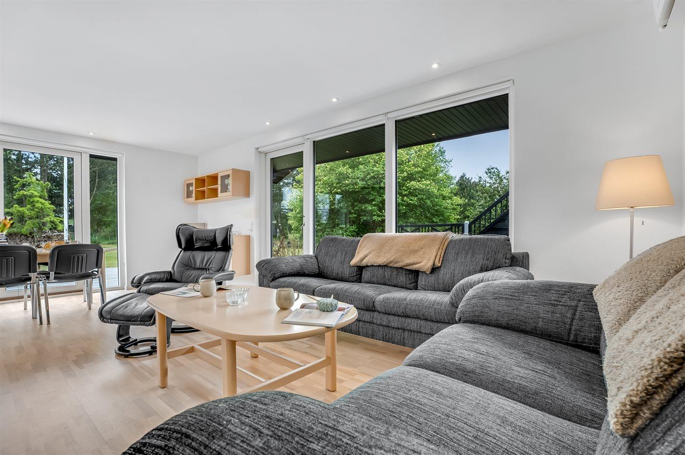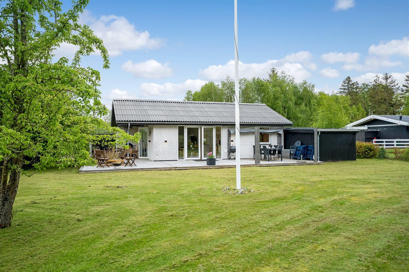Velkommen til dette indbydende feriehus med en fin vinkelterrasse i naturskønne omgivelser med et rigt dyreliv. Her vil I uden tvivl føle jer hjemme. Nyd tiltrængt kvalitetstid, når I laver en madlavningsdyst, bager sammen med børnene, slapper af i sofaen til en underholdende film om aftenen eller spiller ved spisebordet.