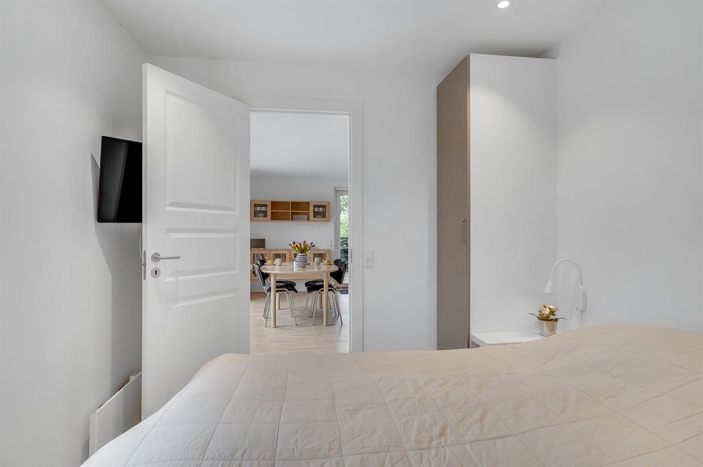 Der er i alt 2 soveværelser. Sovepladserne fordeler sig på: 2 sovepladser i dobbeltseng. 2 sovepladser i enkeltsenge.