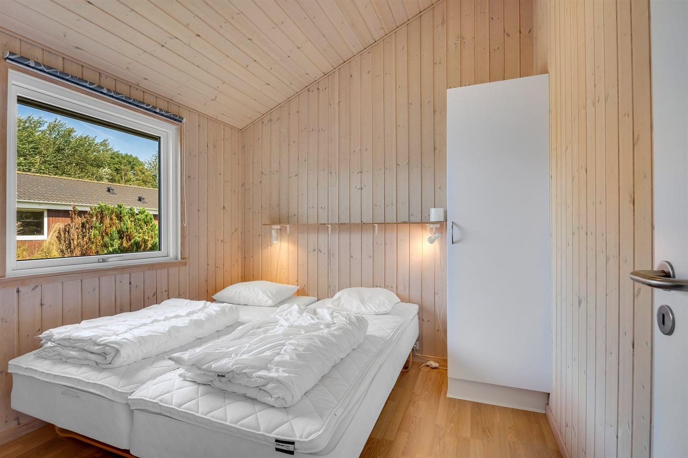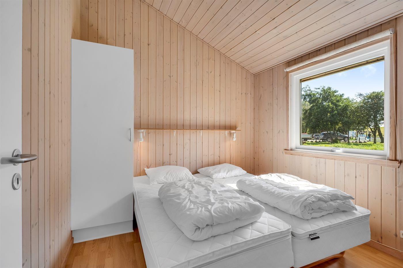 Der er i alt 4 soveværelser. Sovepladserne fordeler sig på: 4 sovepladser i dobbeltsenge. 4 sovepladser i enkeltsenge. Derudover er der 1 stk. barneseng.