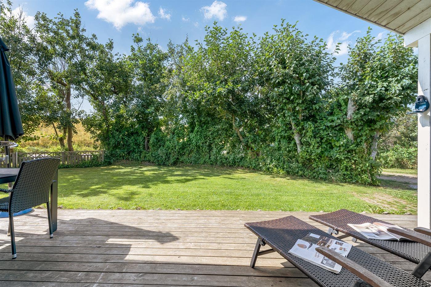 Ferieboligen er beliggende på en 650 m² stor havegrund. Der er 45 m til havet. Til ferieboligen hører åbent terrasseareal. Desuden er der overdækket terrasse. Parkering ved ferieboligen.