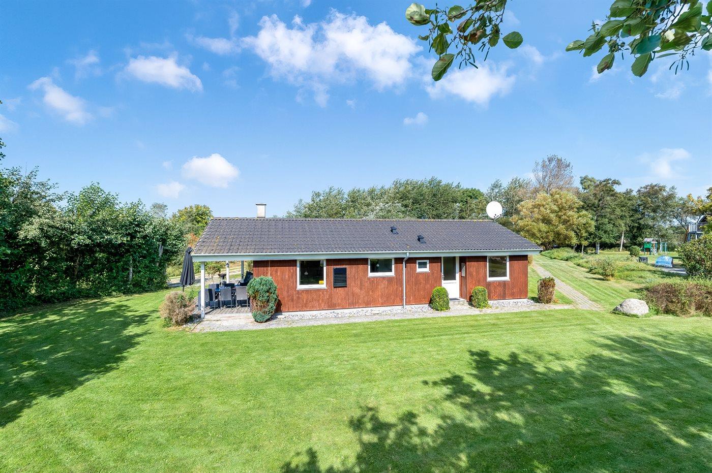 Hyggeligt sommerhus tæt på stranden med spa, sauna og legeplads for hele familien.