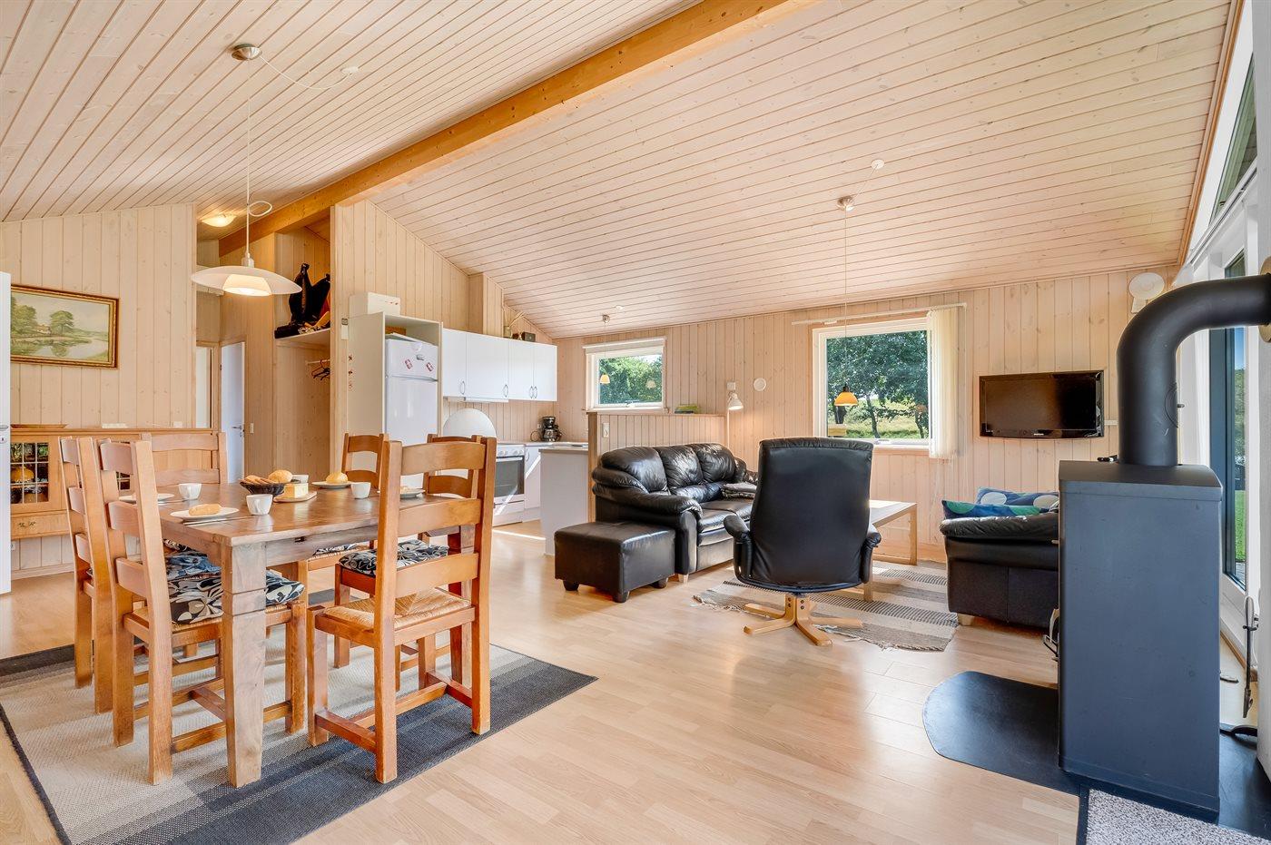 Sommerhuset egner sig til 8 personer. Ferieboligen er på 94 m² og er bygget i 2010. Det er ikke tilladt at medbringe husdyr. Ferieboligen er udstyret med 1 energibesparende luft til luft varmepumpe. Ferieboligen har vaskemaskine. Frysekapacitet på 30 liter. Der er desuden brændeovn. Til de små er der 1 stk. barnestol.