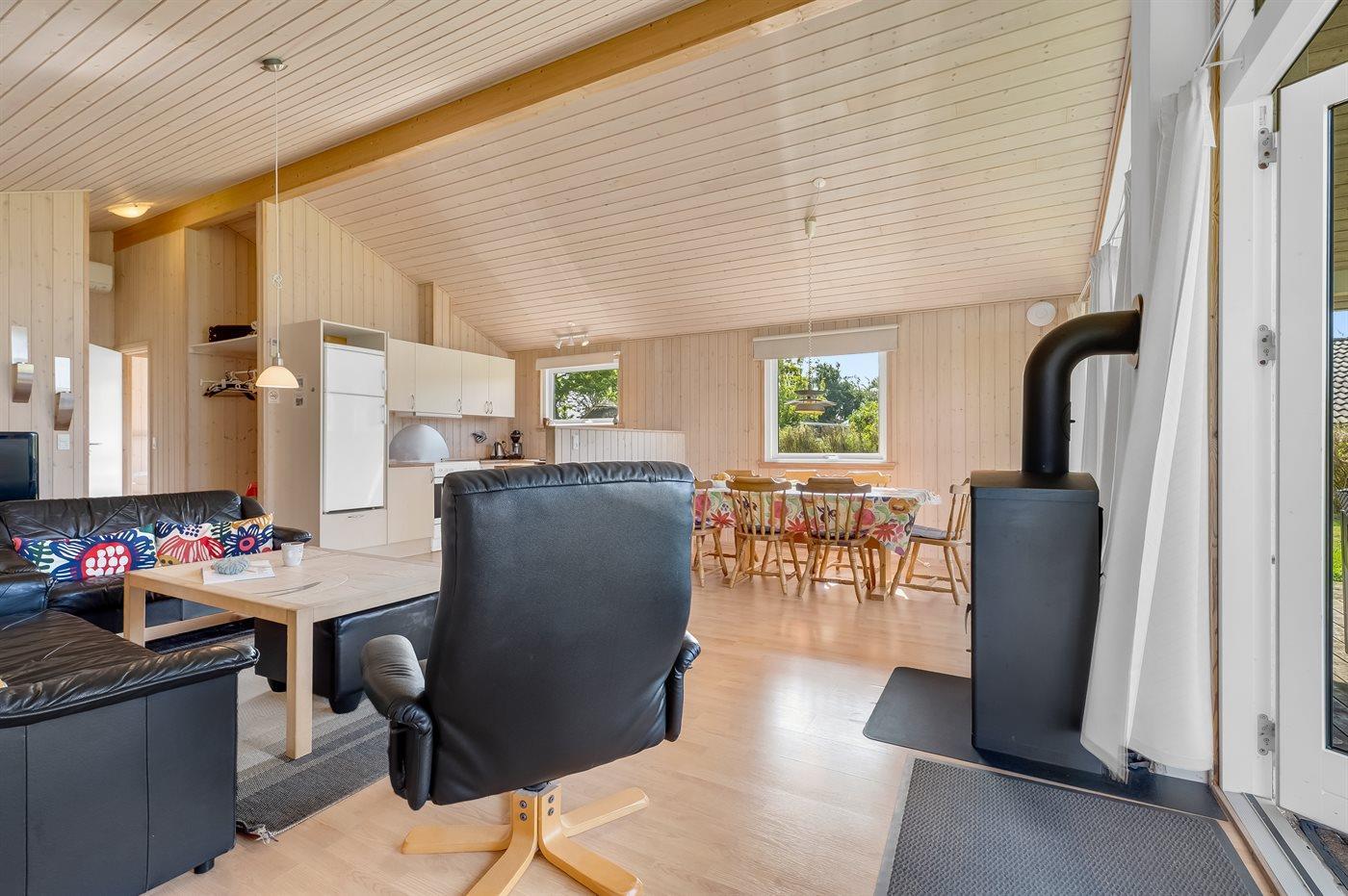 Sommerhuset egner sig til 8 personer. Ferieboligen er på 94 m² og er bygget i 2010. Det er ikke tilladt at medbringe husdyr. Ferieboligen er udstyret med 1 energibesparende luft til luft varmepumpe. Ferieboligen har vaskemaskine. Frysekapacitet på 30 liter. Der er desuden brændeovn. Til de små er der 1 stk. barnestol.