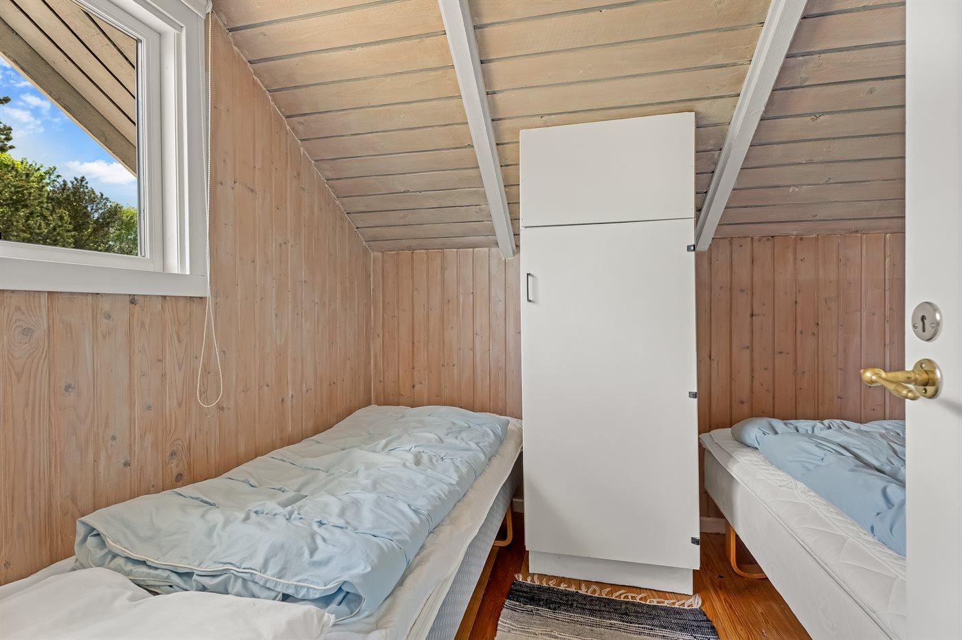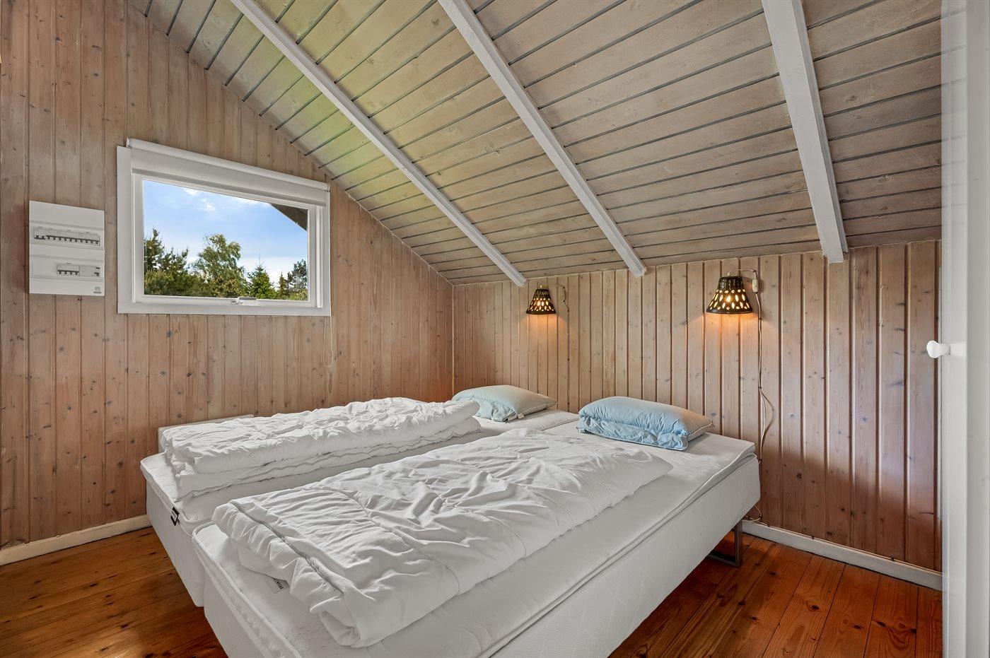 Der er i alt 4 soveværelser. Sovepladserne fordeler sig på: 4 sovepladser i dobbeltsenge. 3 sovepladser i enkeltsenge. Derudover er der 1 stk. barneseng.