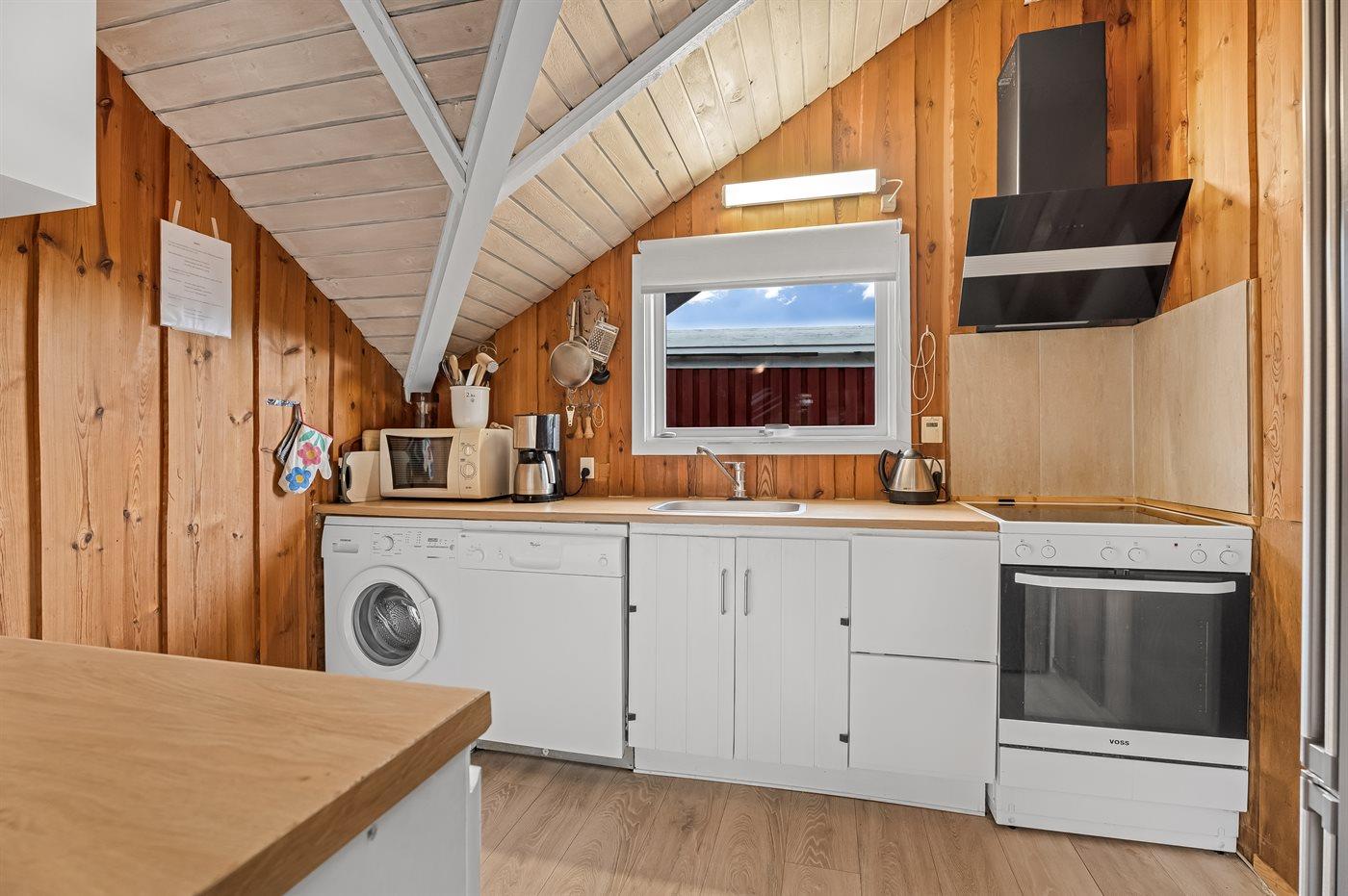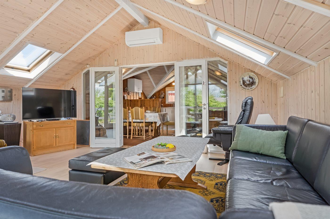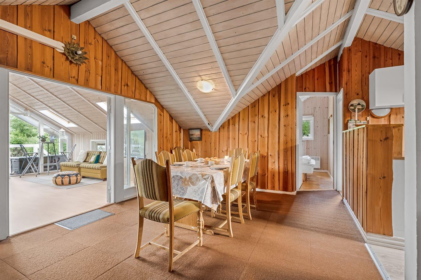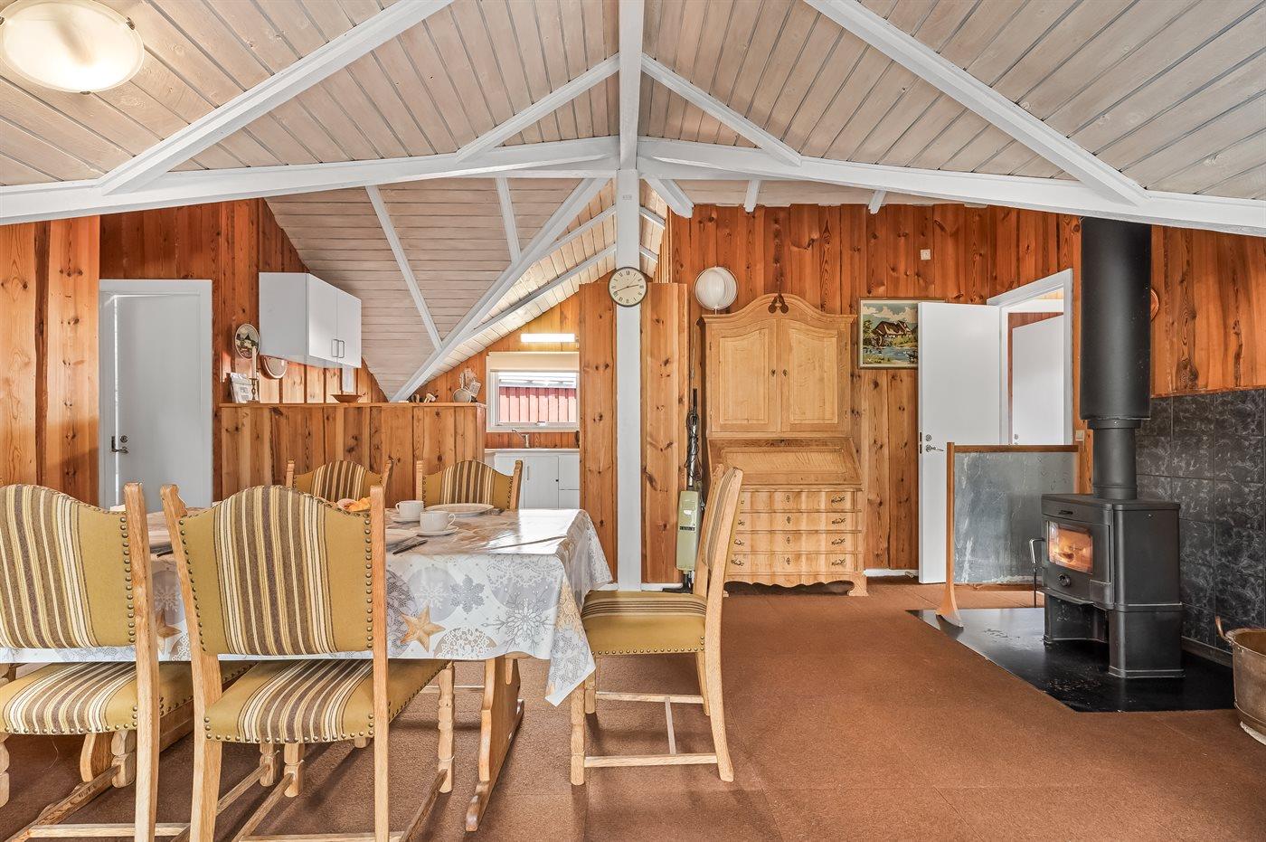 Et hyggeligt og pænt indrettet sommerhus med god plads til hele familien. Husets rummelige køkken/alrum ligger i åben forbindelse med opholdsstuen, så dagens kok kan sagtens være med i samtaler, der foregår i stuen. Hyg jer i sofaerne eller rundt om spisebordet, hvor der er plads til, at alle kan sidde og spise sammen.