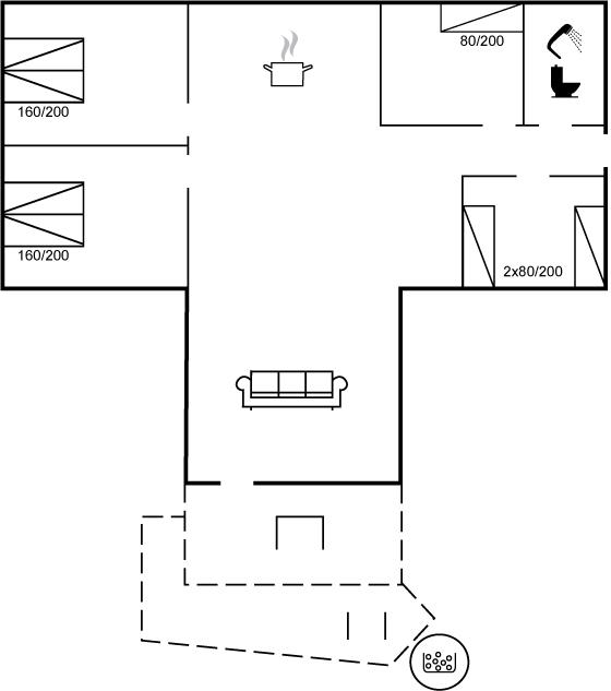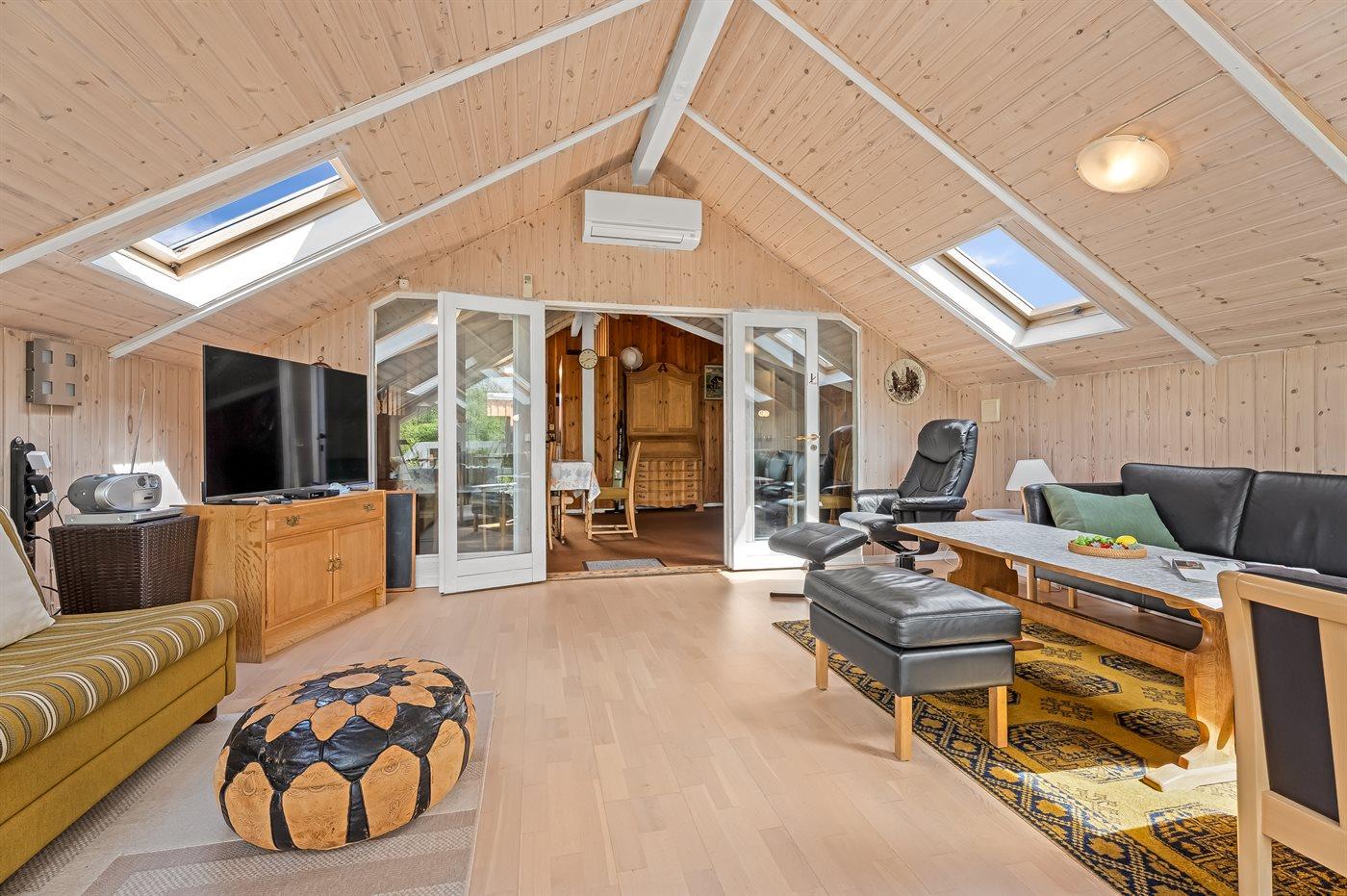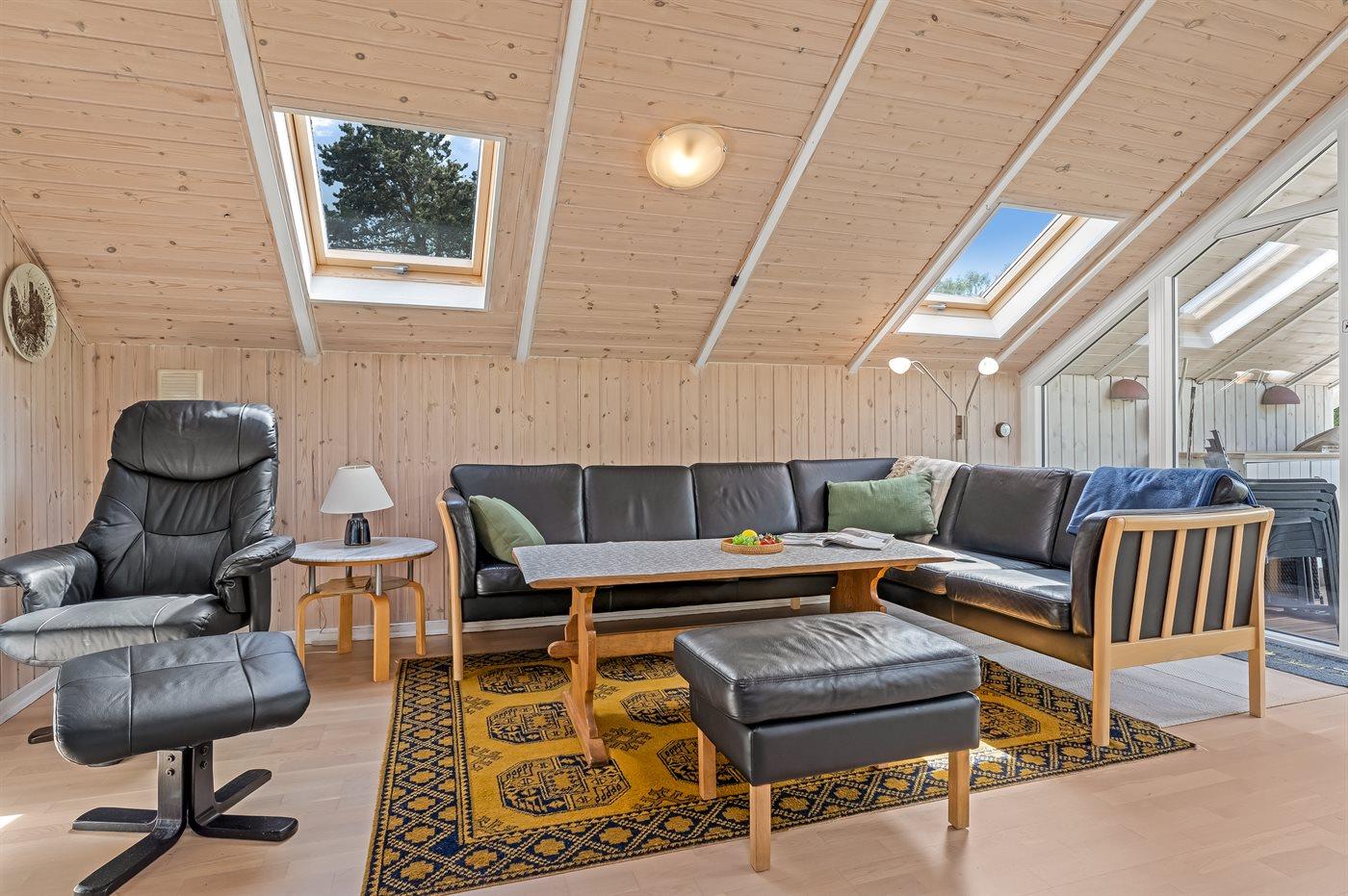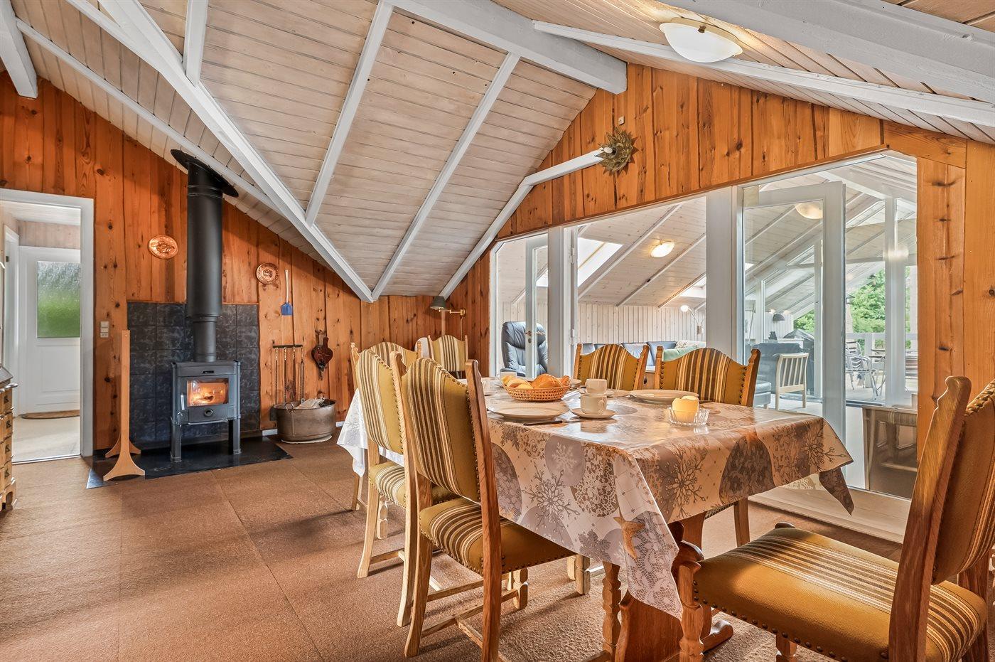 Et hyggeligt og pænt indrettet sommerhus med god plads til hele familien. Husets rummelige køkken/alrum ligger i åben forbindelse med opholdsstuen, så dagens kok kan sagtens være med i samtaler, der foregår i stuen. Hyg jer i sofaerne eller rundt om spisebordet, hvor der er plads til, at alle kan sidde og spise sammen.