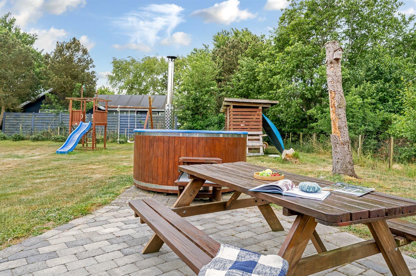 Hyggeligt sommerhus med vildmarksbad og stor terrasse