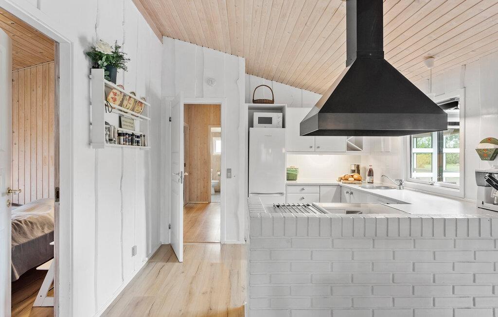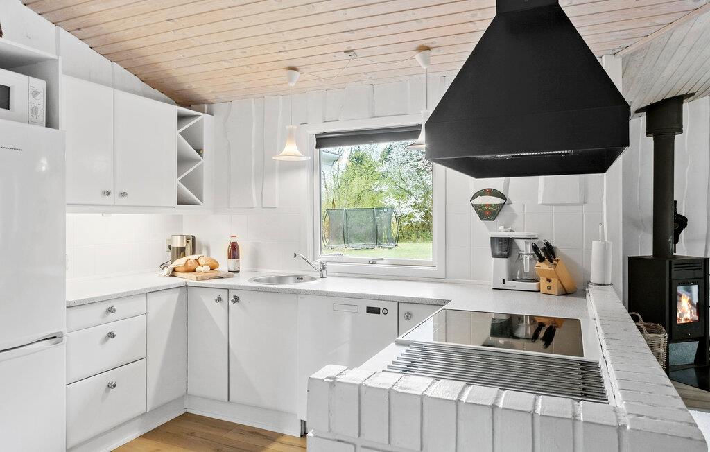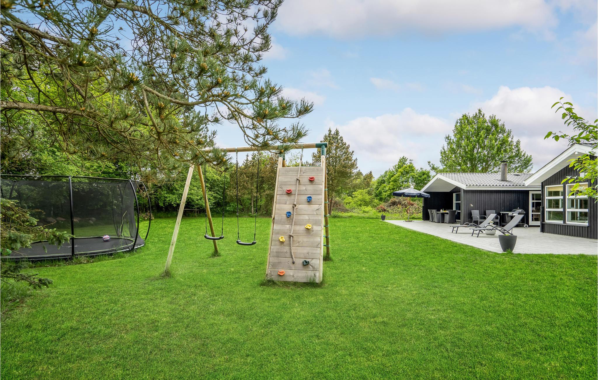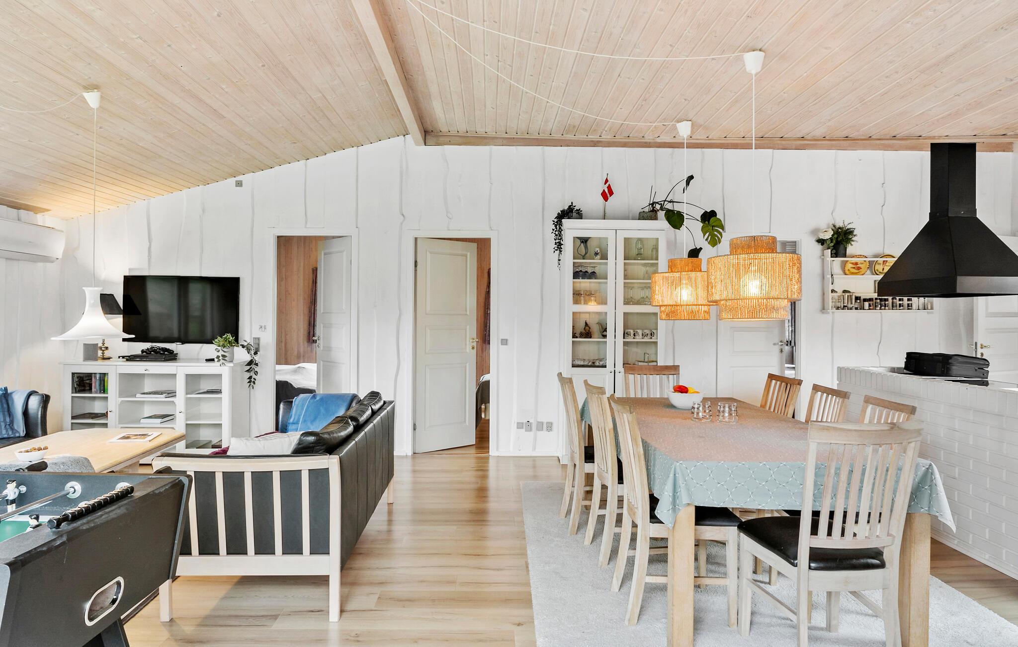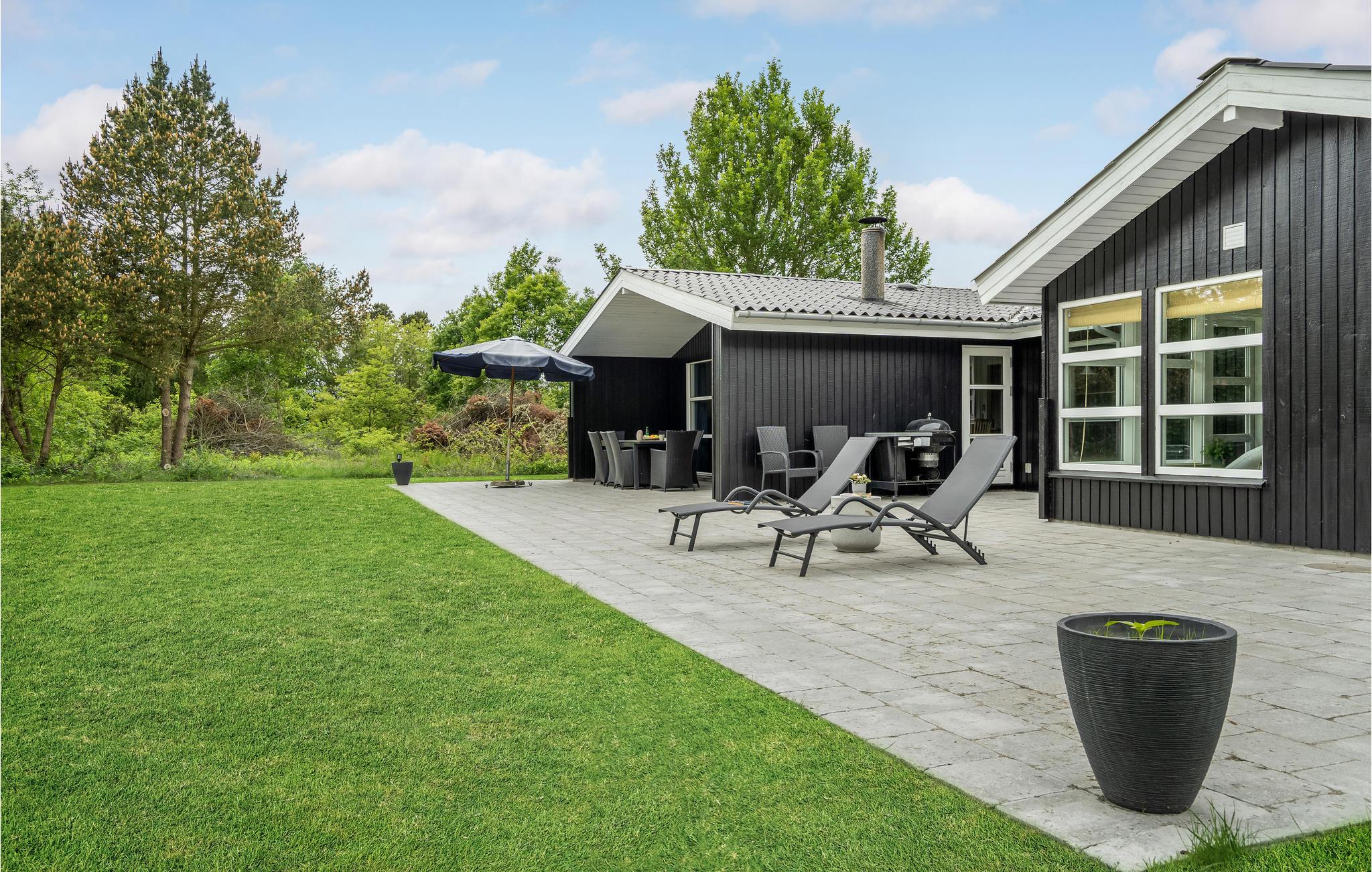 Kun fem minutters gang fra vandet, ligger dette lækre velindrettede og hyggelige luksushus af træ. Den meget store stue er indrettet med mange gode møbler, bordfodbold og brætspil, og køkkenet er veludstyret med alle tekniske hjælpemidler. I soveværelserne, der alle har dobbeltsenge, venter er god nattesøvn. I det ene af de to badeværelser står det seks pers. spabad, hvor I gennem de store glaspartier kan nyde årstiden udenfor. Her er der også mulighed for at gå i sauna.