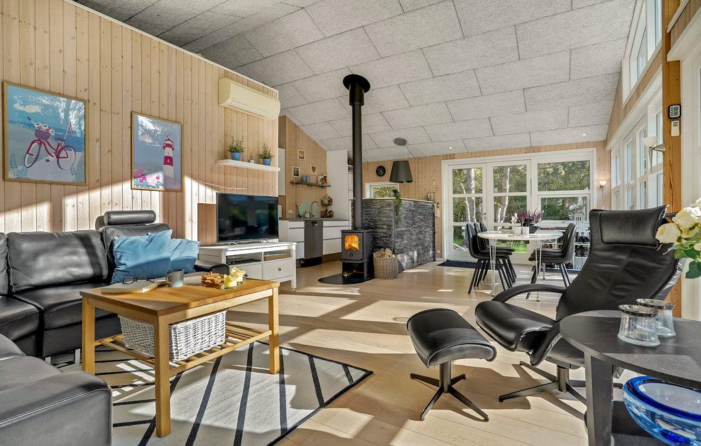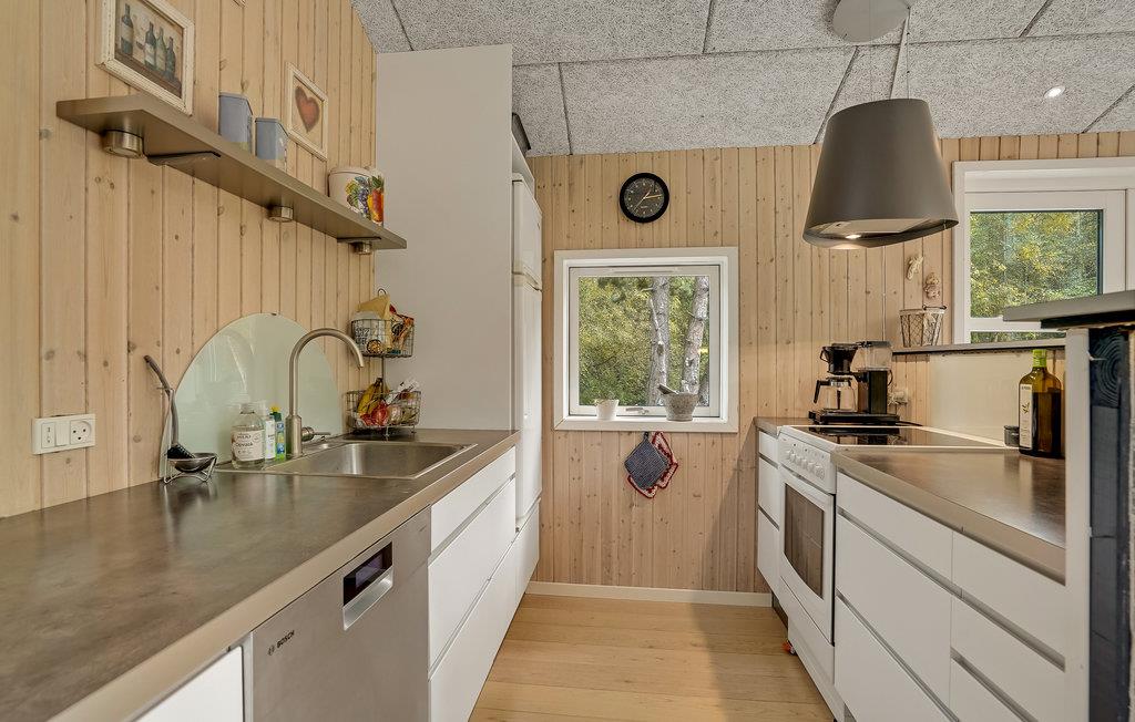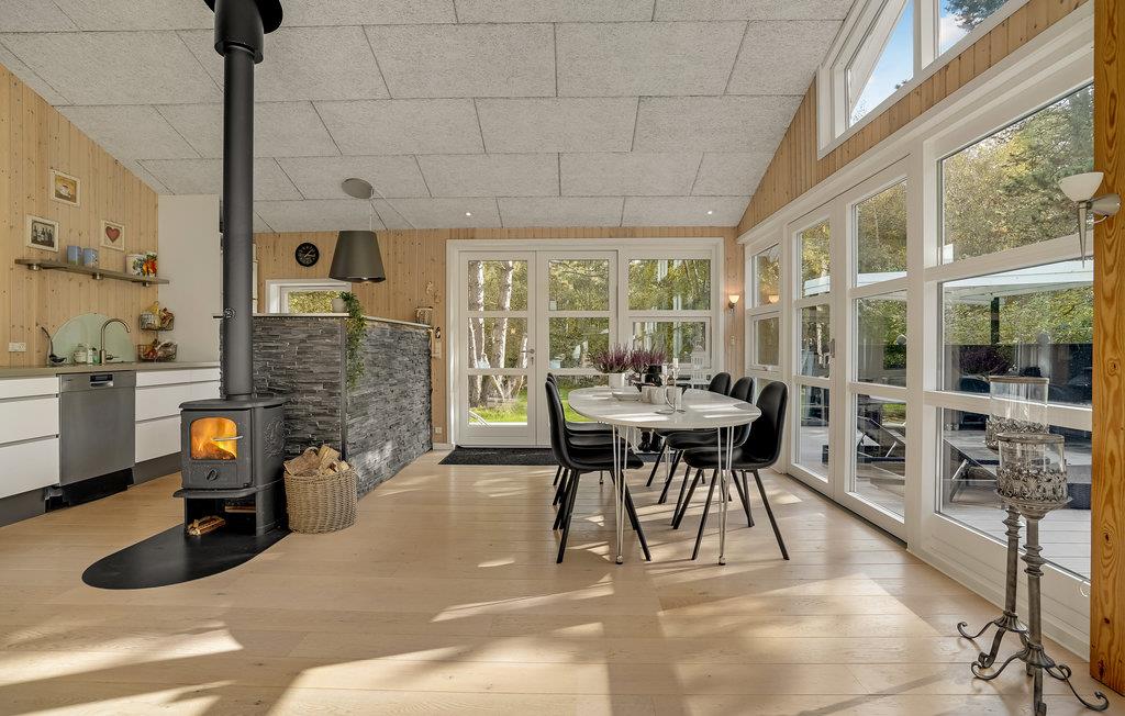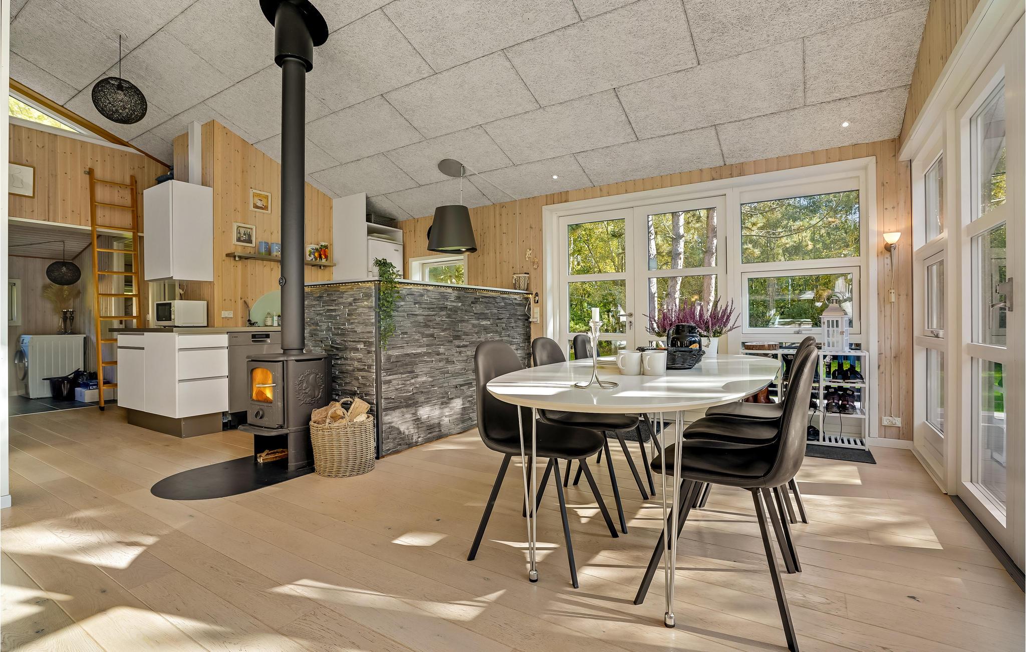 Velkommen til dette skønne sommerhus, som giver jer en hyggelig ramme om familieferien. Huset er dejligt rummeligt, og der kommer masser af lys ind gennem de store vinduespartier i stuen. Glæd jer til brætspilsaftner i stuen, mens ilden knitrer i brændeovnen og gode forhold til madlavningen i åbne køkken.