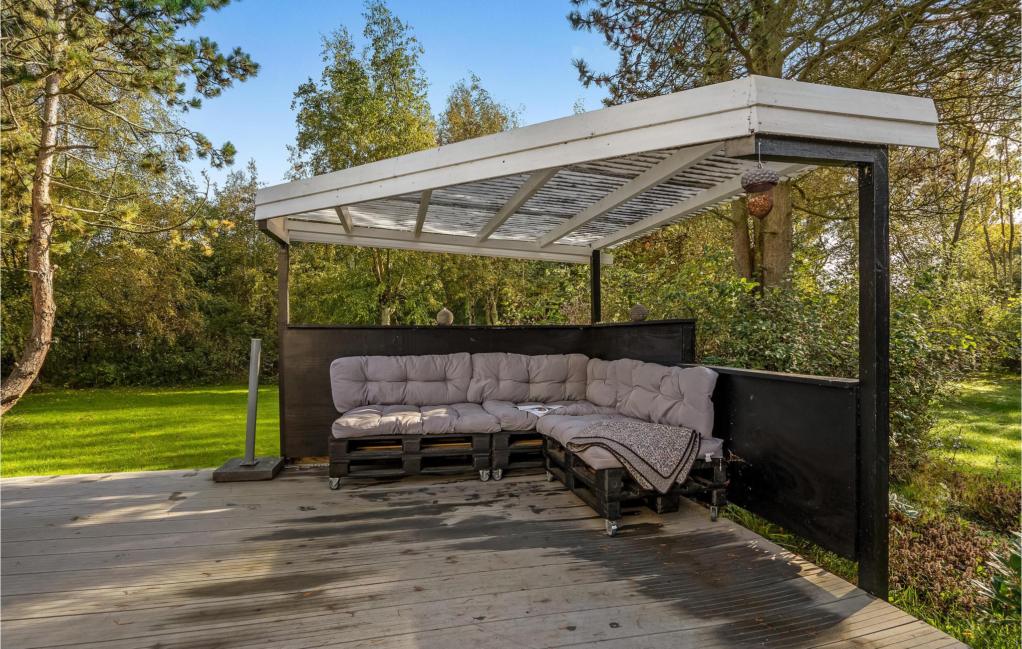 Huset ligger på en dejlig naturgrund med store træer og plads til, at jeres børn og hund kan bevæge sig. I kan både finde sol og skygge i terrassens mange hyggekroge, hvor det er skønt at læne sig tilbage med en bog efter en lang dag på farten. Der er både grill og havemøbler til de lune sommeraftener, hvor I helst vil spise ude i det fri.