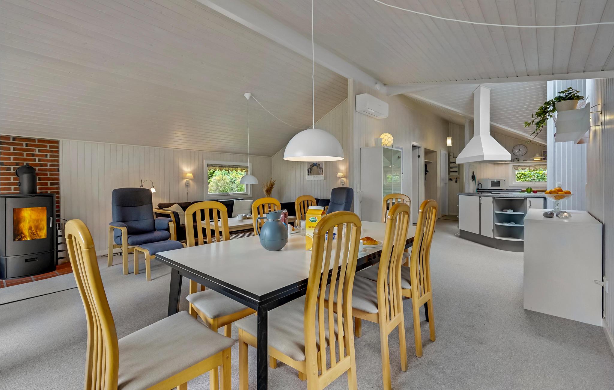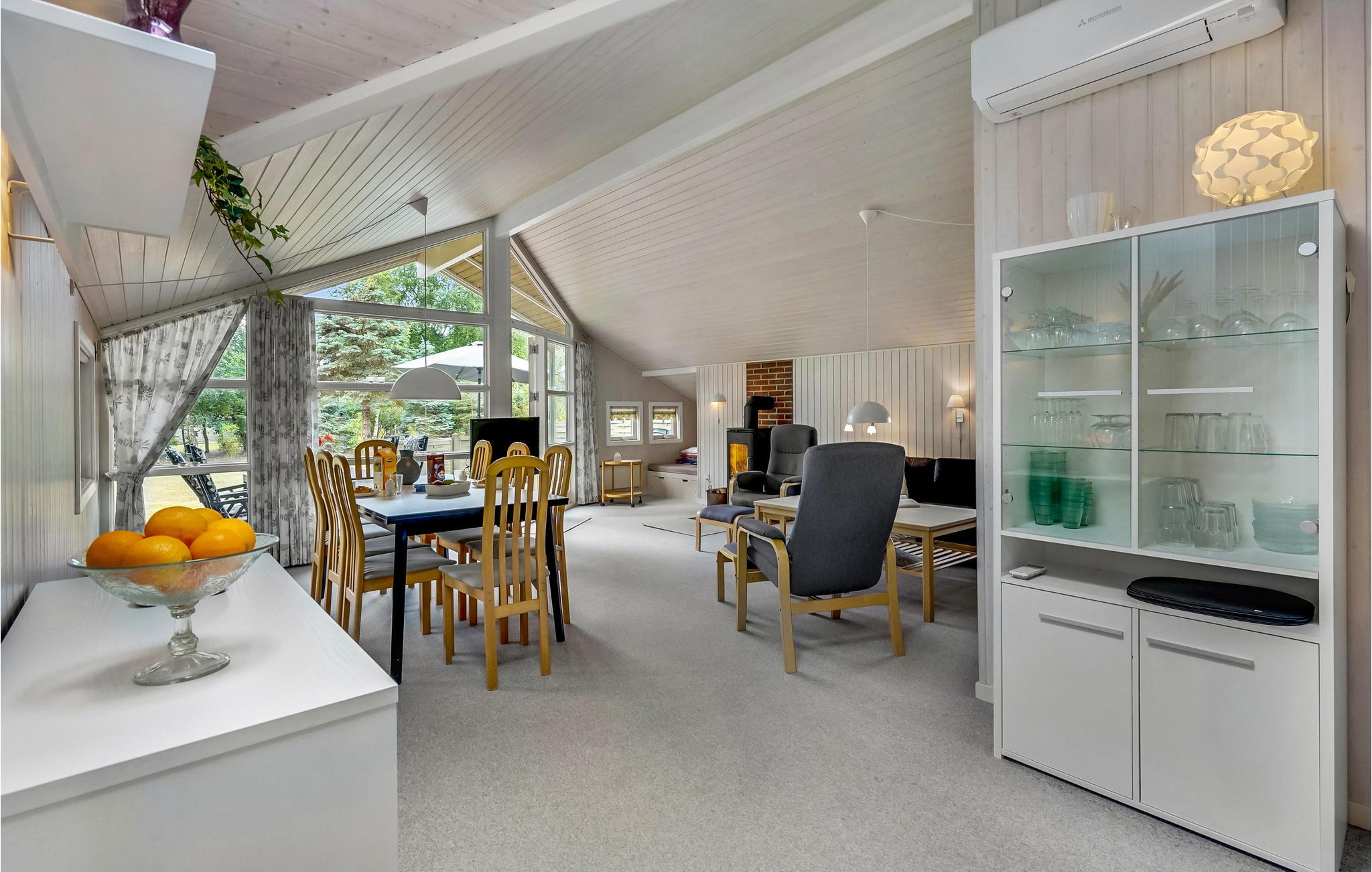Eksklusivt og meget komfortabelt indrettet feriehus, der er udstyret med diverse luksusfaciliteter. Det ligger på en ugenert naturgrund og til huset hører en dejlig, stor og delvist overdækket terrasse, hvor hele familien kan nyde de skønne sommerdage. Indvendigt er huset udstyret med bl.a. sauna og spabad, som især trækker på køligere dage. Husets lyse og spændende indretning giver i det hele taget nogle dejlige rammer for en perfekt ferie.
