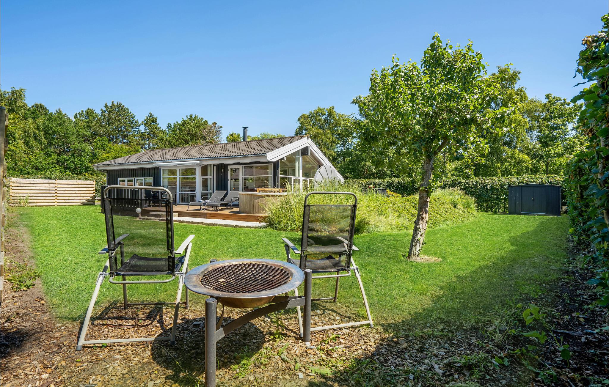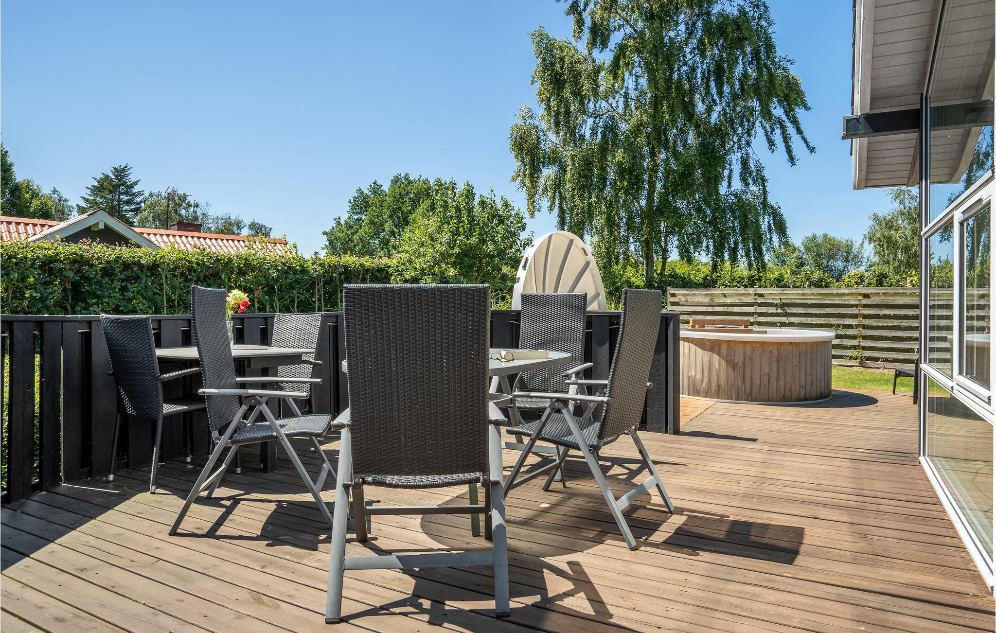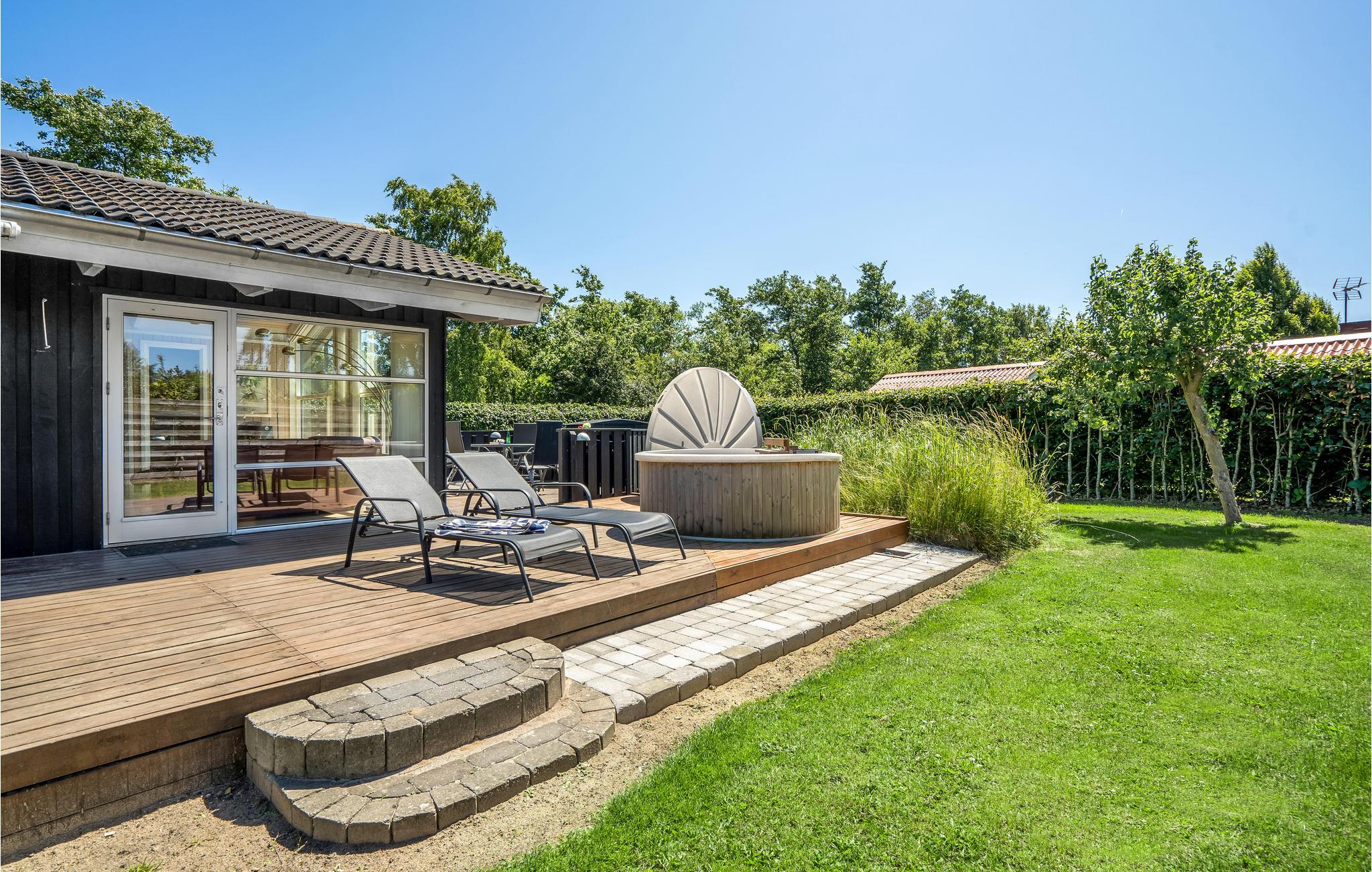 Lækkert feriehus nær Humminge strand med sauna, spabad og stor terrasse på delvist lukket grund.